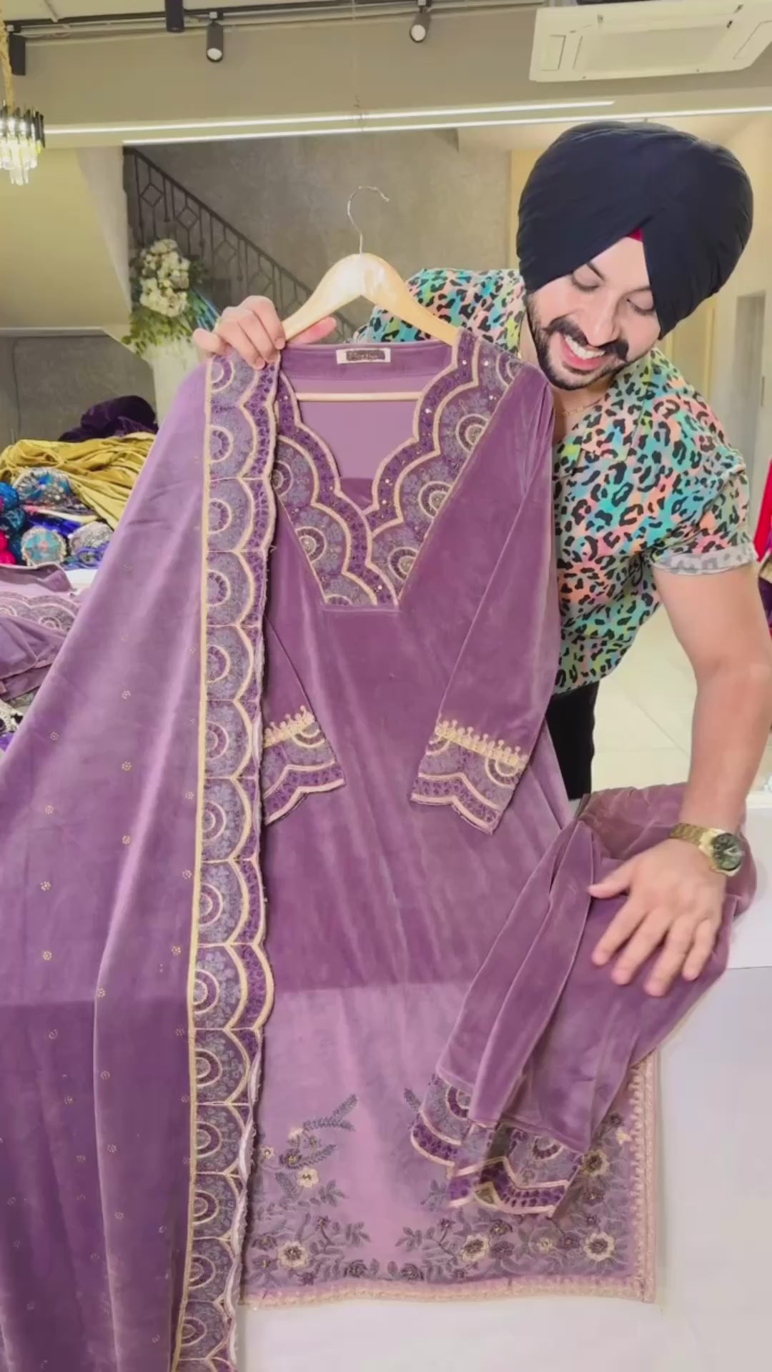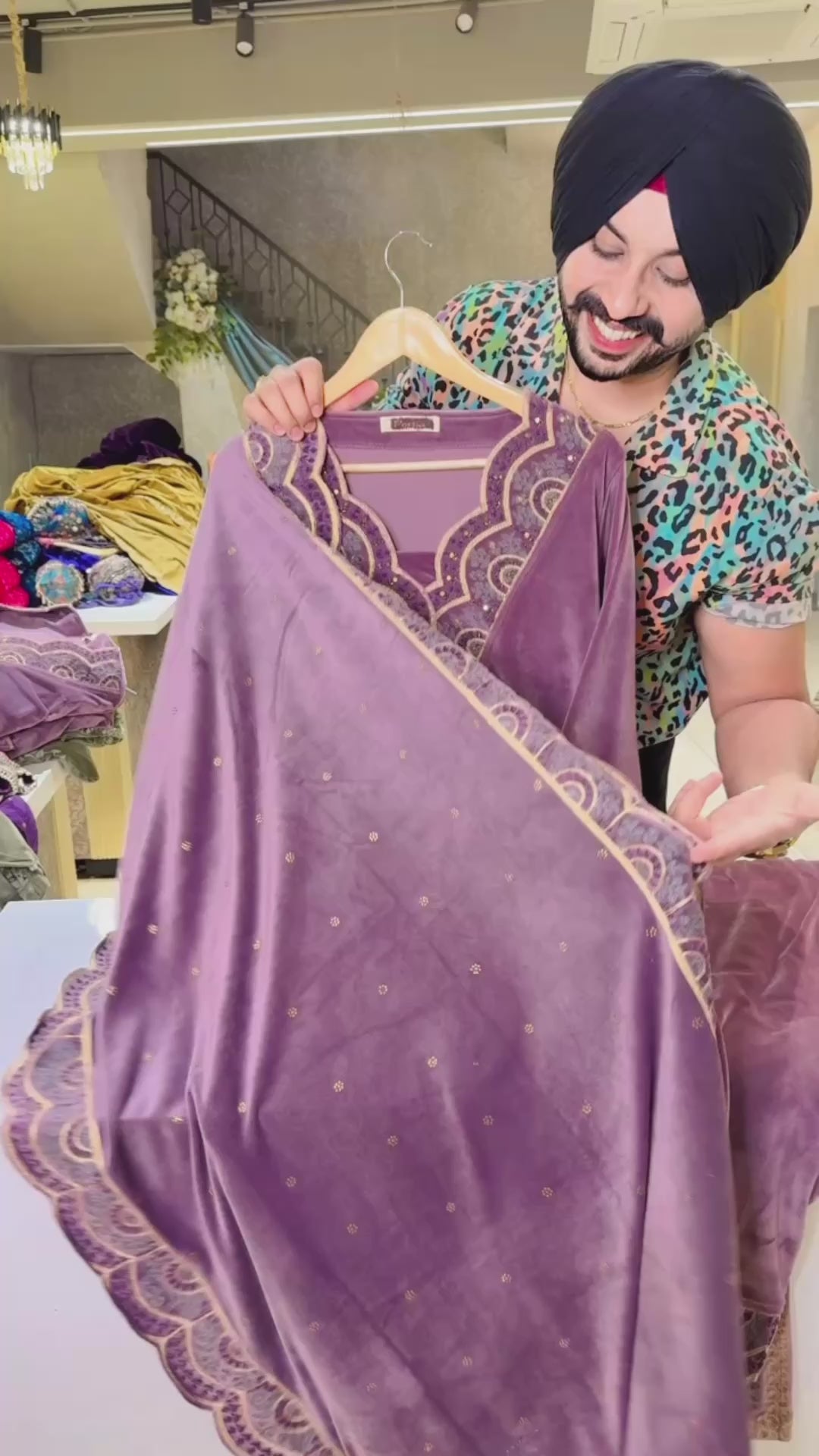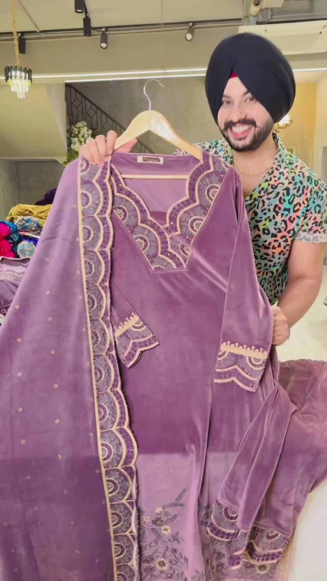 Mauve Heavy Velvet Fully Strechable Straight Suits with Beautiful Duppata