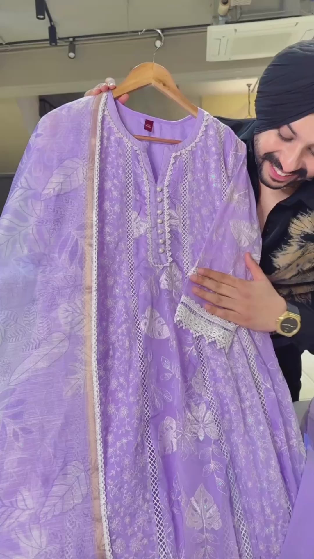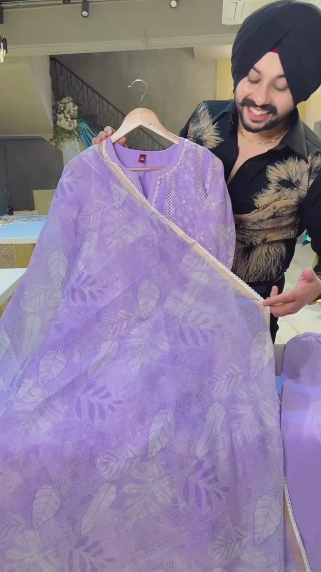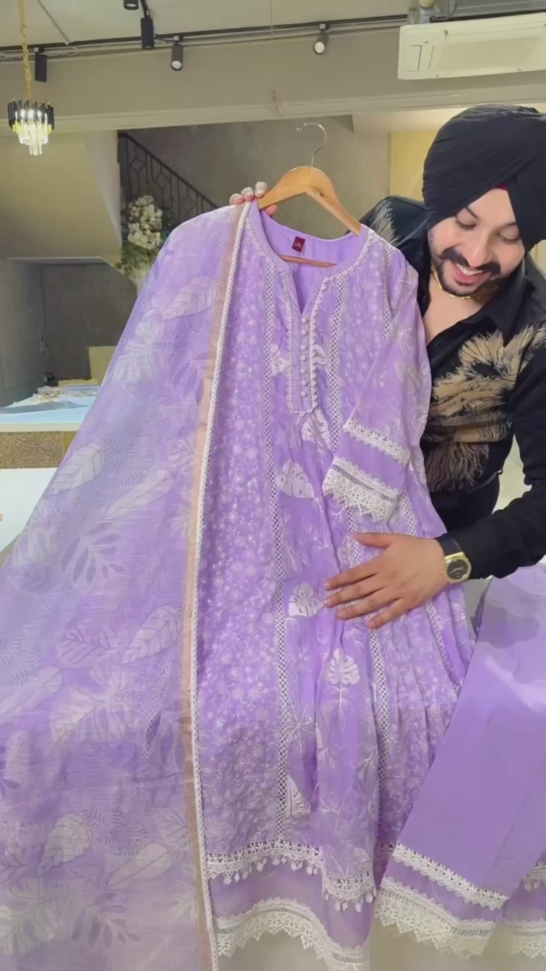 Lavender Soft Organza Fully embroidered Royal Anarkali suit with Digital Print Duppata