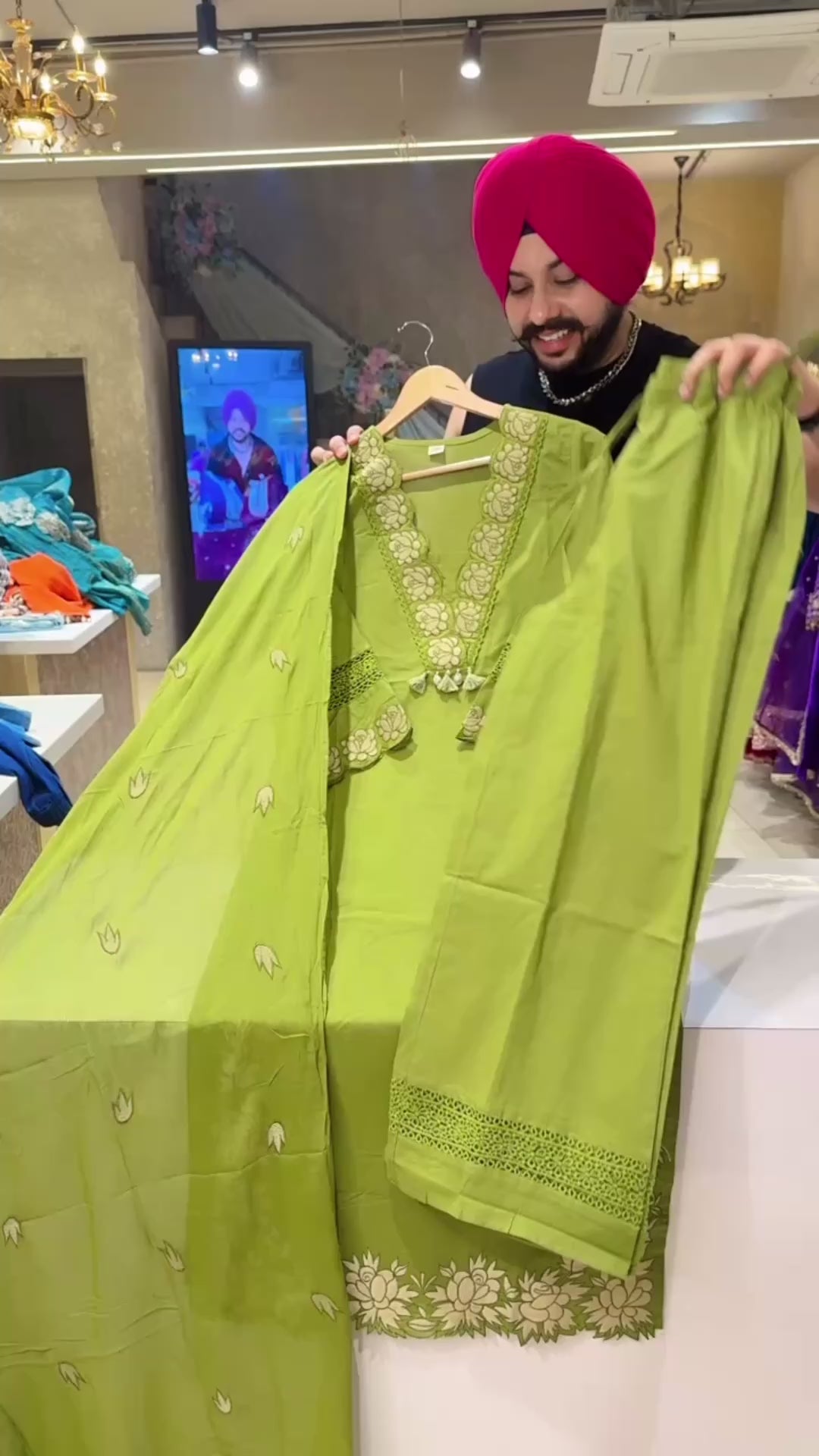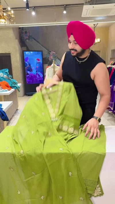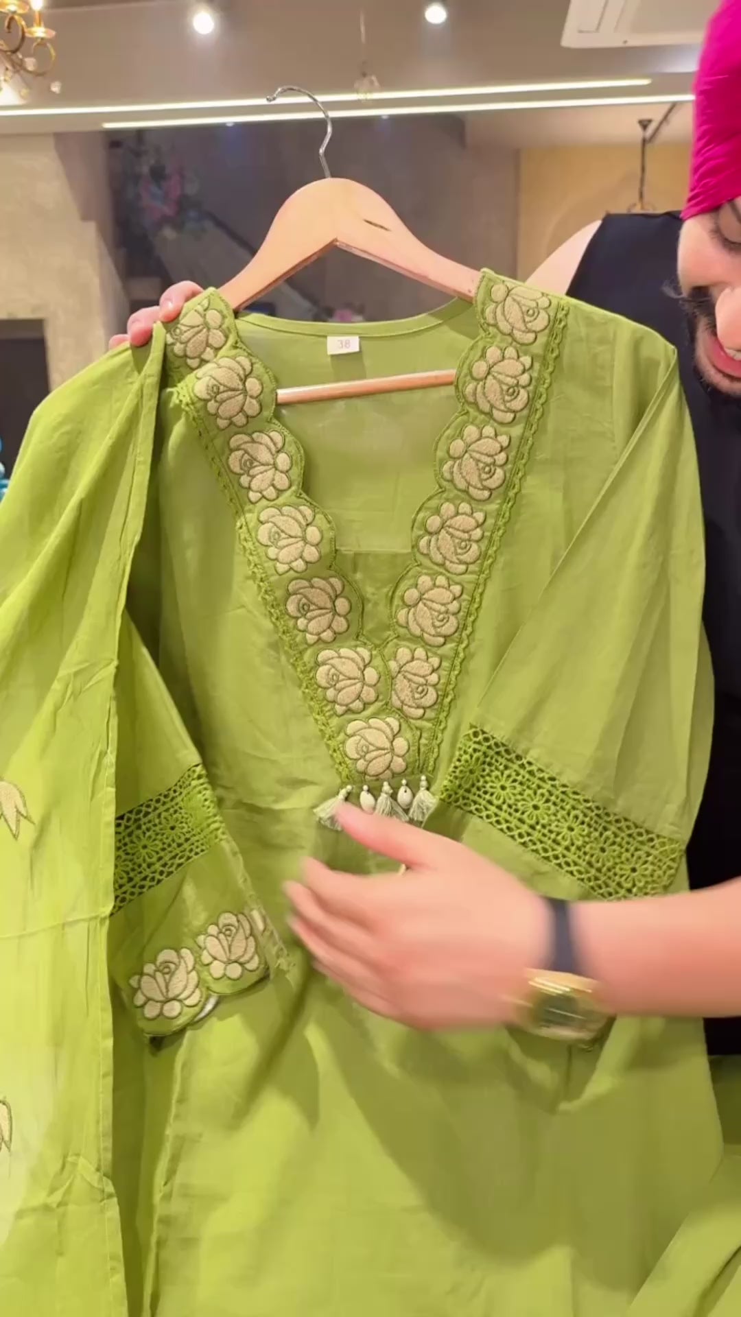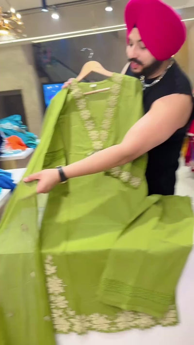 Leaf Green Colour Pure Cotton Embroidered Semi formal Kashmiri Suit with Embroidered Mal Cotton Duppata