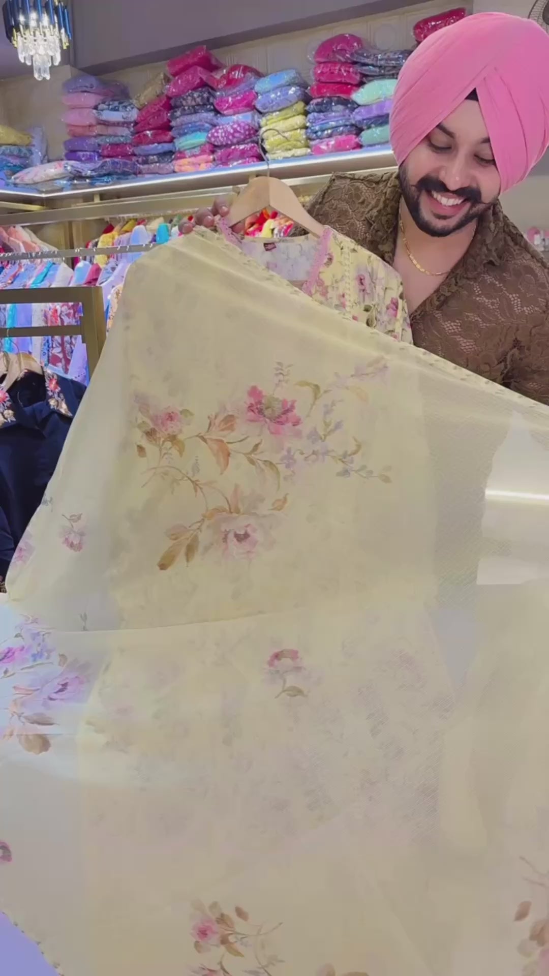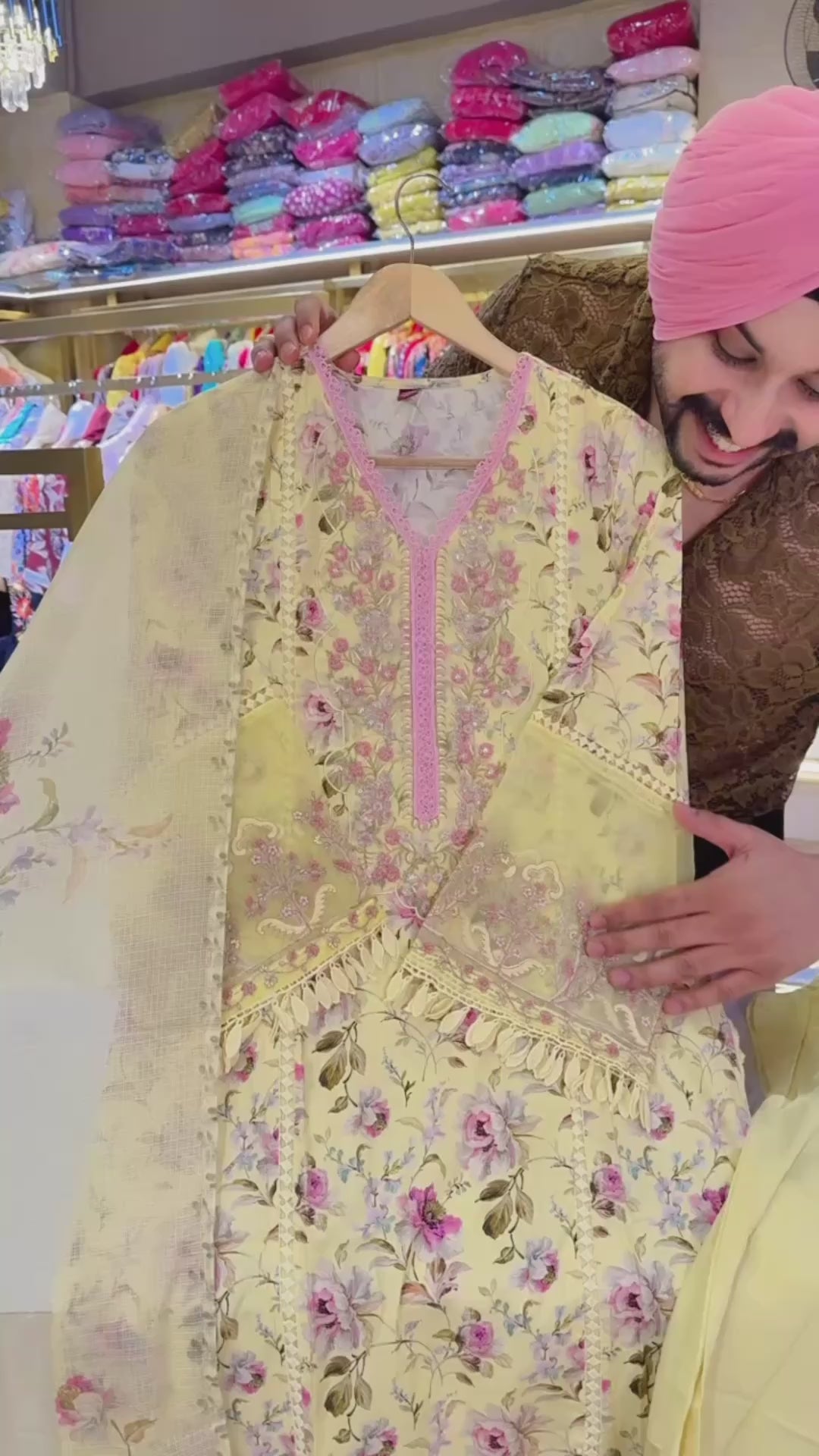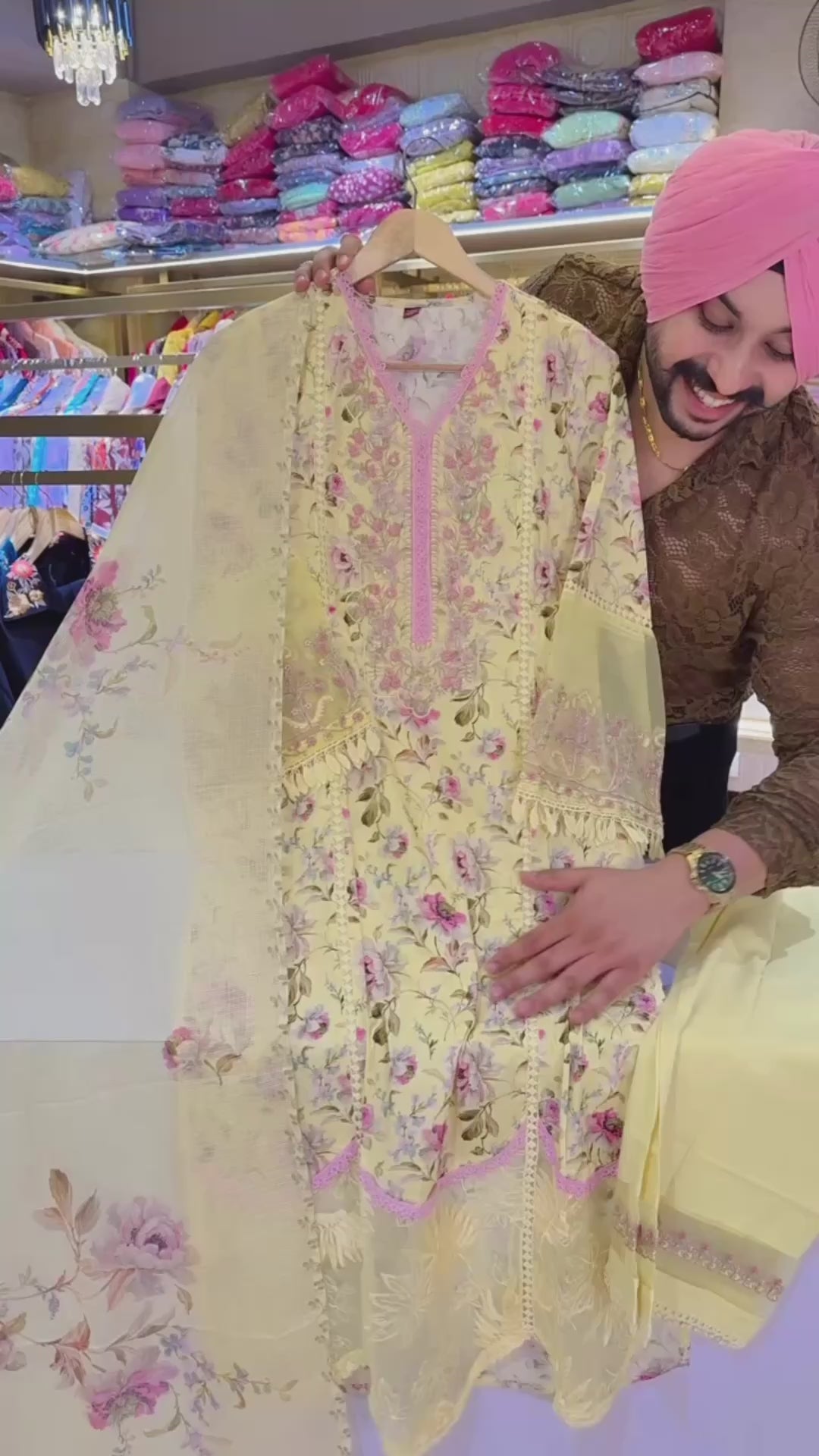 Lemon Yellow Pure Cotton Embroidered Pakistani Suit with Beautiful Kota Doria Duppata