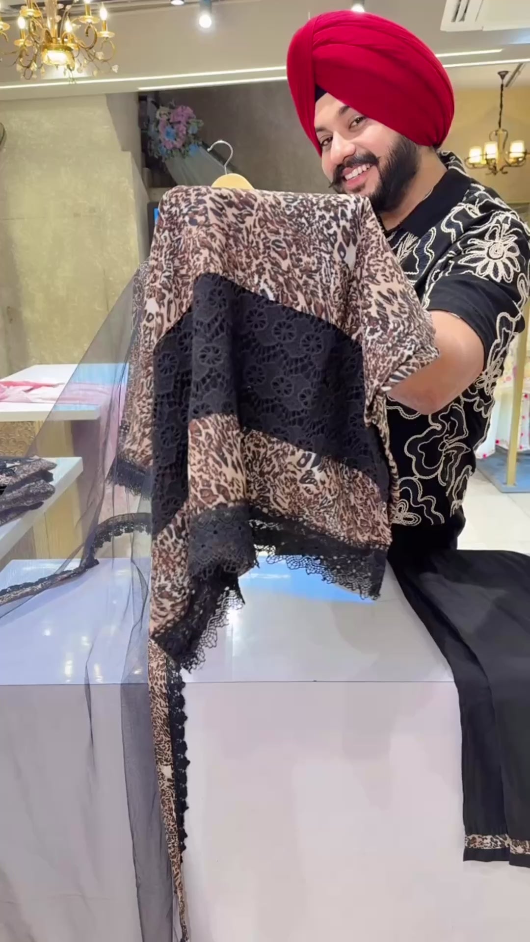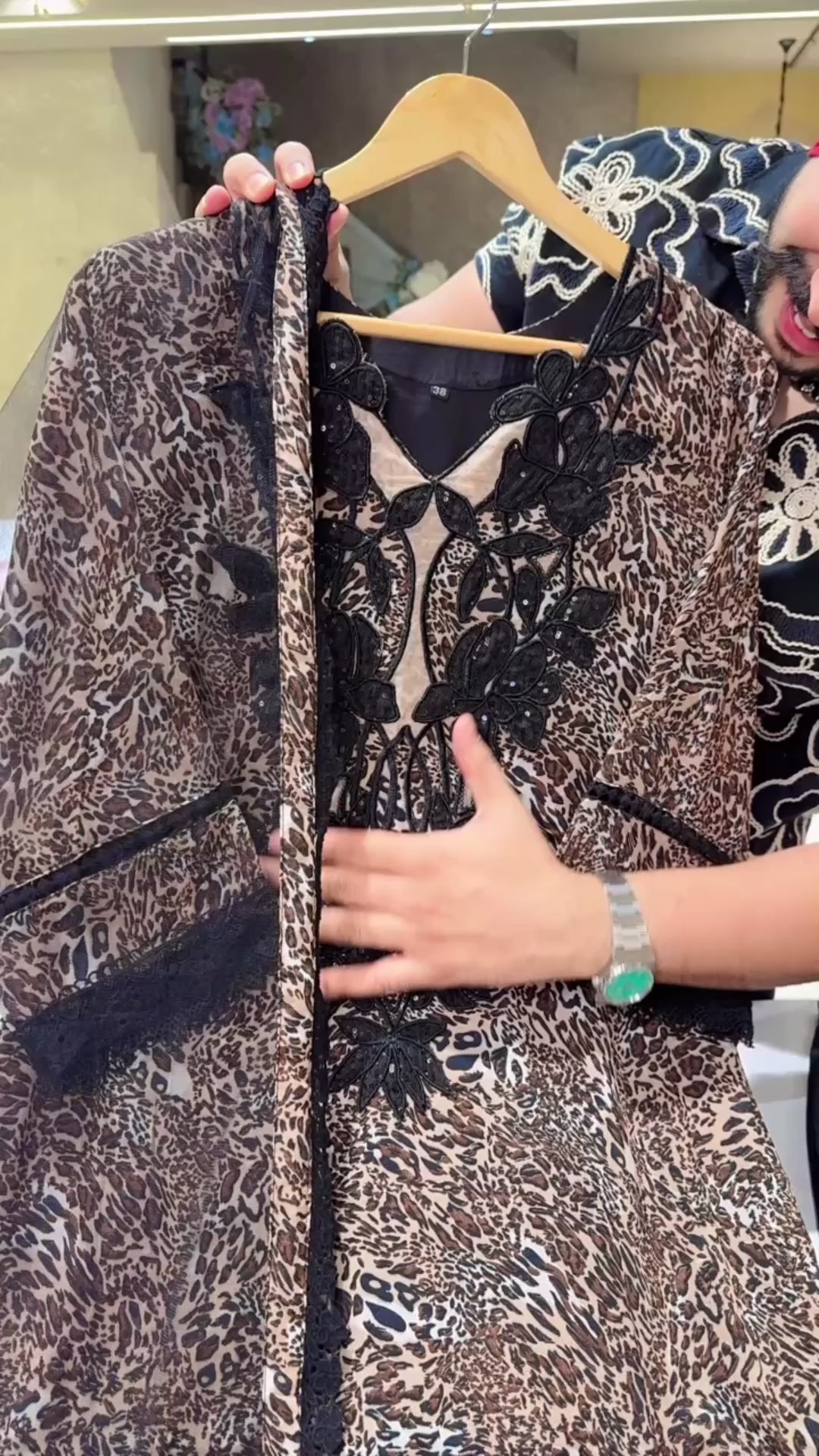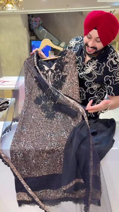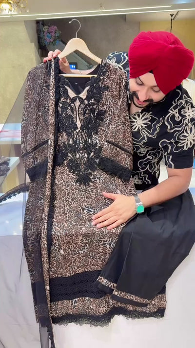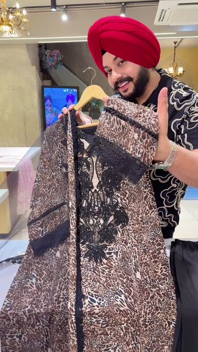 Leopard Print Georgette Heavy Crochet & embroidery work Pakistani Suit with Beautiful Net Duppata