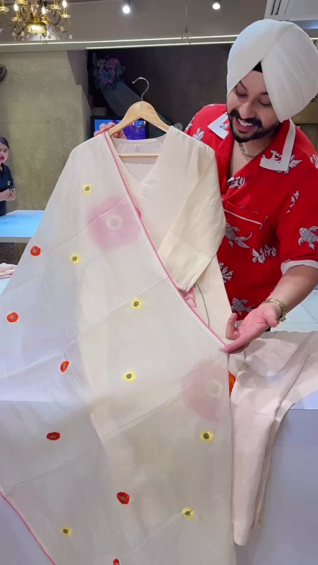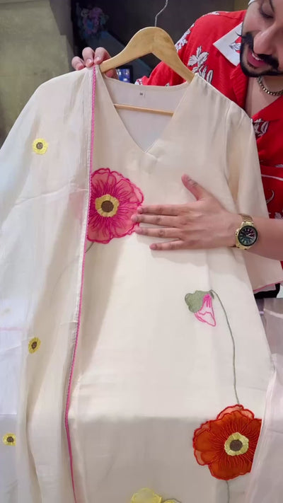 Light Beige Mal Chanderi Floral Embroidered Patch work Semi Formal Suit with Beautiful Duppata