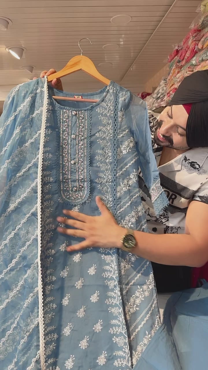 Light Blue Organza Fully embroidered Pakistani suit