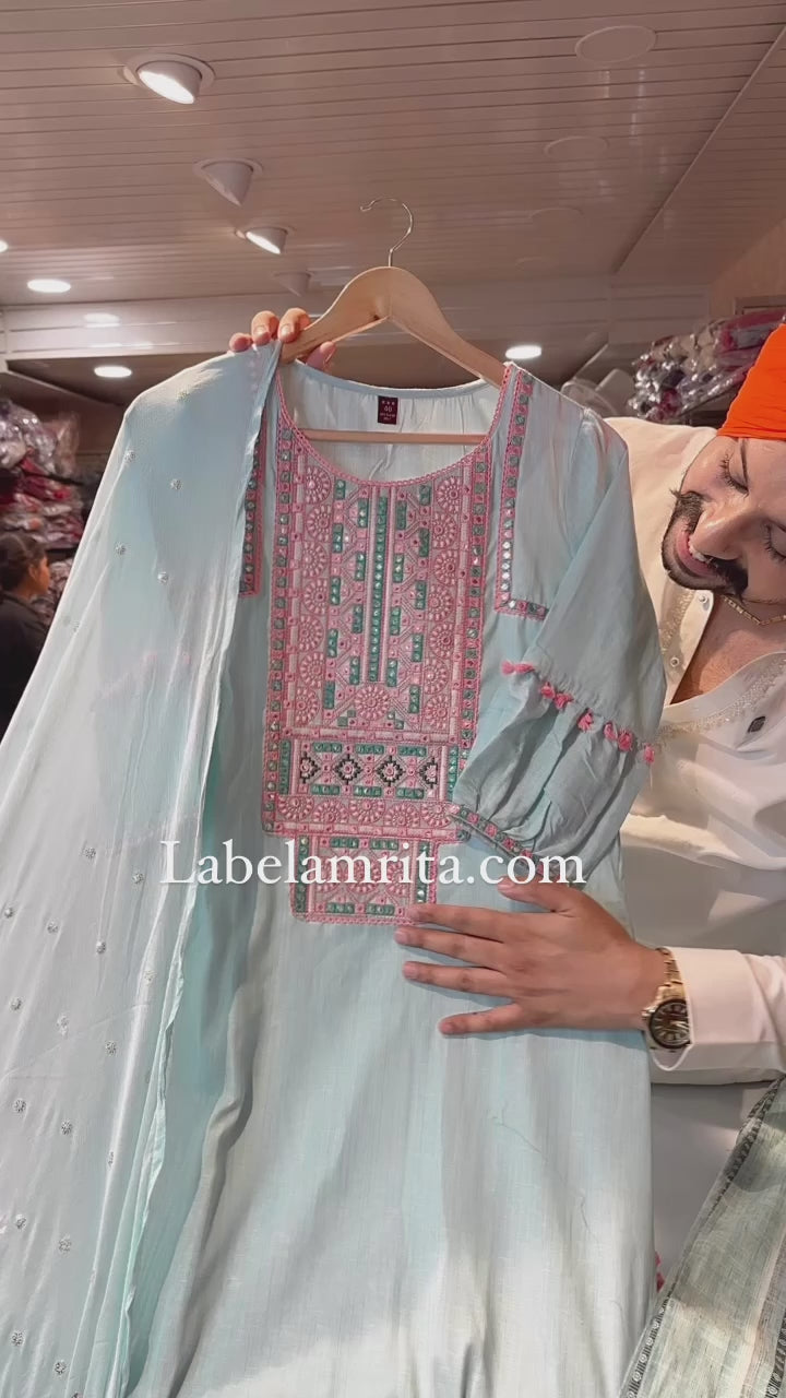 Light blue Pure Cotton Apple Cut Suit with Beautiful embroidery on neck