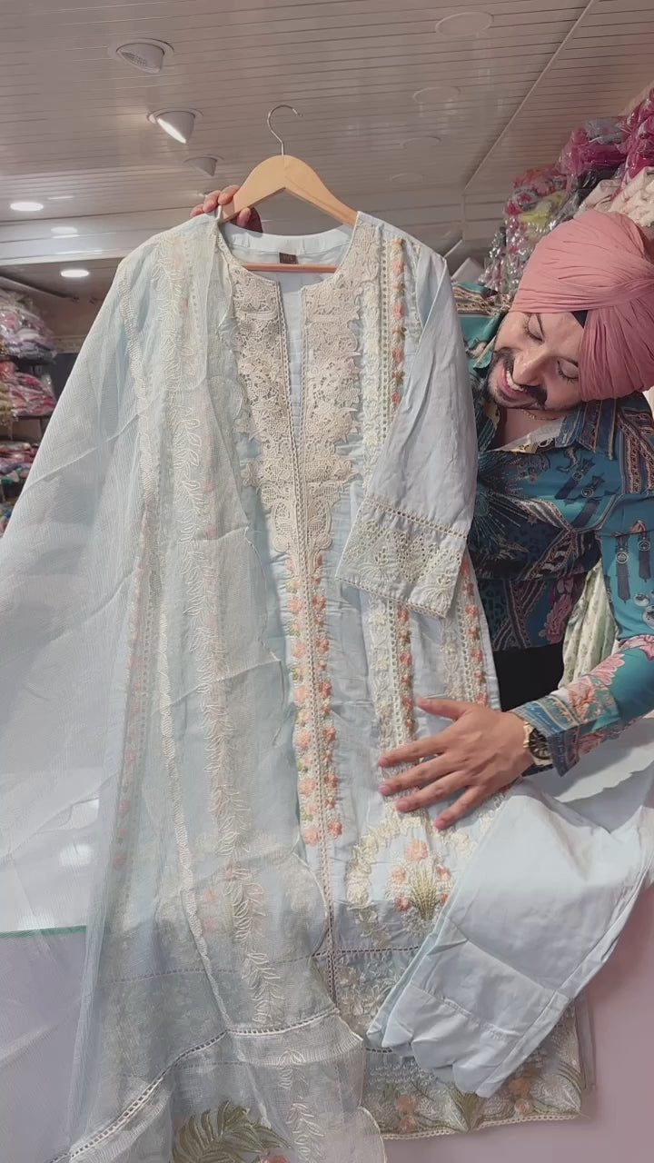 Light Blue Pure cotton Heavy embroidered Pakistani suit with beautiful Duppata