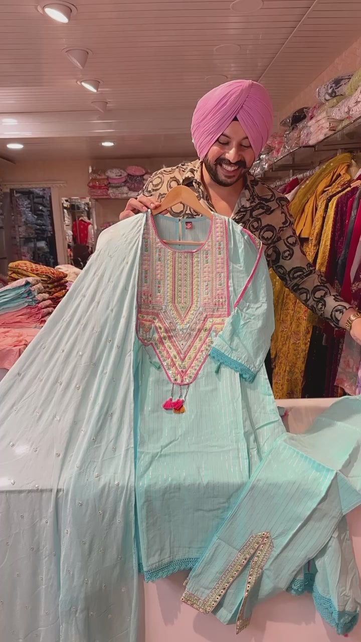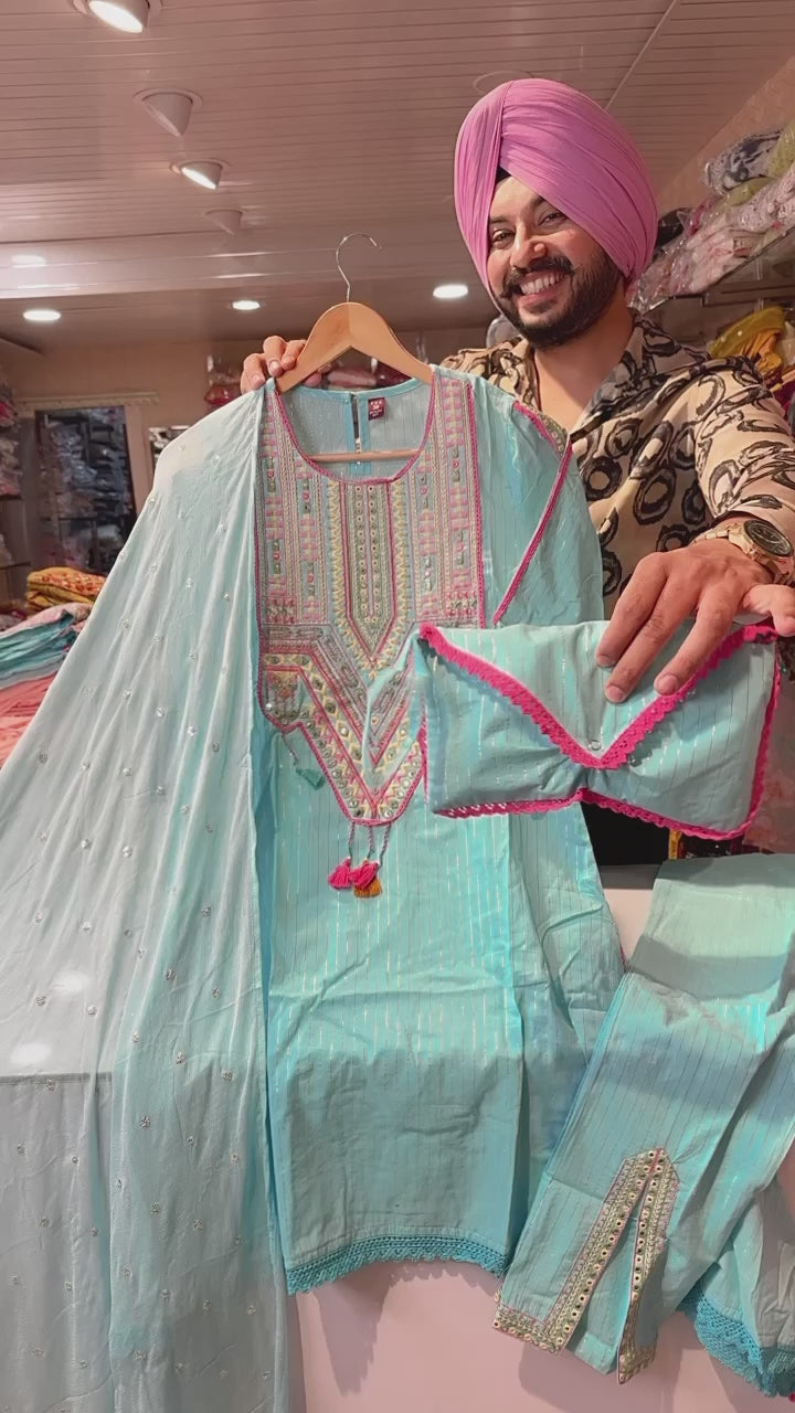 Light blue pure Cotton Indowestern C-cut suit with stylish pants & purse
