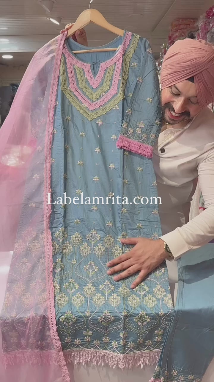 Light blue Roman silk Fully Embroidered Pakistani suit with Beautiful organza Duppata