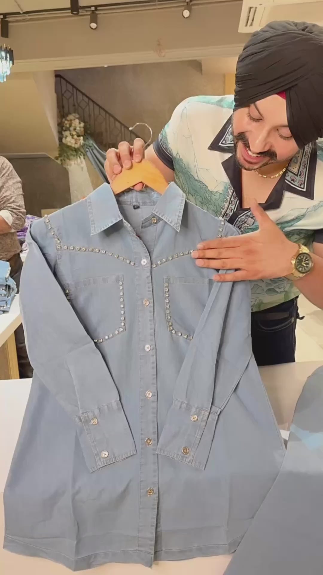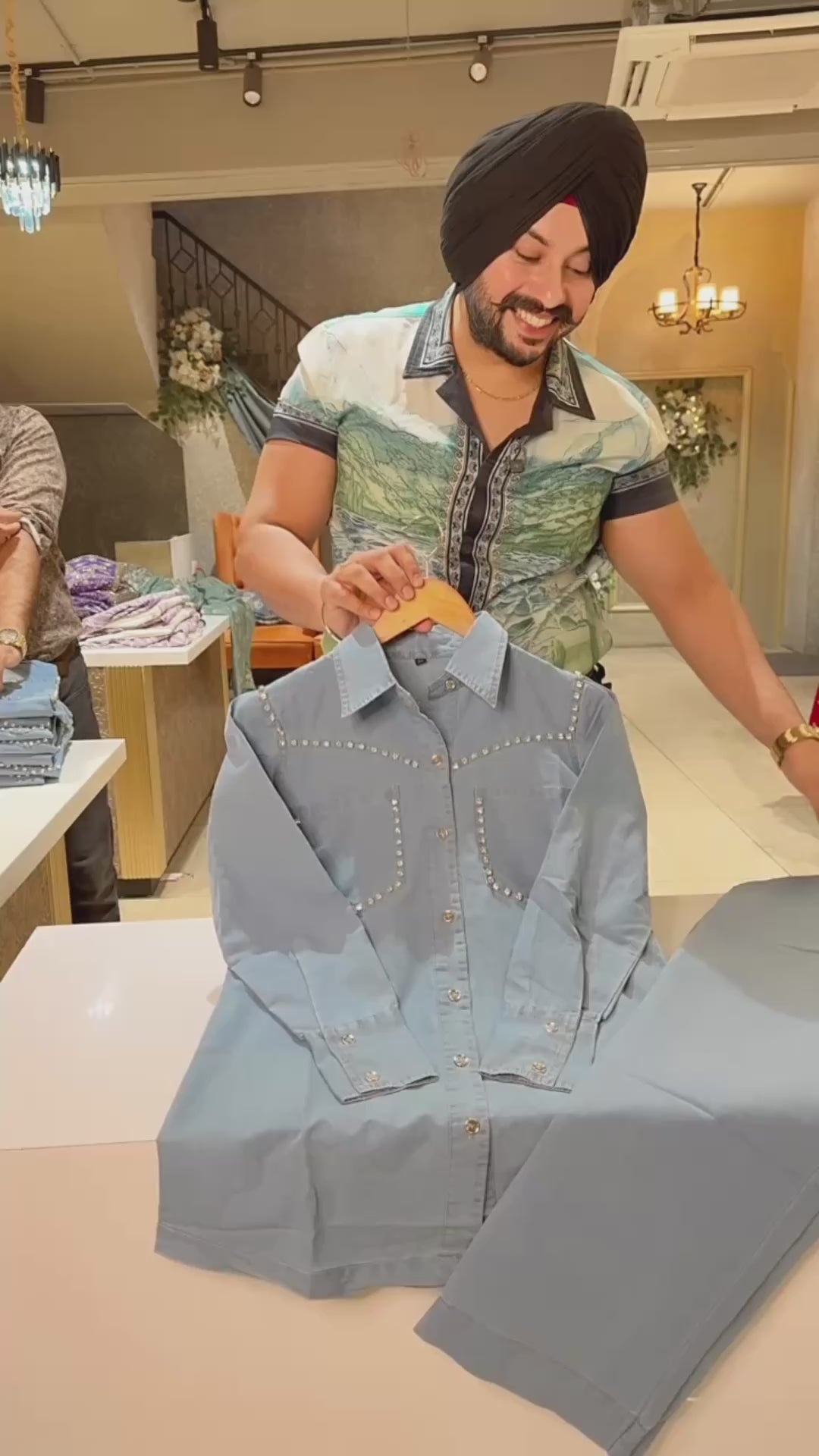 Light Blue Soft Denim Collar Neck Coord set with Beautiful Stone work