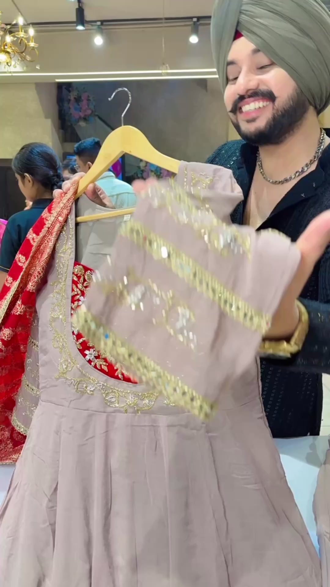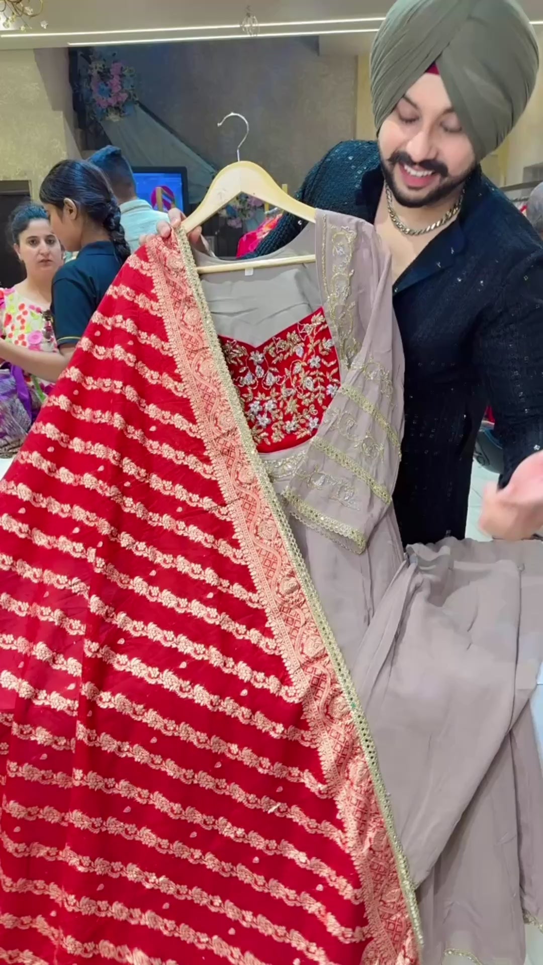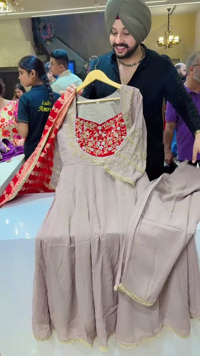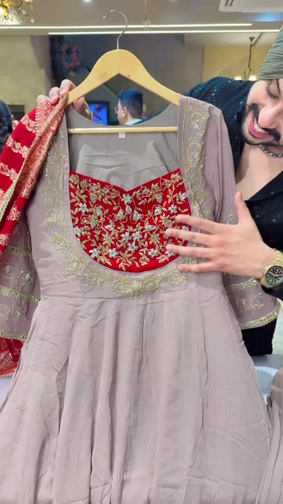Light Cheeku & Deep Red Georgette Heavy Hand Embroidered Partywear Anarkali suit with Beautiful Banarasi Look Duppata