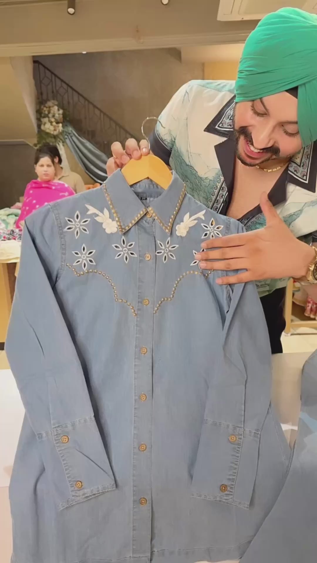 Light Blue soft Denim Collar neck Coord set with Beautiful Sequins & Embroidery work on it