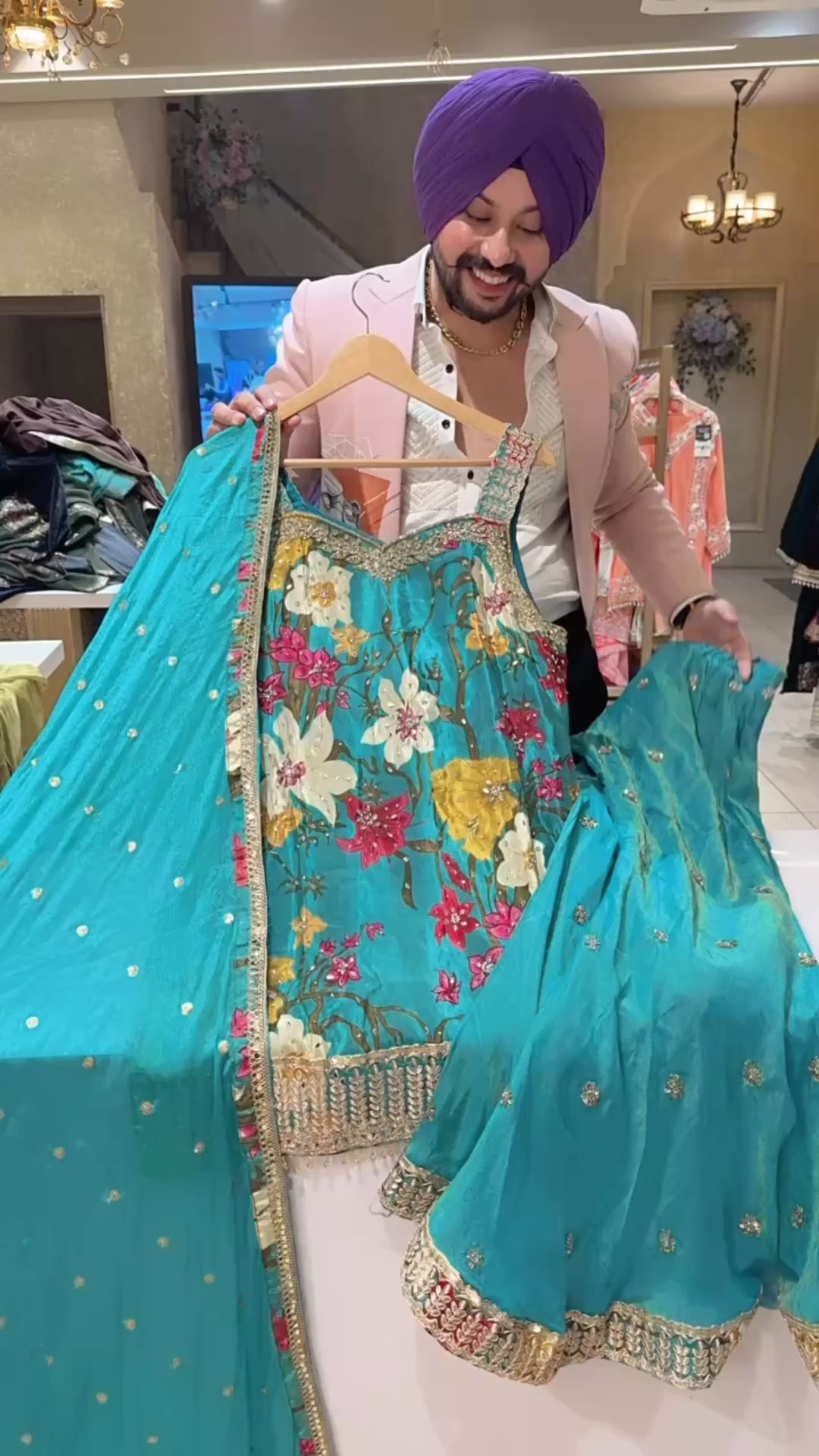 Light Firozi Floral Print party Wear Bell Bottom Suit with Beautiful Sequins Work Duppata