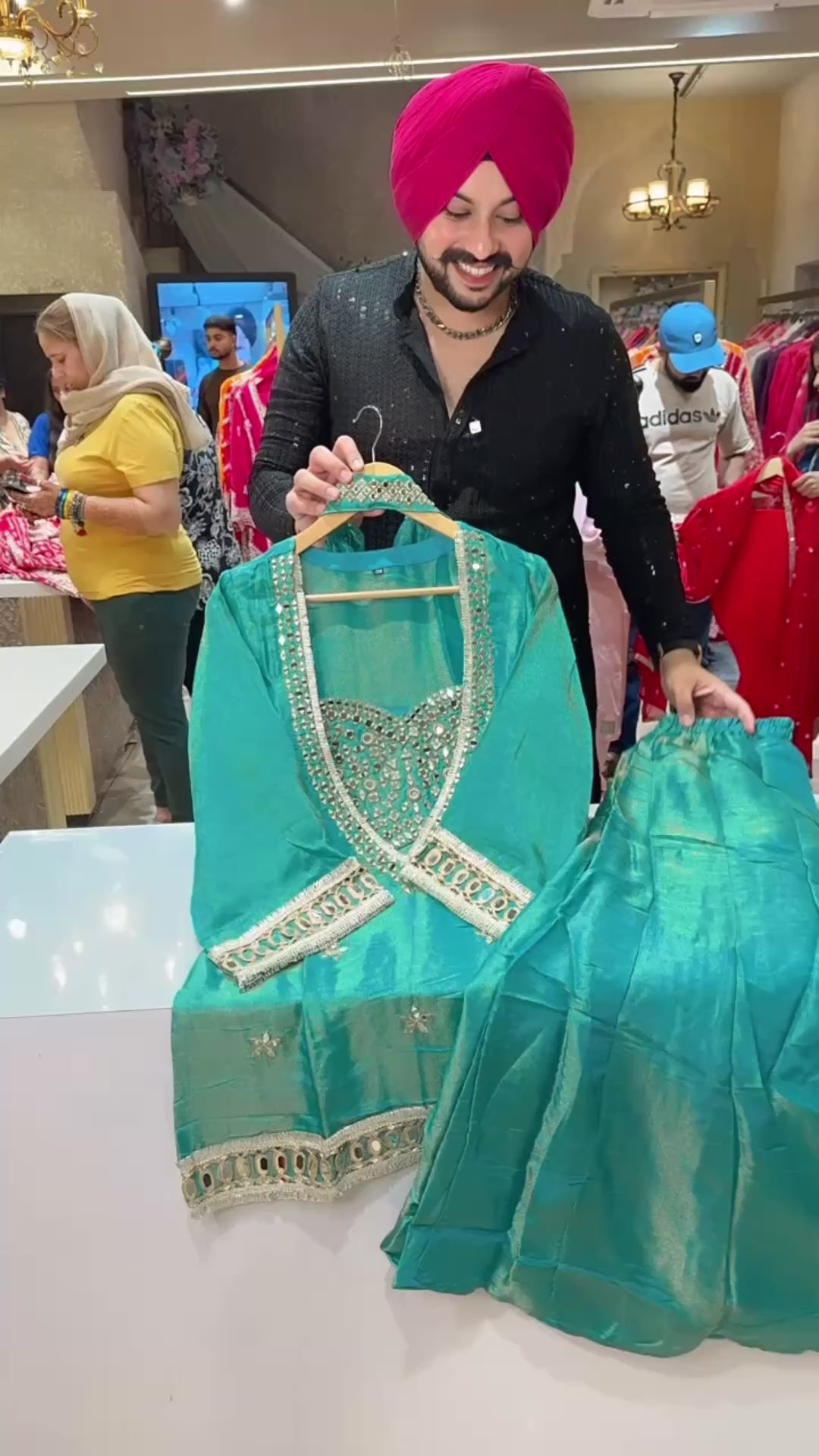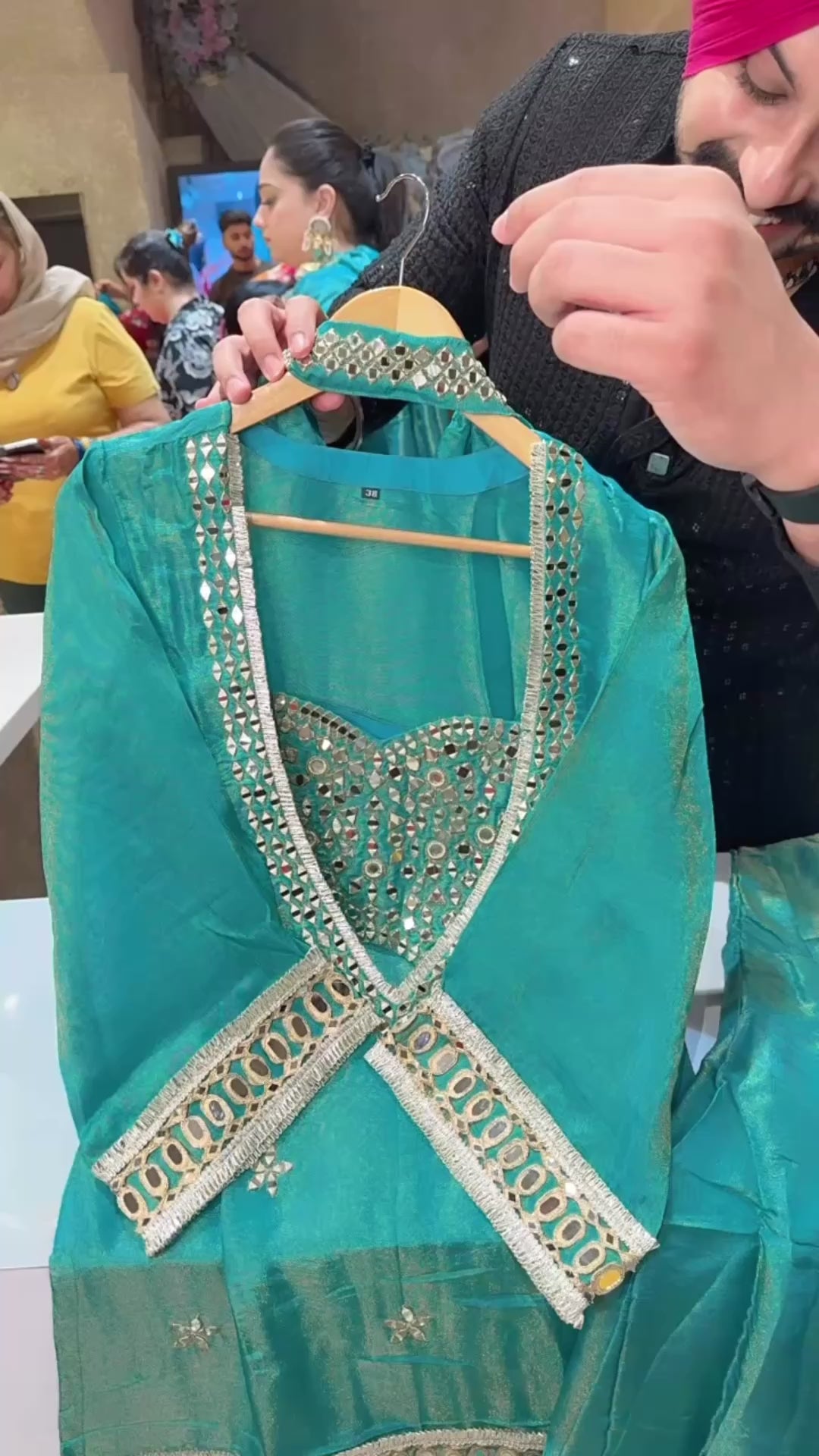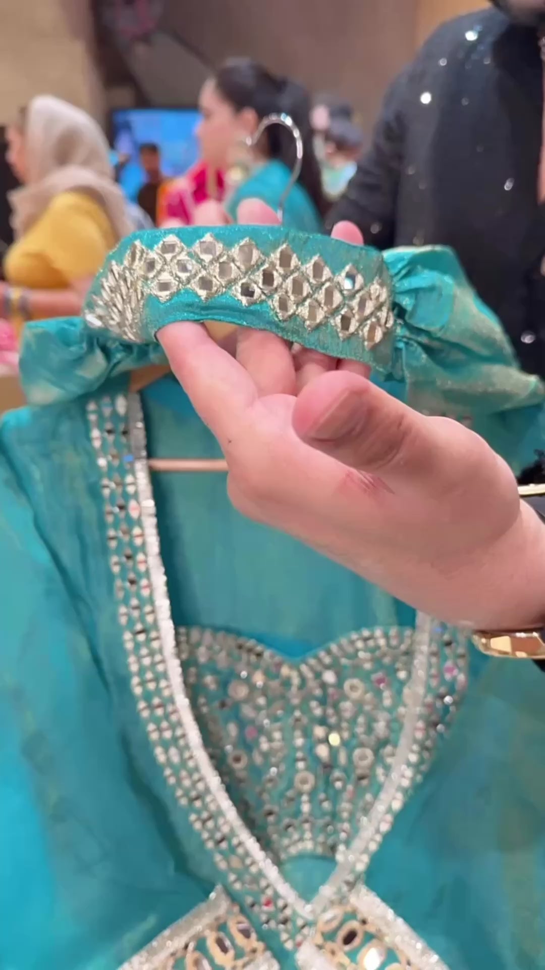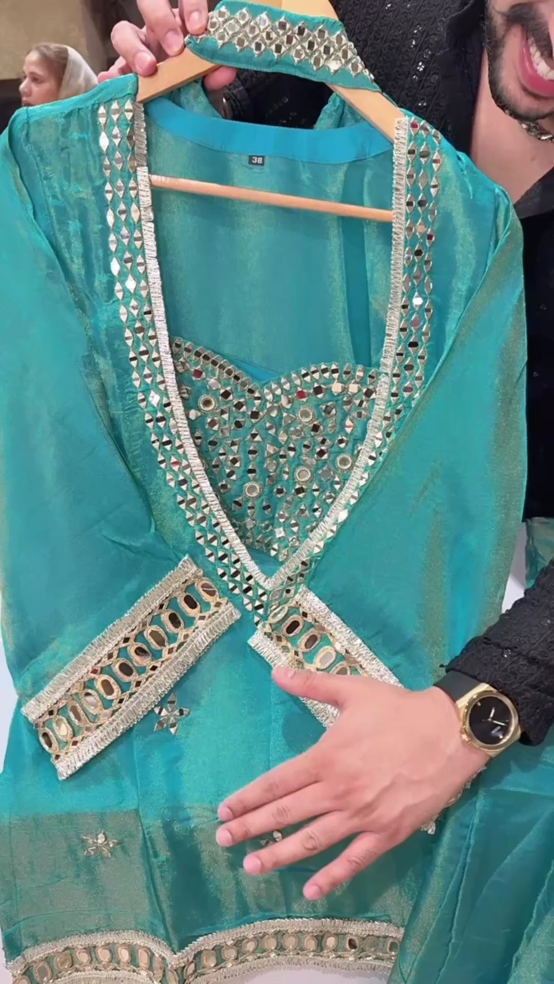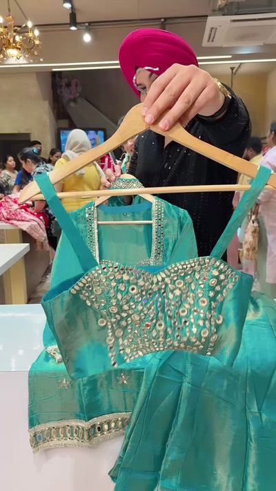 Light Firozi Shimmer Silk Tissue Designer Bell Bottom Sharara Coordset with Heavy mirror work on it & Bustier