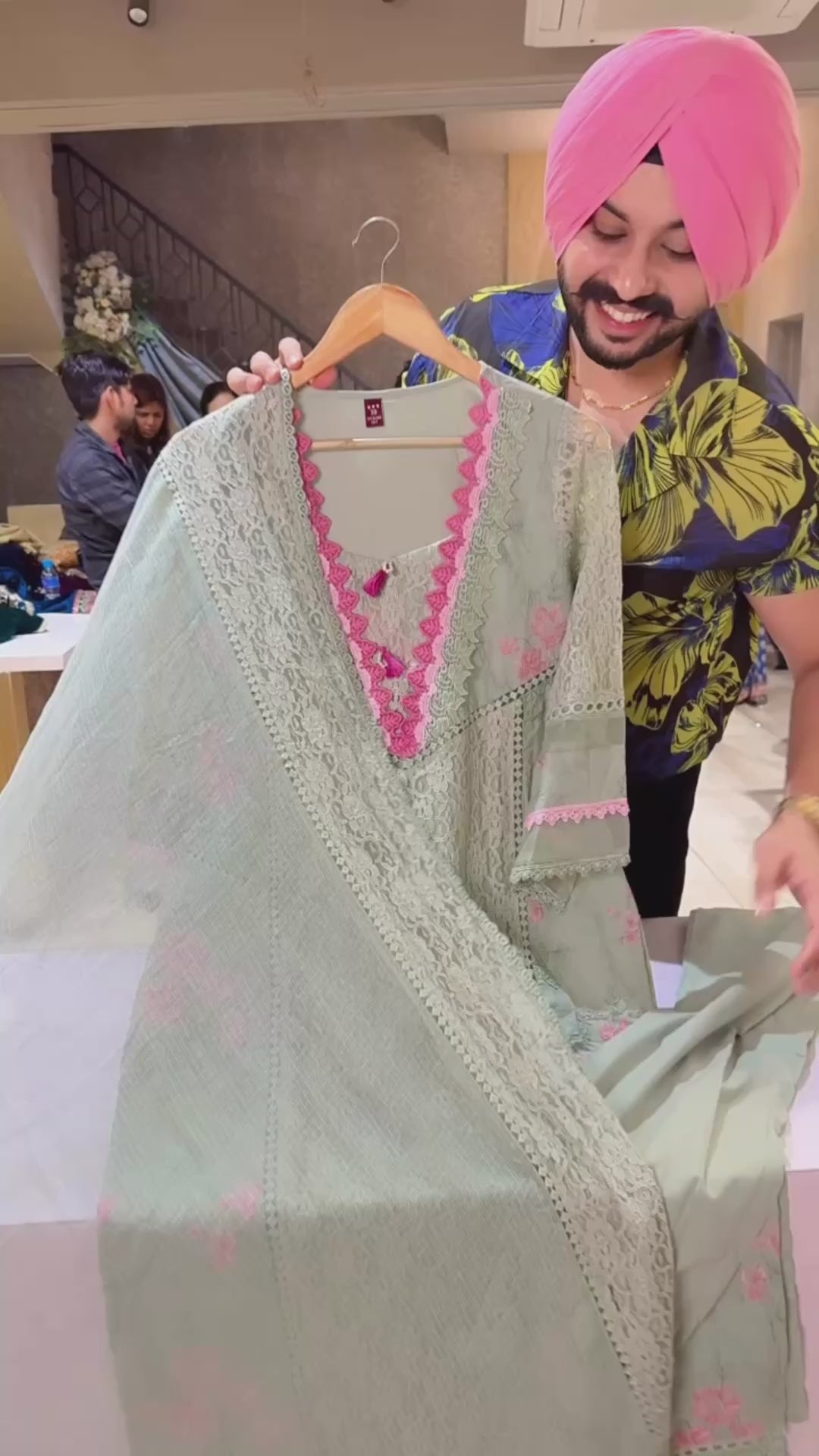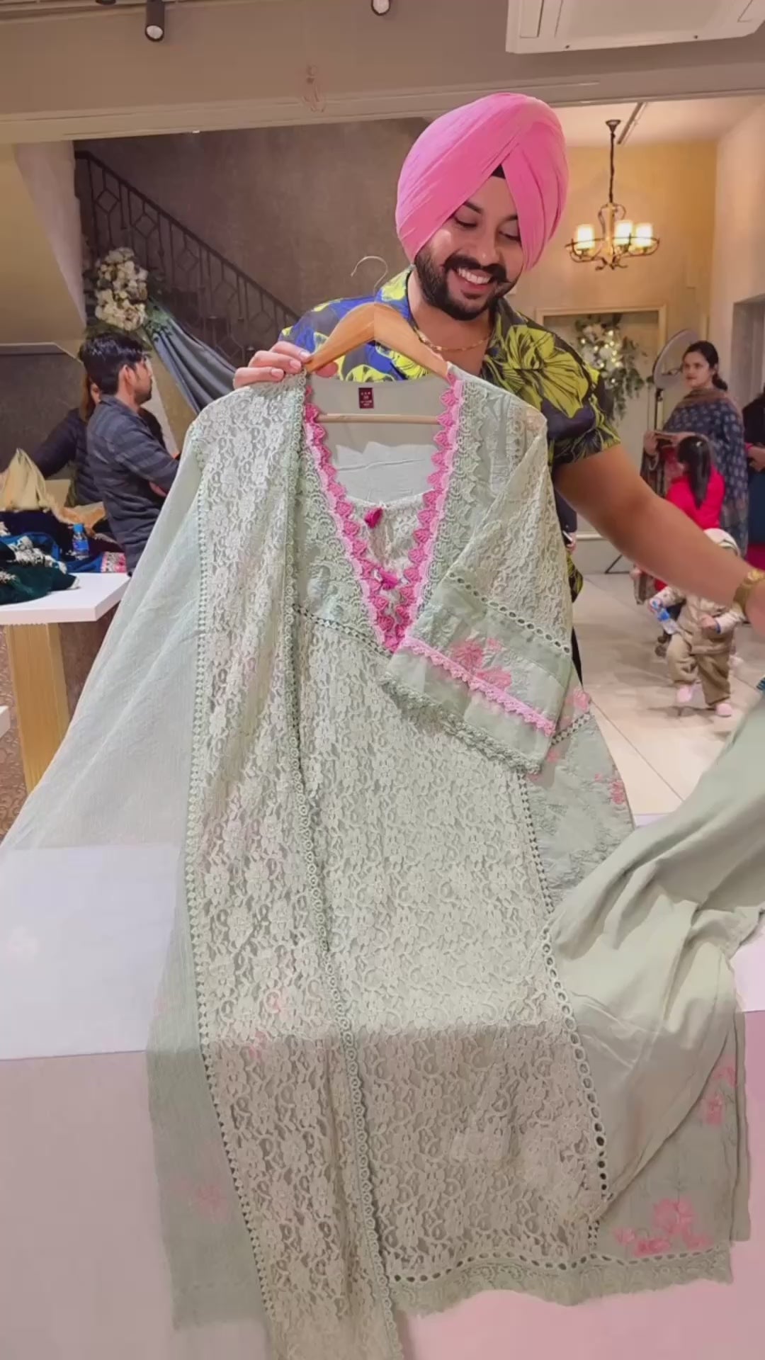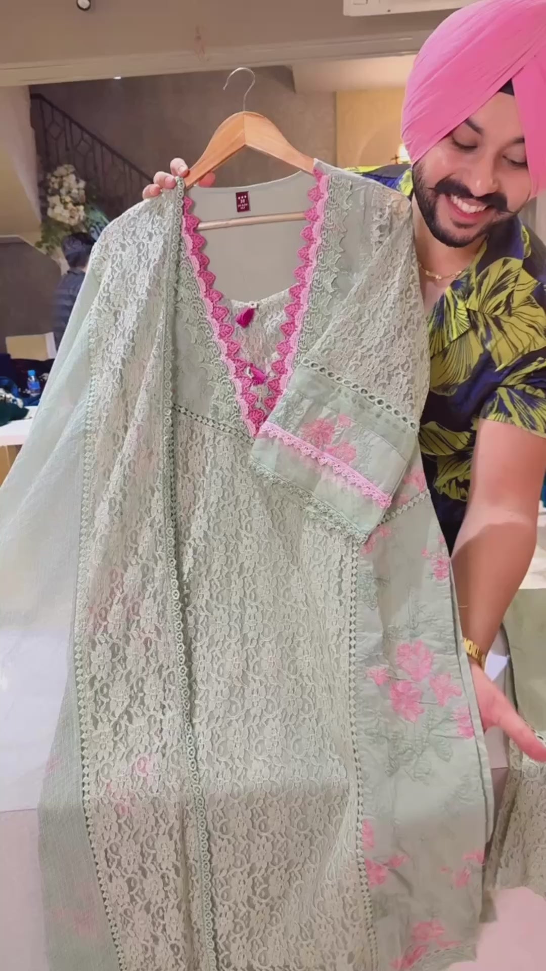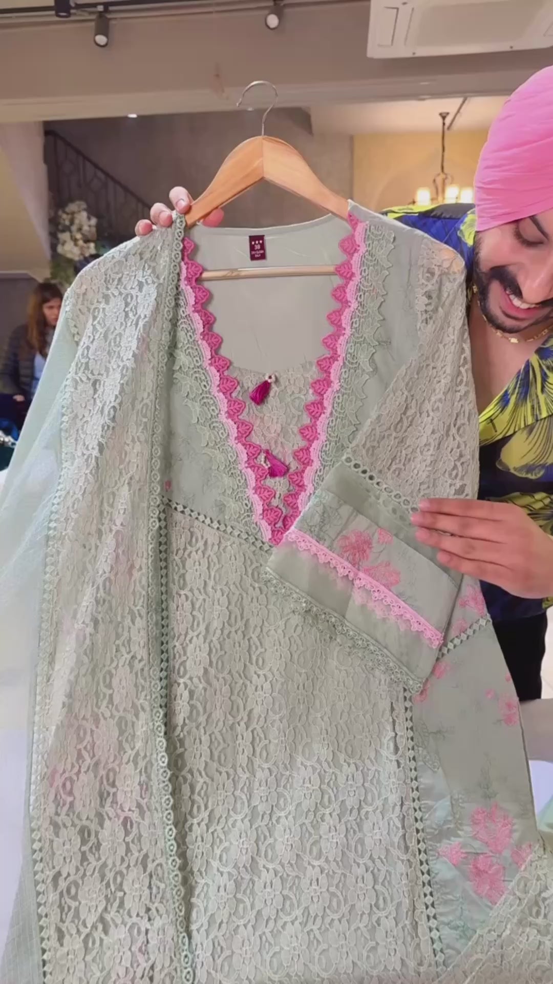 Light Olive Green Pure Cotton Heavy embroidered & Crochet work Pakistani suit with Kota Doria Duppata