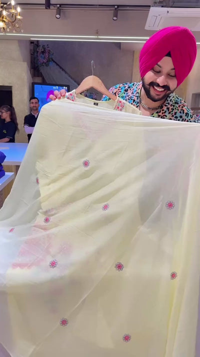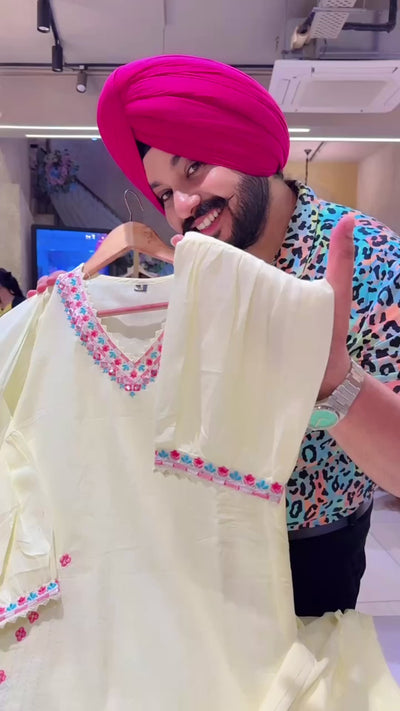 Light Lemon Mal Cotton Embroidered A-line Suit with Beautiful Embroidered Duppata