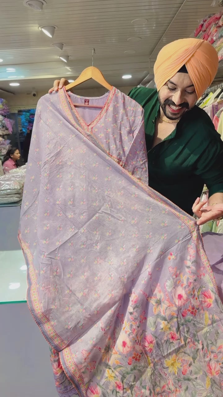 Light lilac Mal Cotton Alia Cut Suit with Beautiful Pathani pants