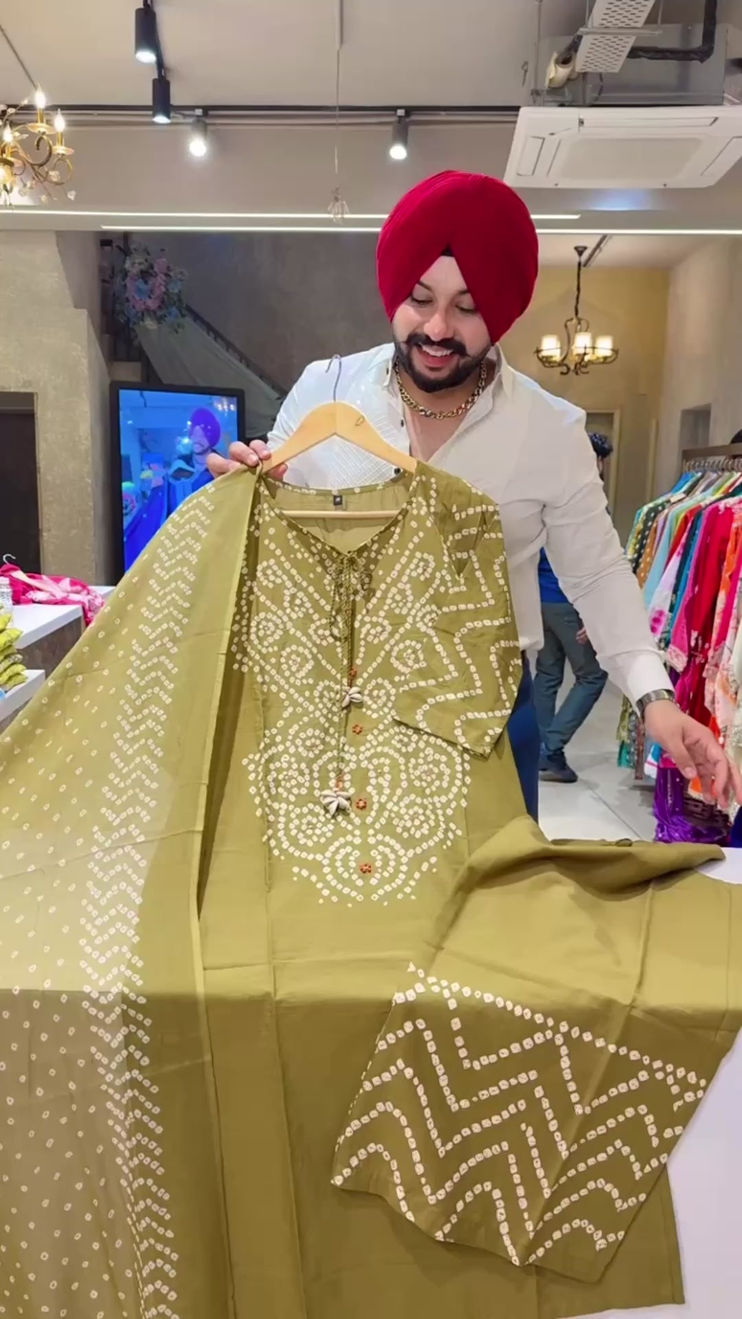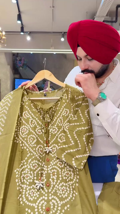 Light Mehendi Soft Cotton Bandhej print office Wear cotton Suit