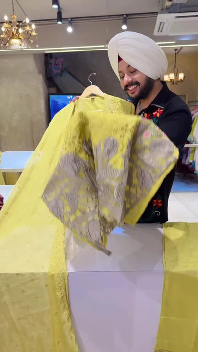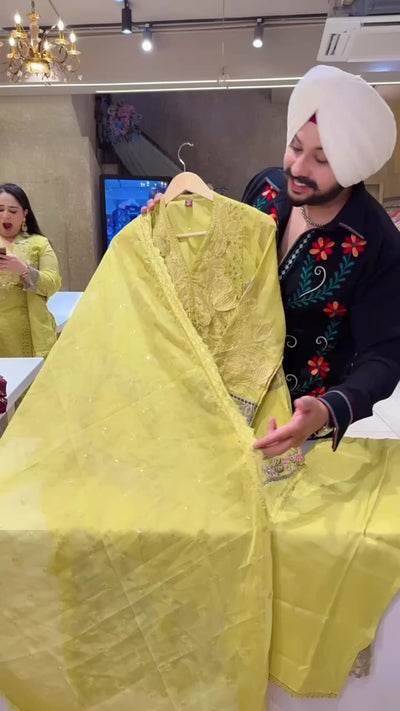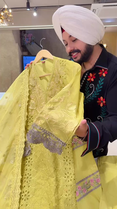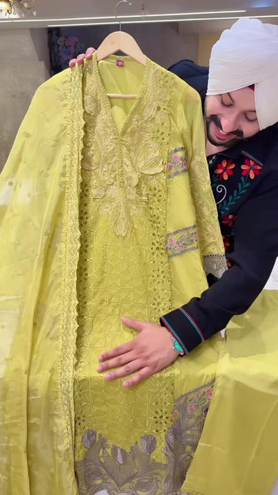 Light Mehendi Soft Organza Heavy Embroidered & Cut Work Pakistani party Wear suit with Beautiful Sequins work Duppata