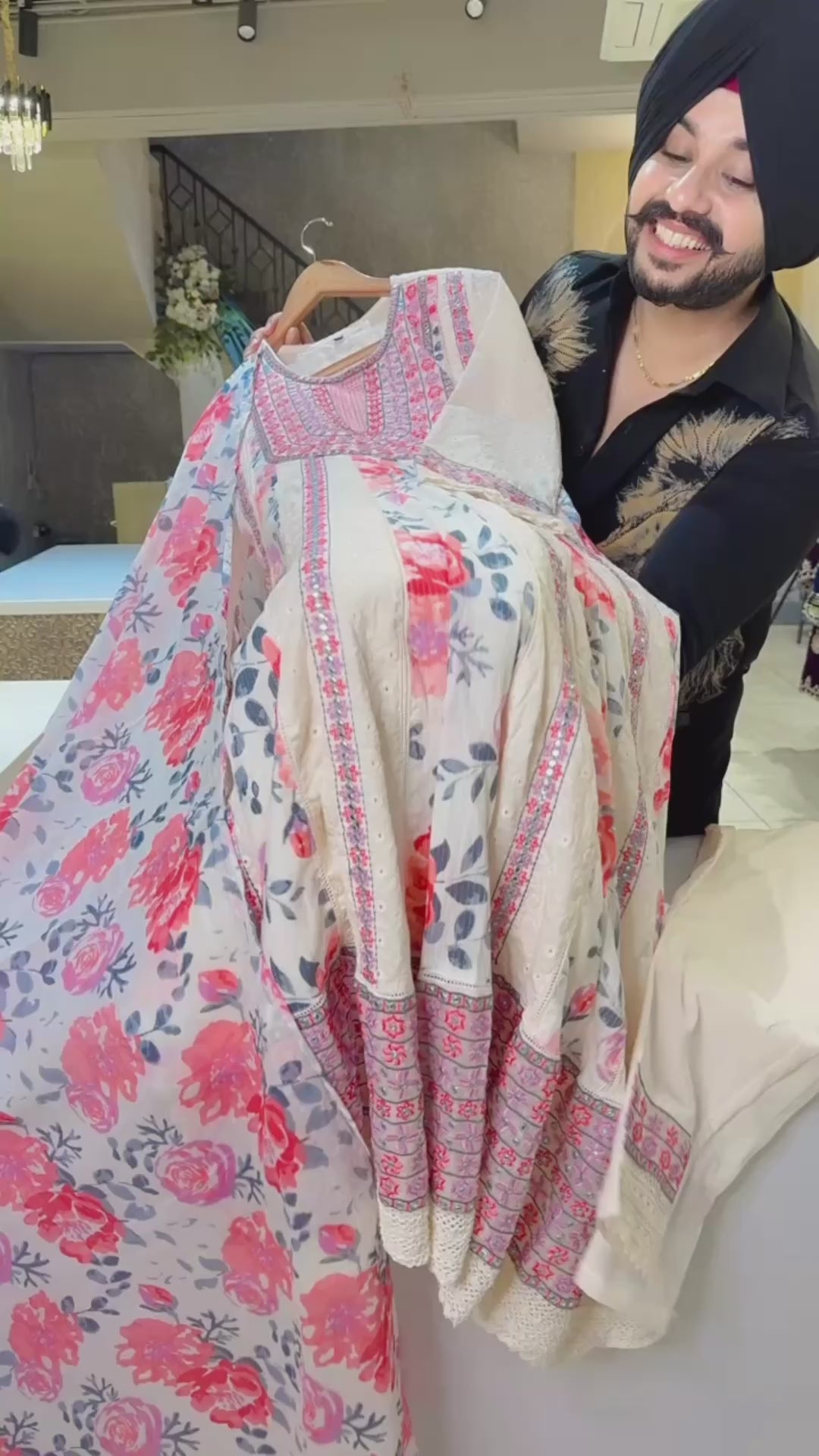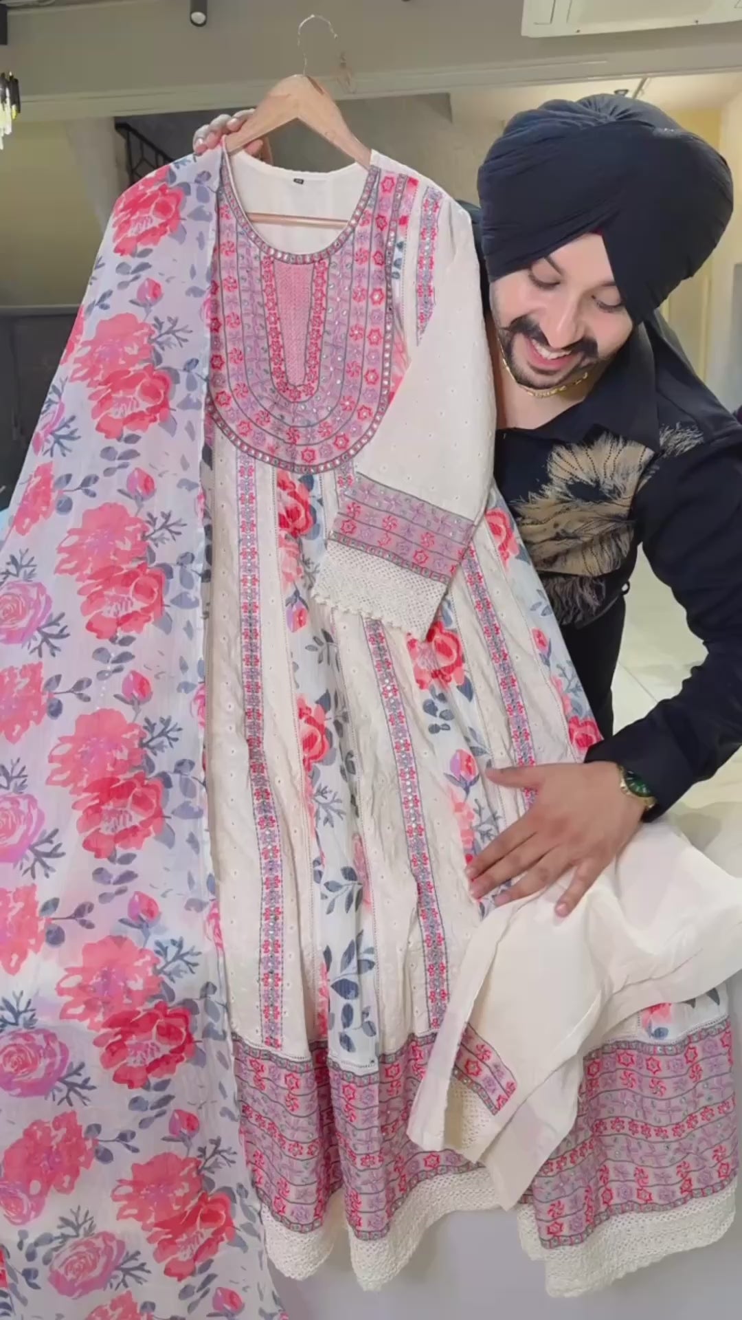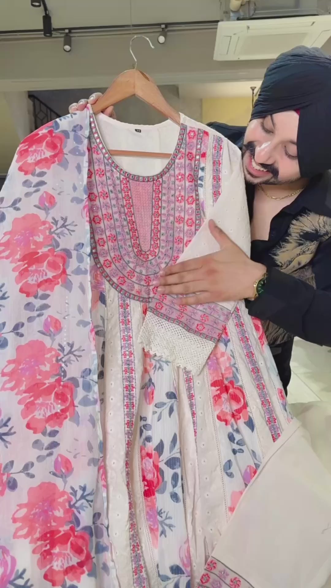 Off White & Multicolored Pure Cotton Heavy Embroidered & Shifli Work Anarkali Suit with Floral Print Duppata