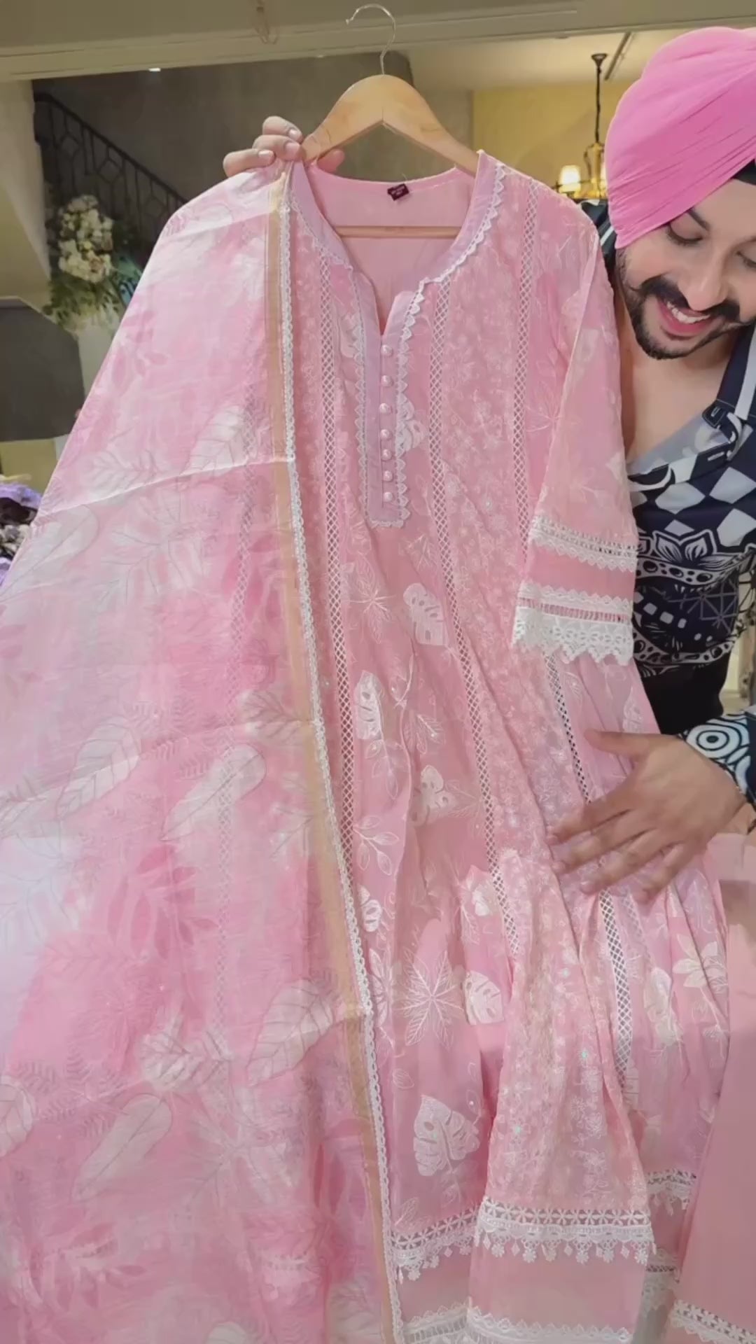 Light pink Soft Organza Fully embroidered Royal Anarkali suit with Digital Print Duppata