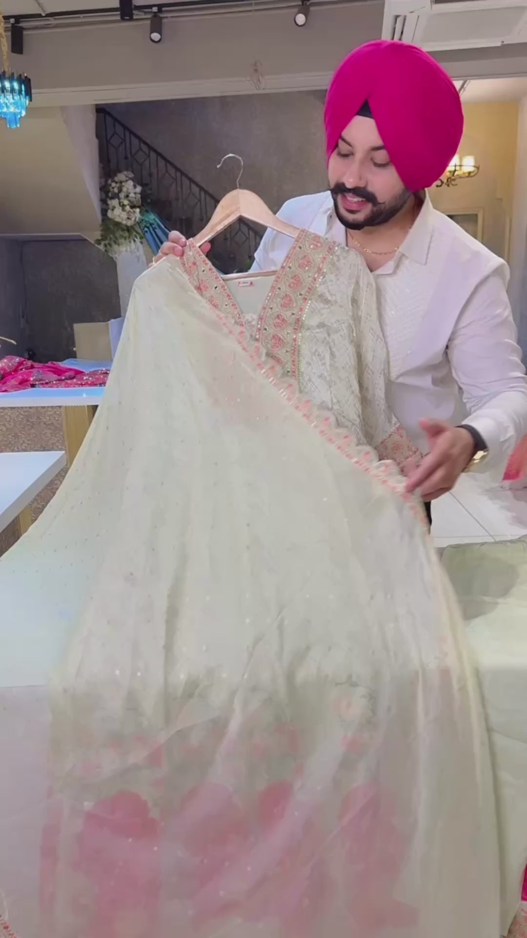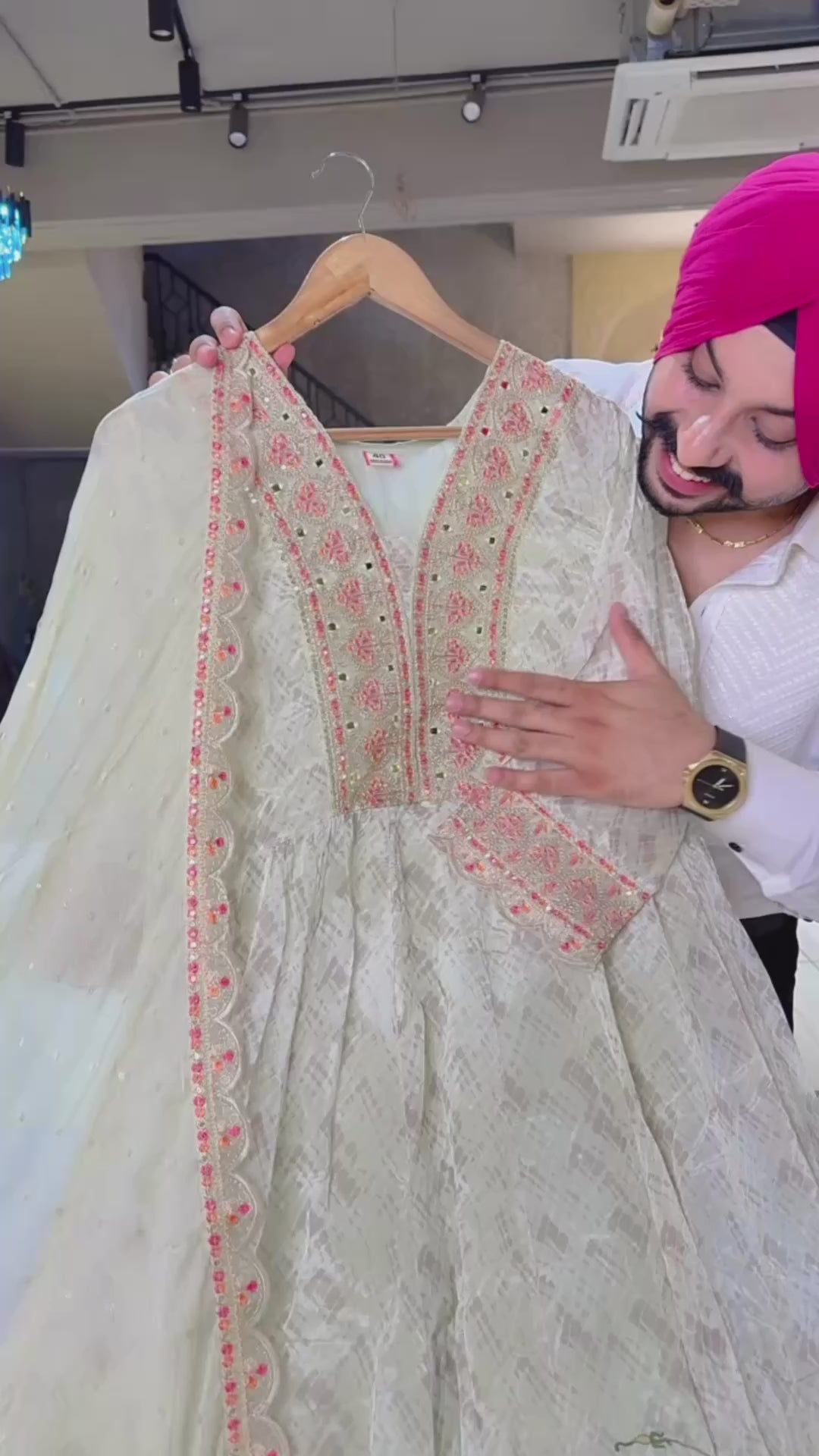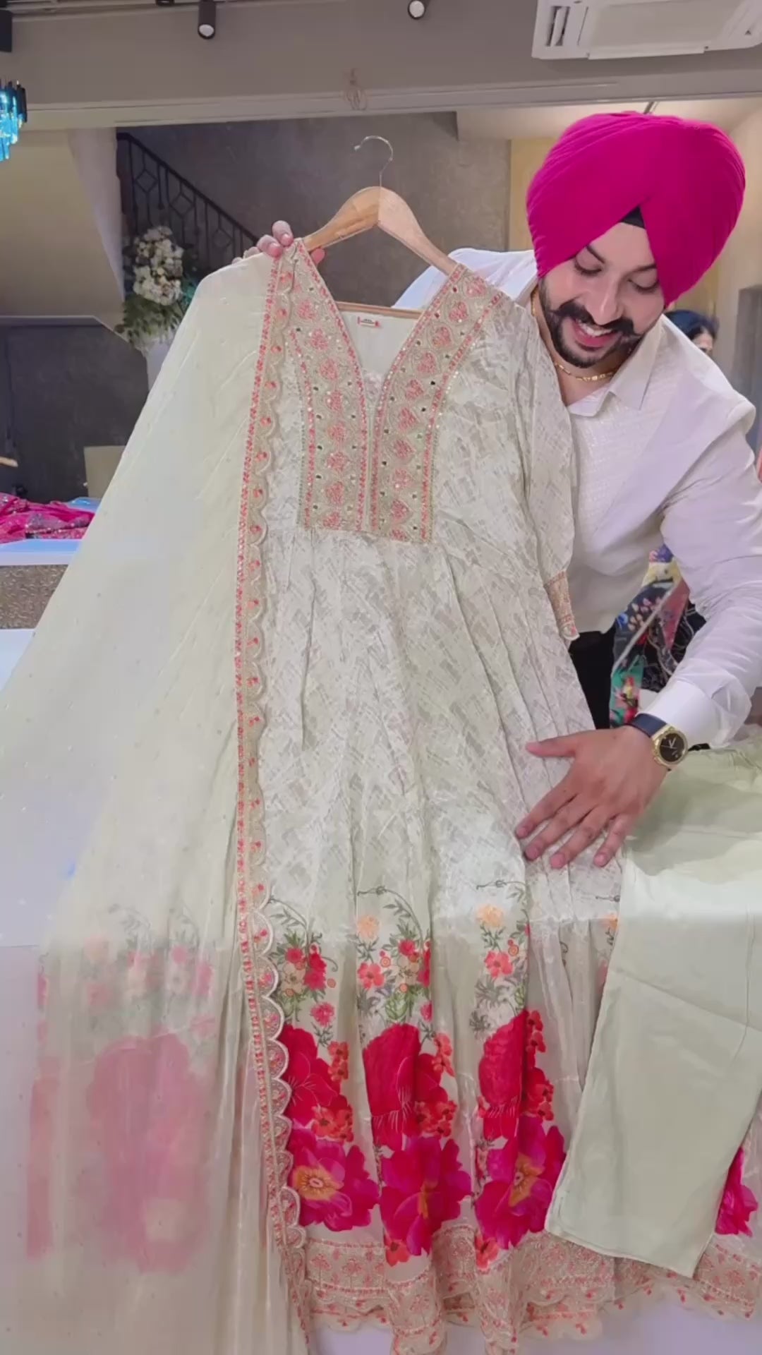 Light Pista Chinon Floral Print Full Flair embroidered Anarkali suit with beautiful Duppata