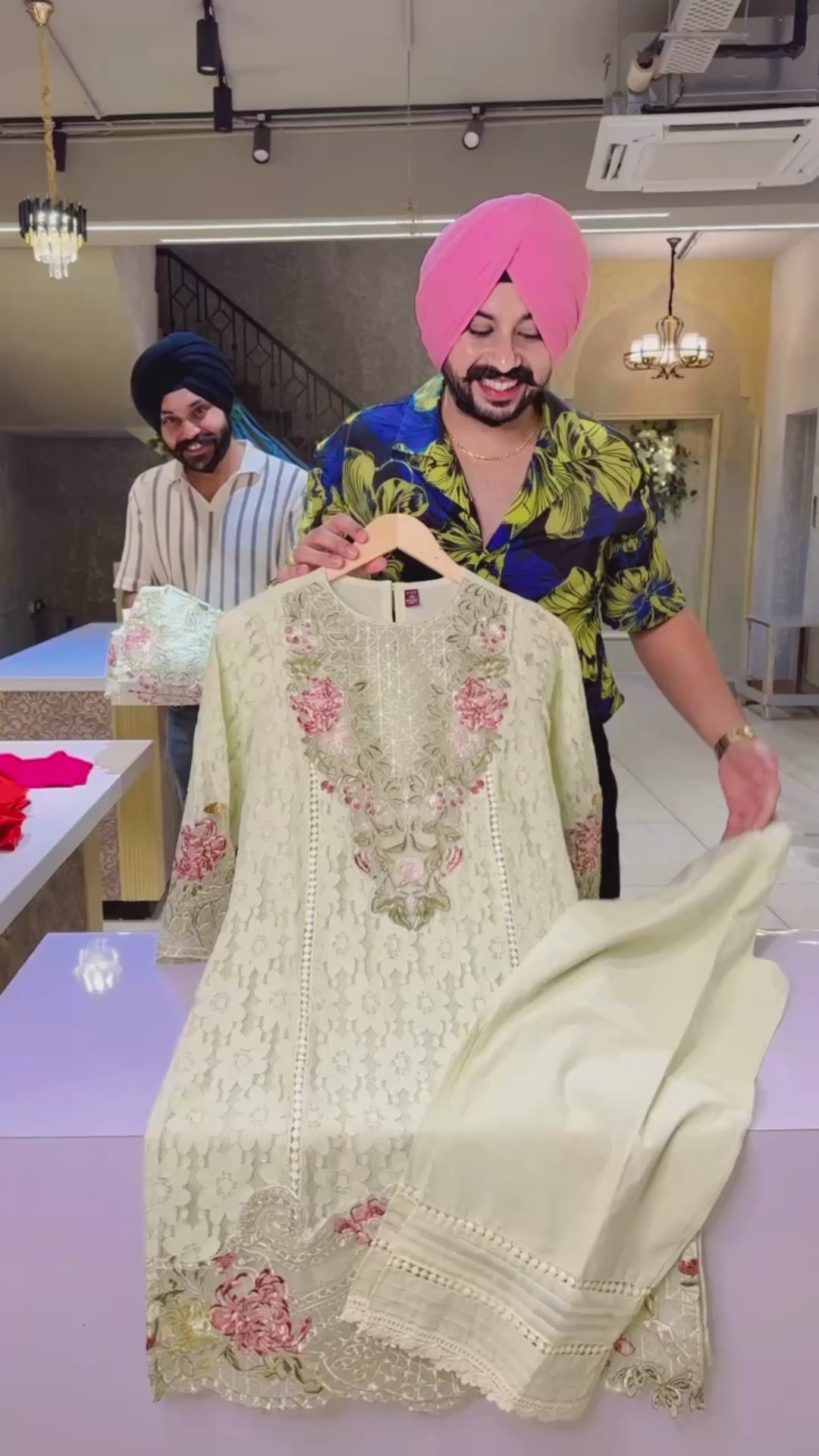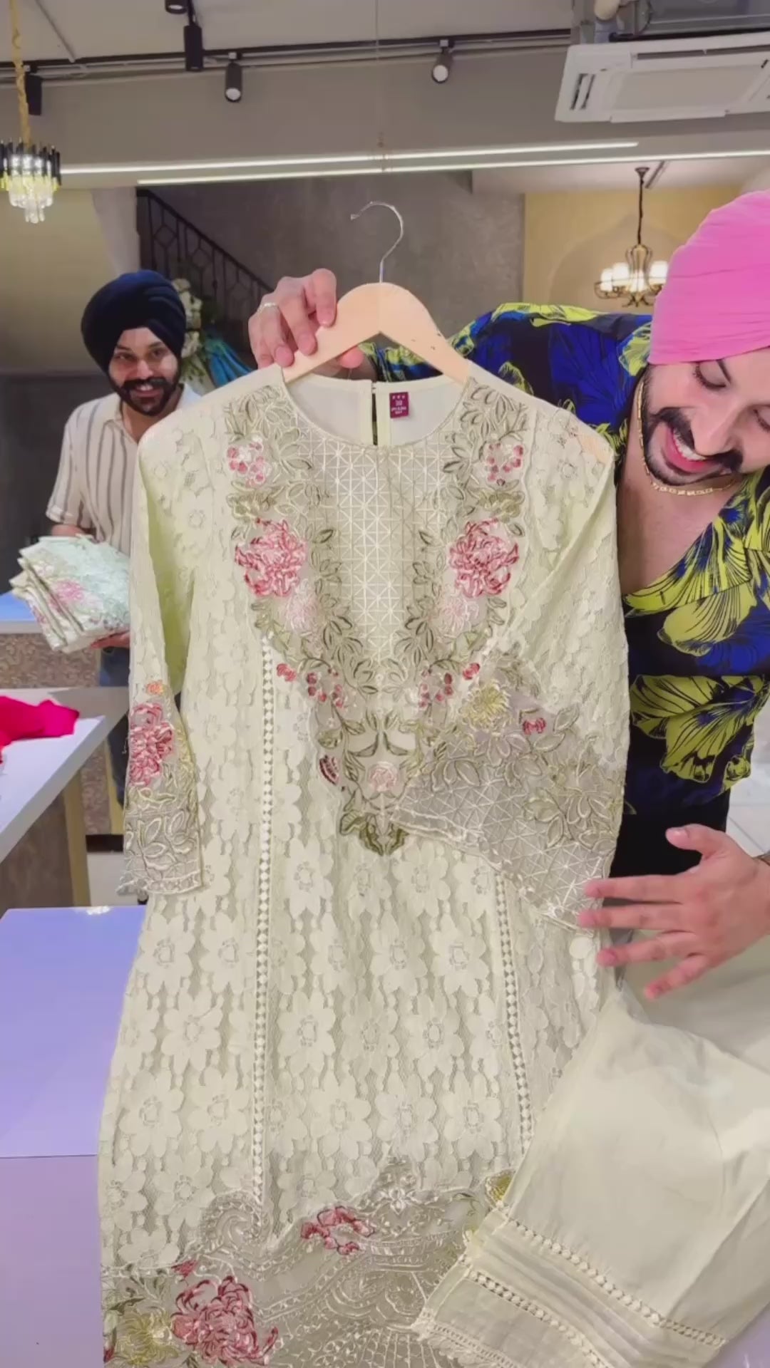 Light pista Pure cotton Crochet lace & embroidered Pakistani Coord set