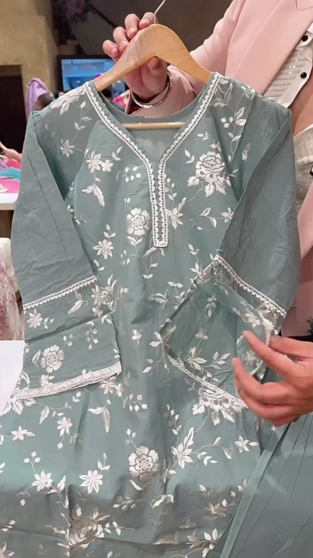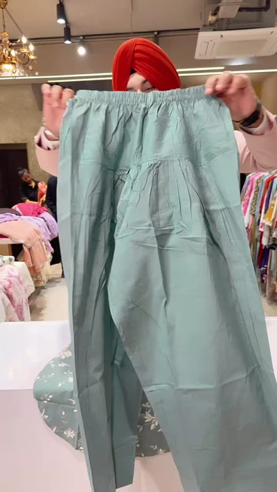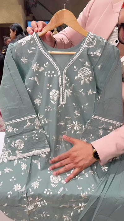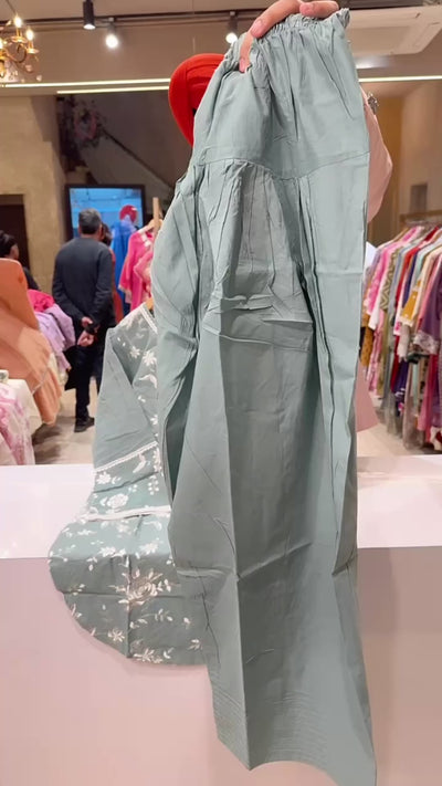Light Sea Green Pure Cotton Fully Embroidered Apple Cut Farshi Salwar Coord set