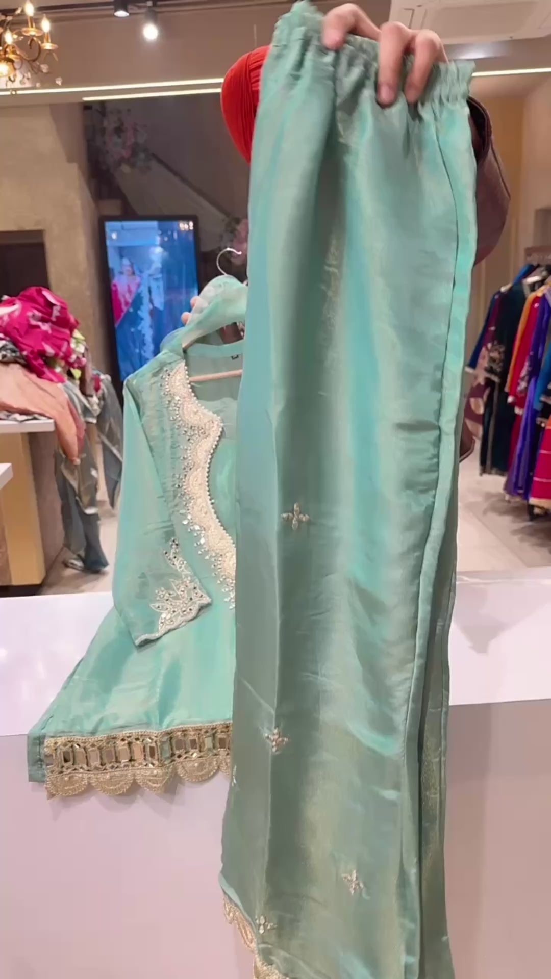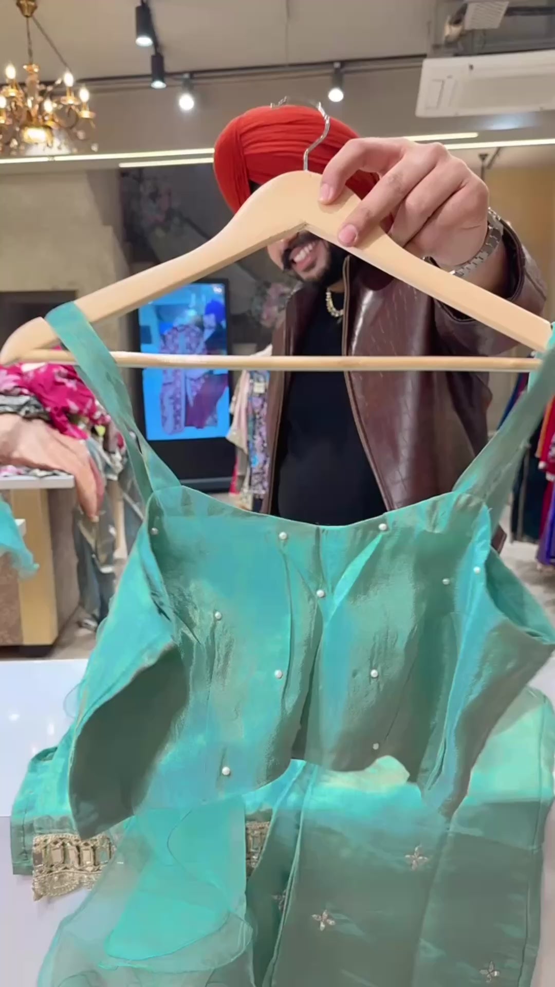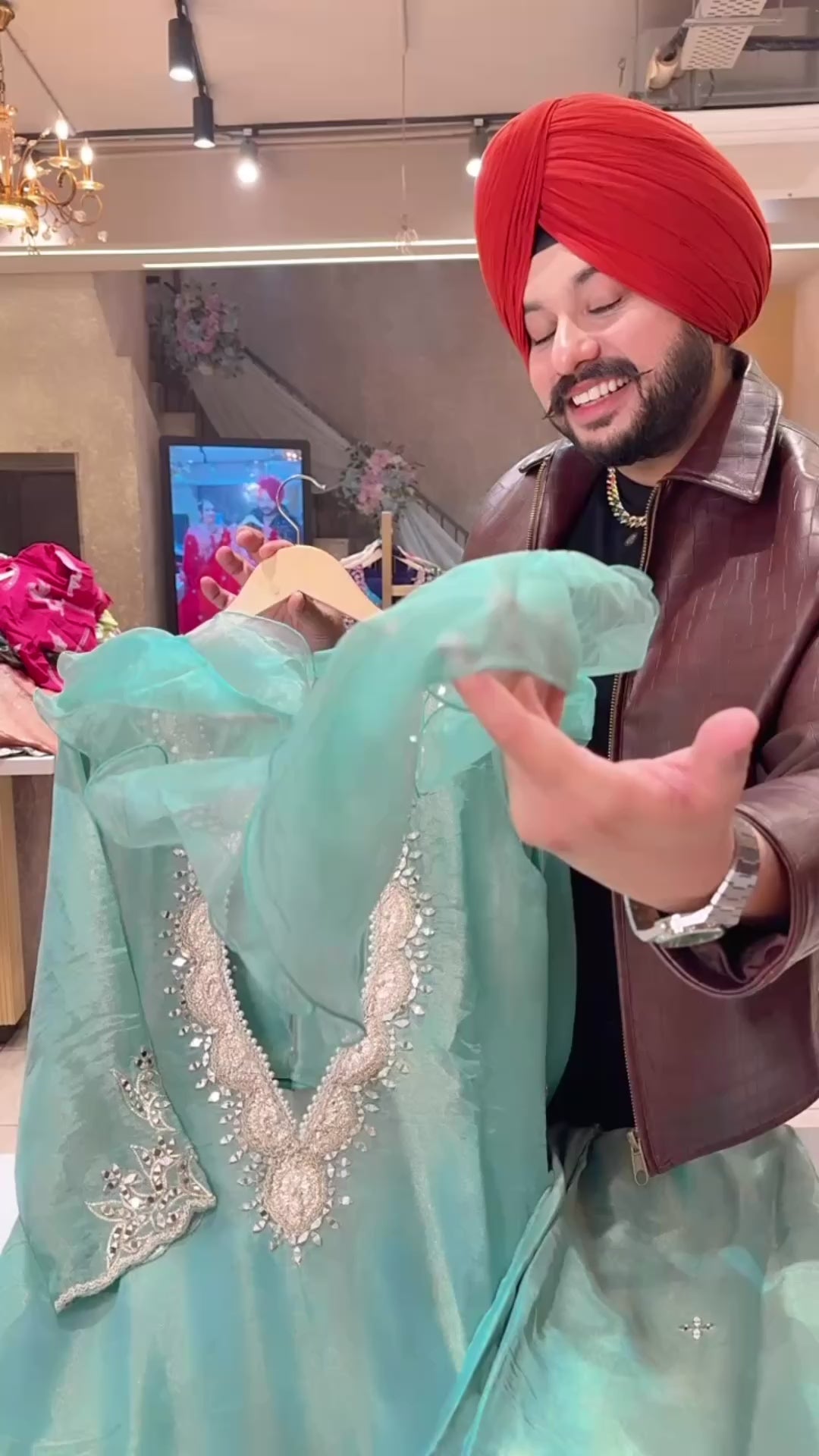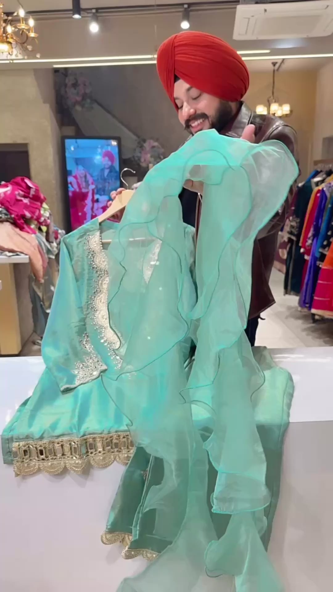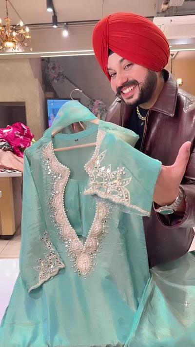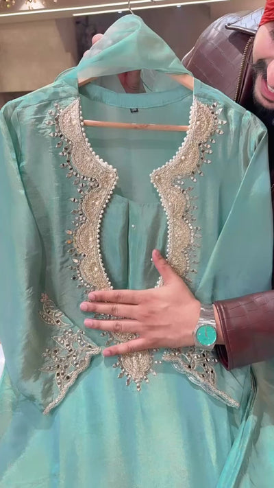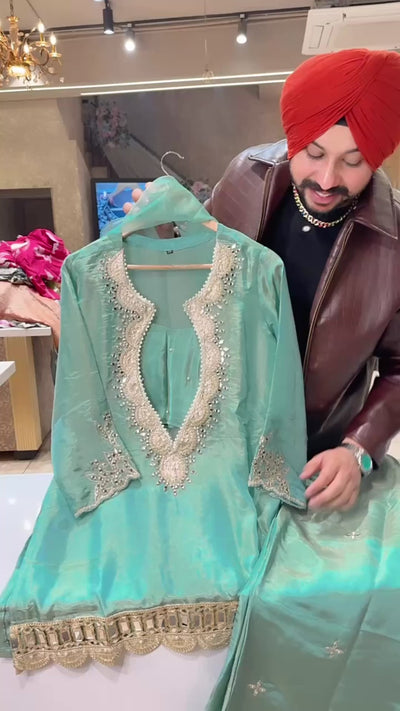 Light Sea Green Shimmer Silk Heavy Embroidered Indowestern Set with Stylish Bustier & Frill Duppata