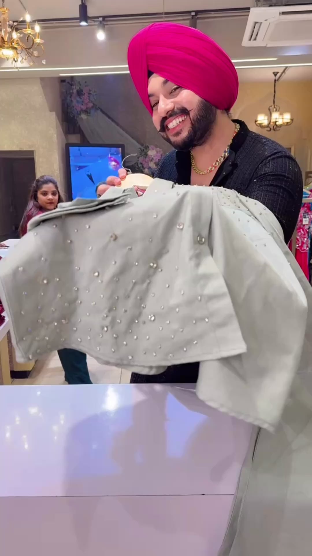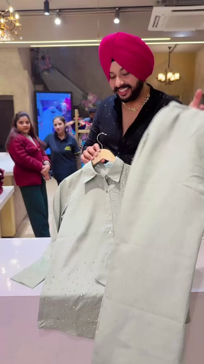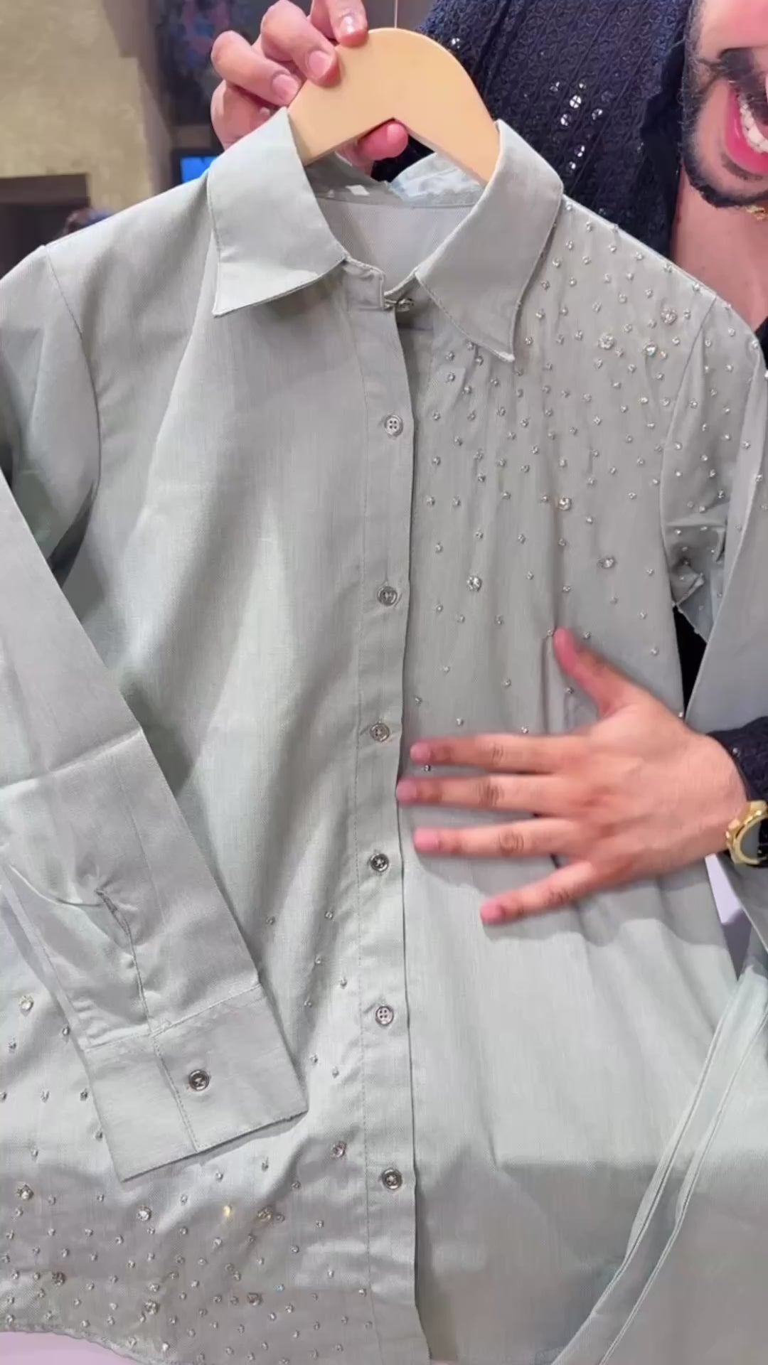 Light sea Green Soft denim Coord set with Beautiful Stone Work on it