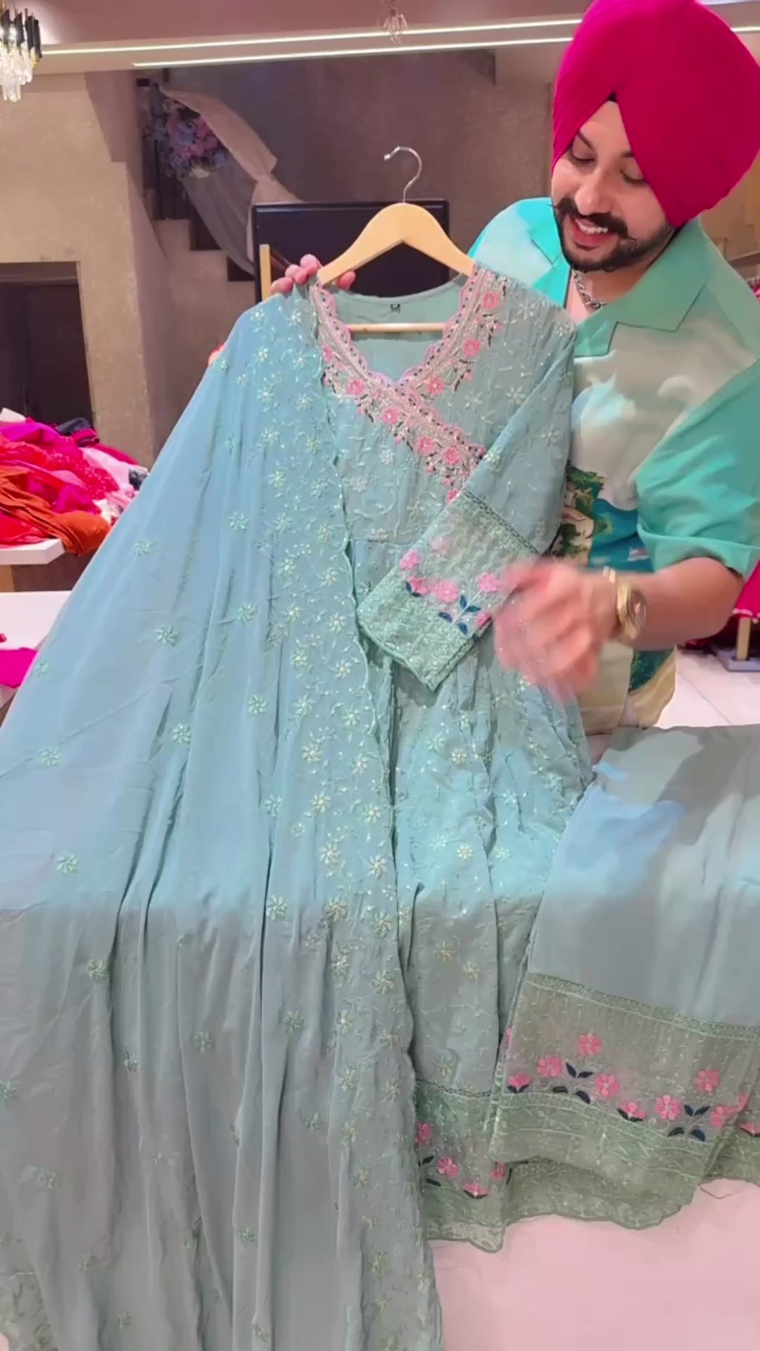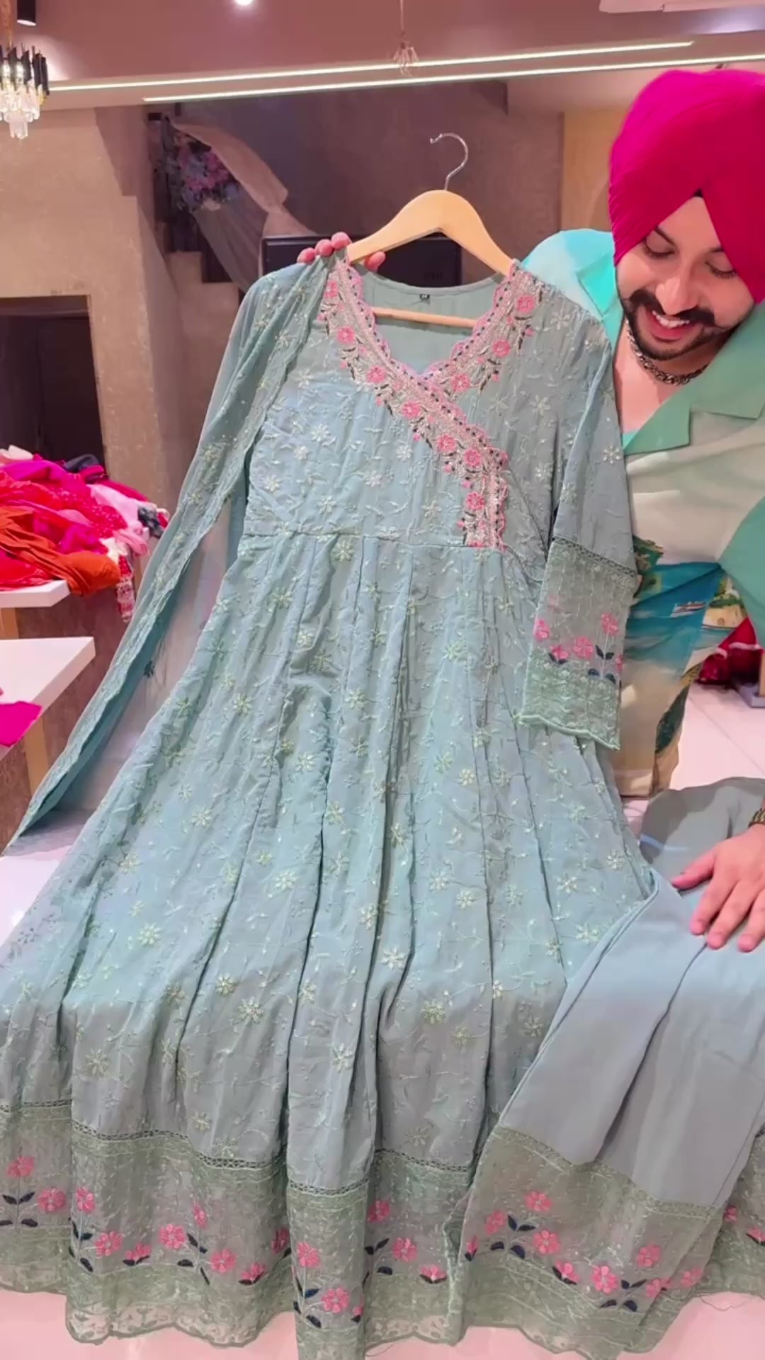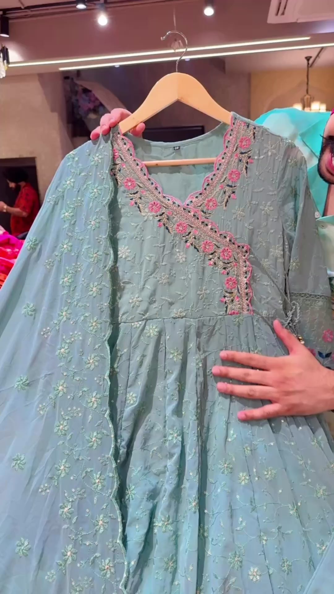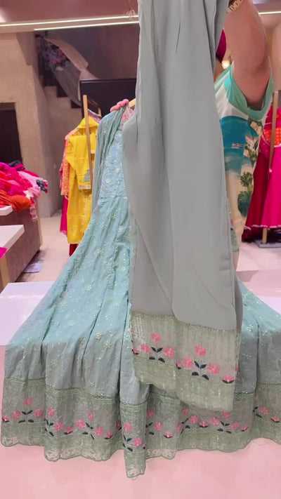 Light Seagreen Georgette Heavy embroidered Angrakha Full Flair Anarkali Suit with Embroidered Duppata