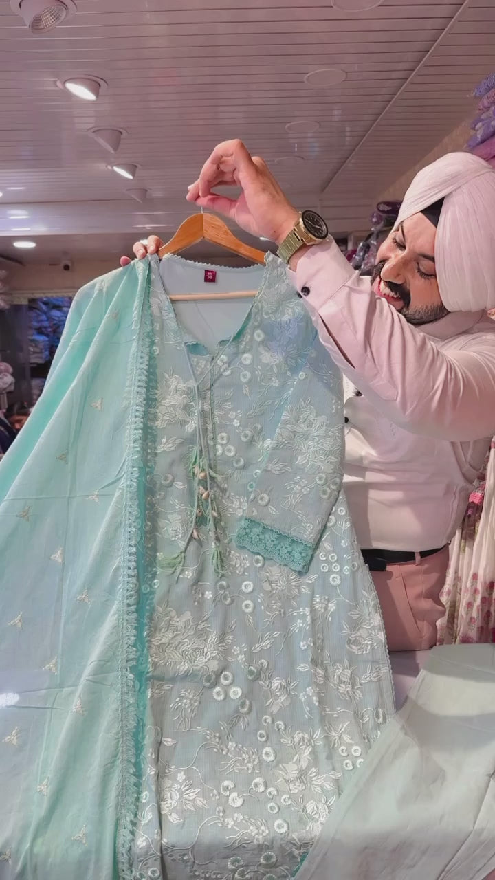 Light Seagreen Pure Cotton Fully embroidered Suit with Beautiful Duppata