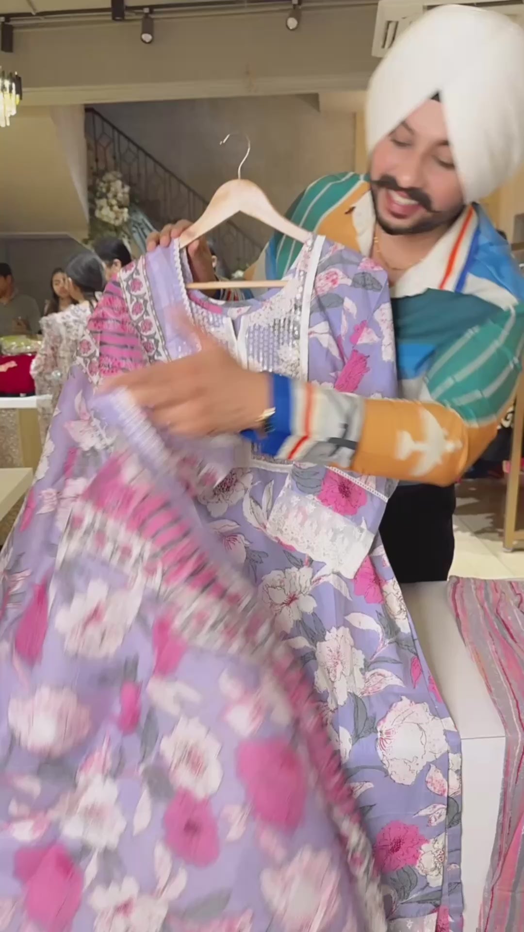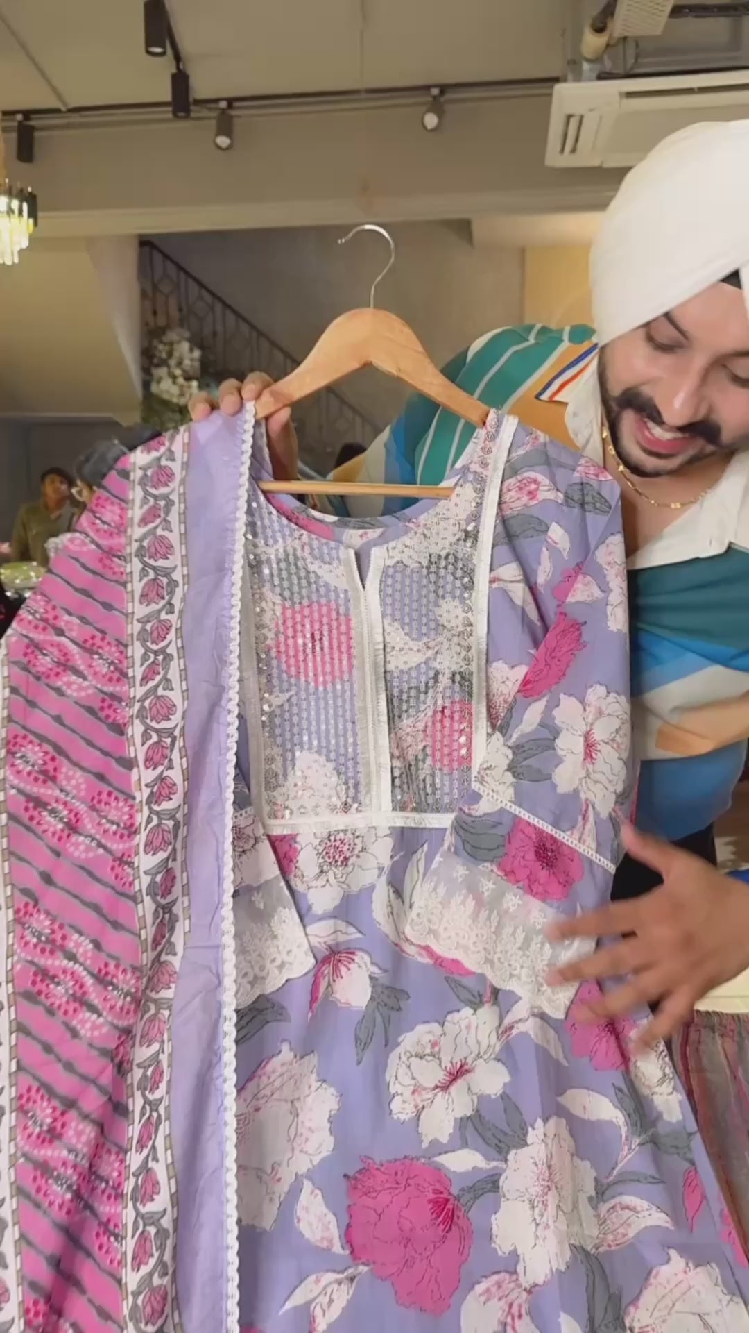 Lilac Pure Cotton office Wear Suit with Sequins Work on neck