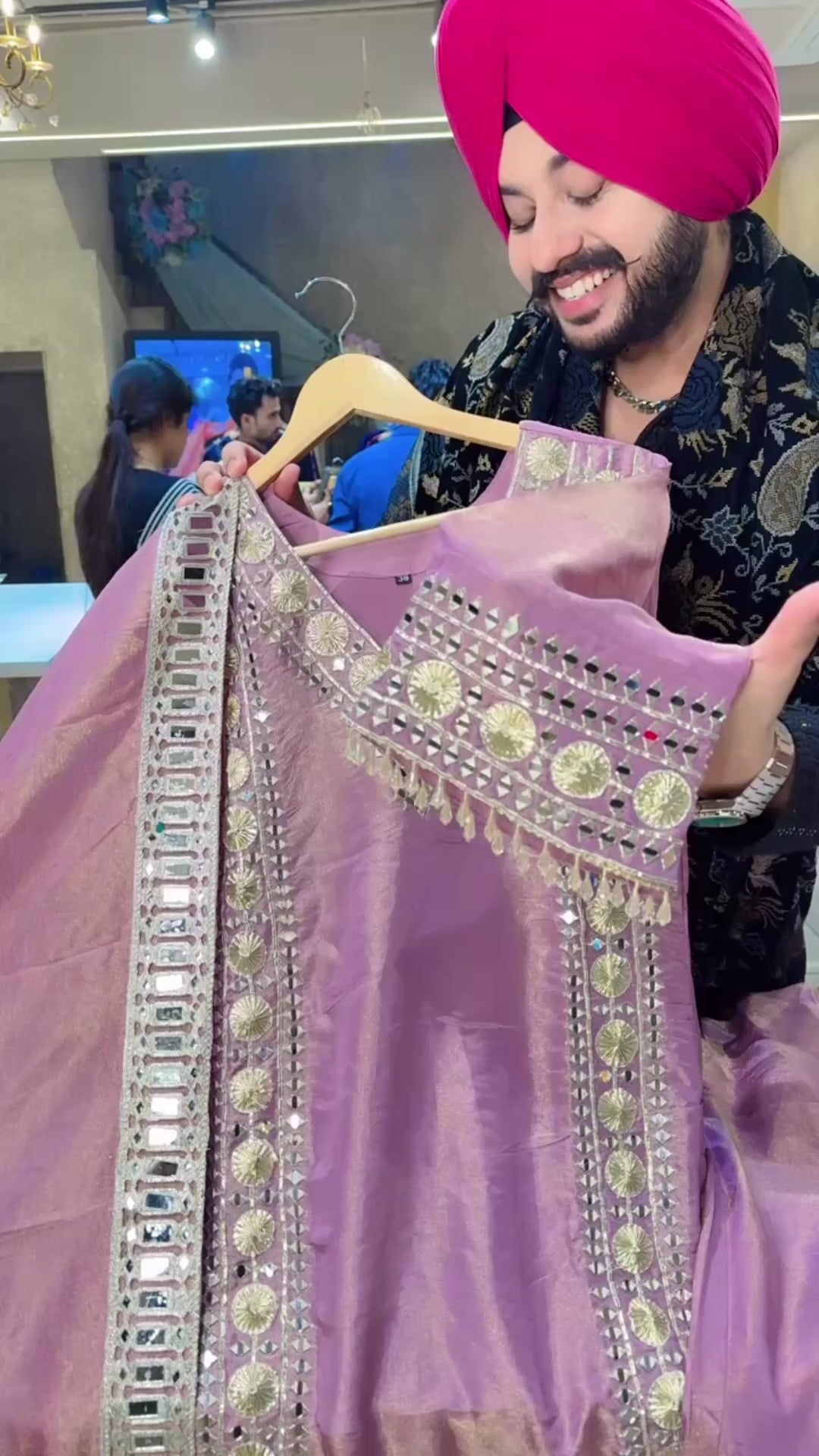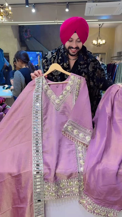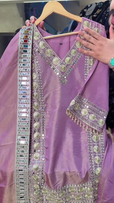 Lilac Shimmer Silk Heavy Gotta & Farshi Salwar Suit with Beautiful Mirror Work Duppata