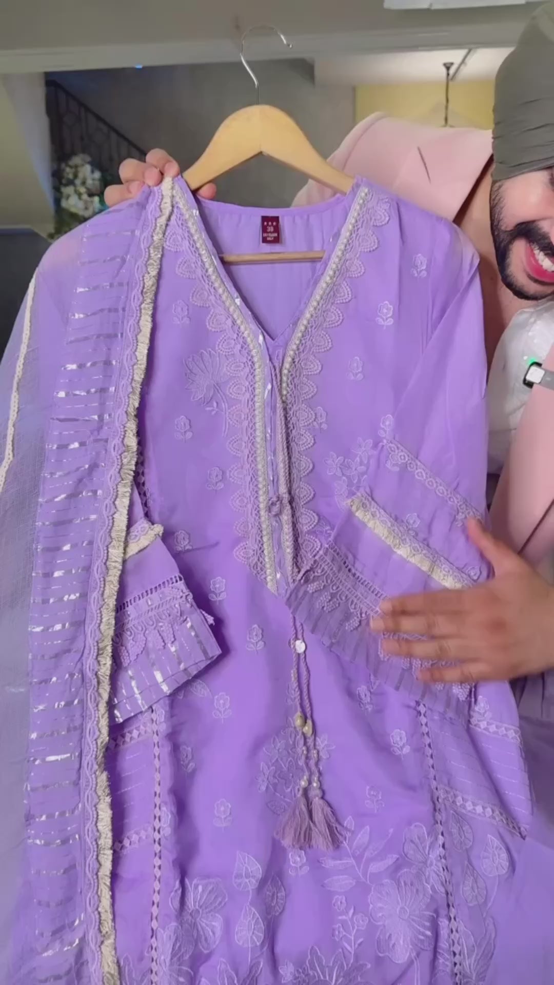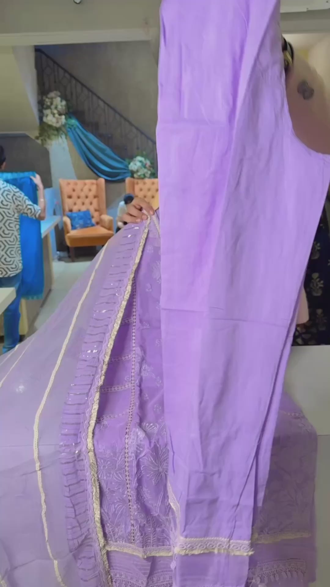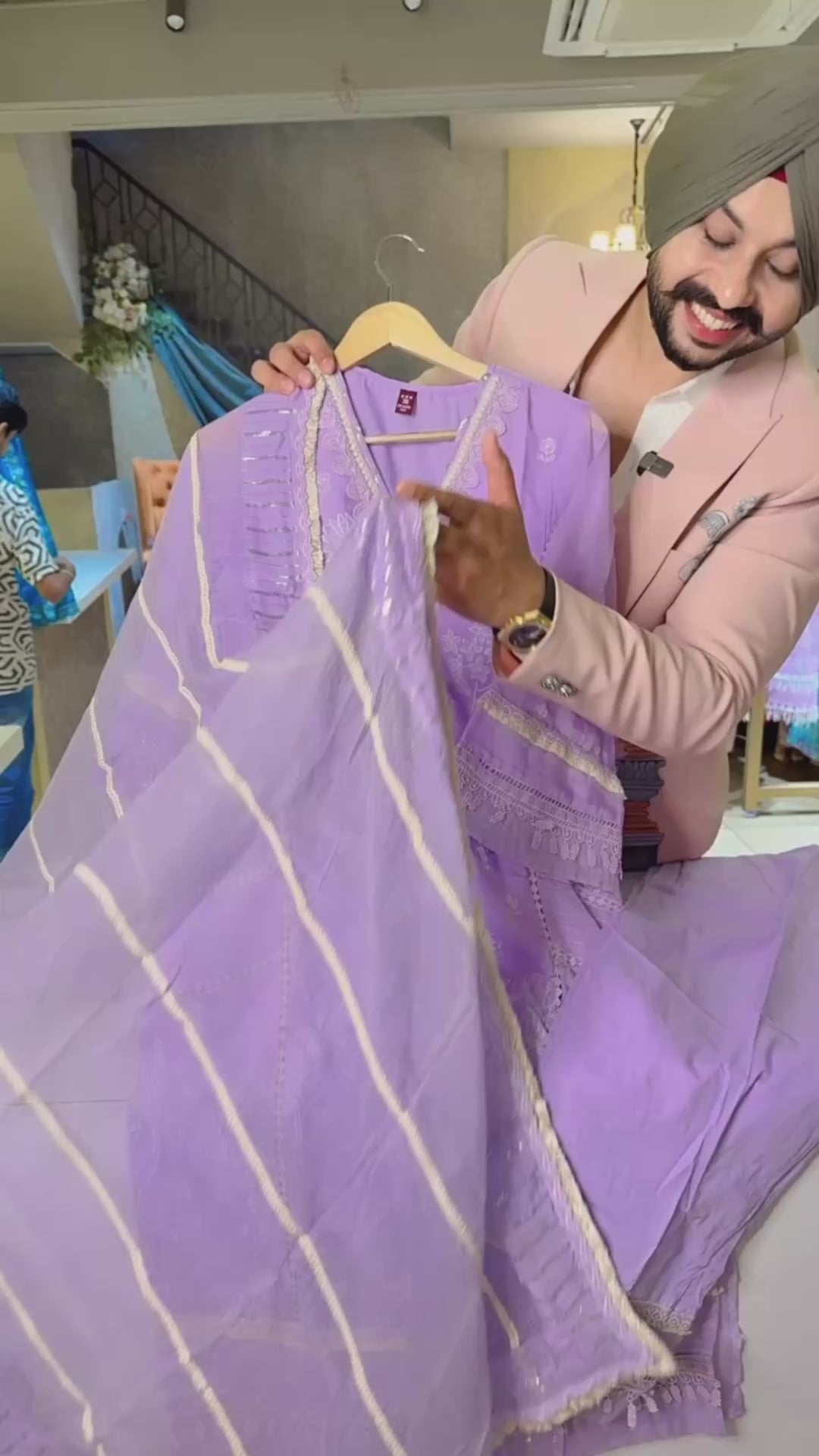 Purple Soft Organza Heavy self Embroidered Pakistani Suit with Kota doria Duppata