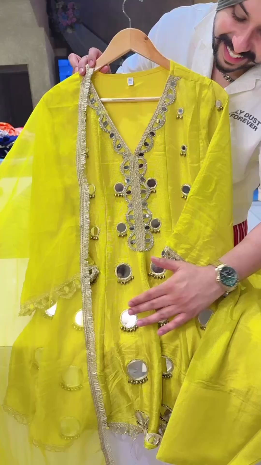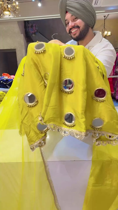 Lime Shimmer Silk Tissue Heavy Mirror work Paplum Farshi Salwar Suit