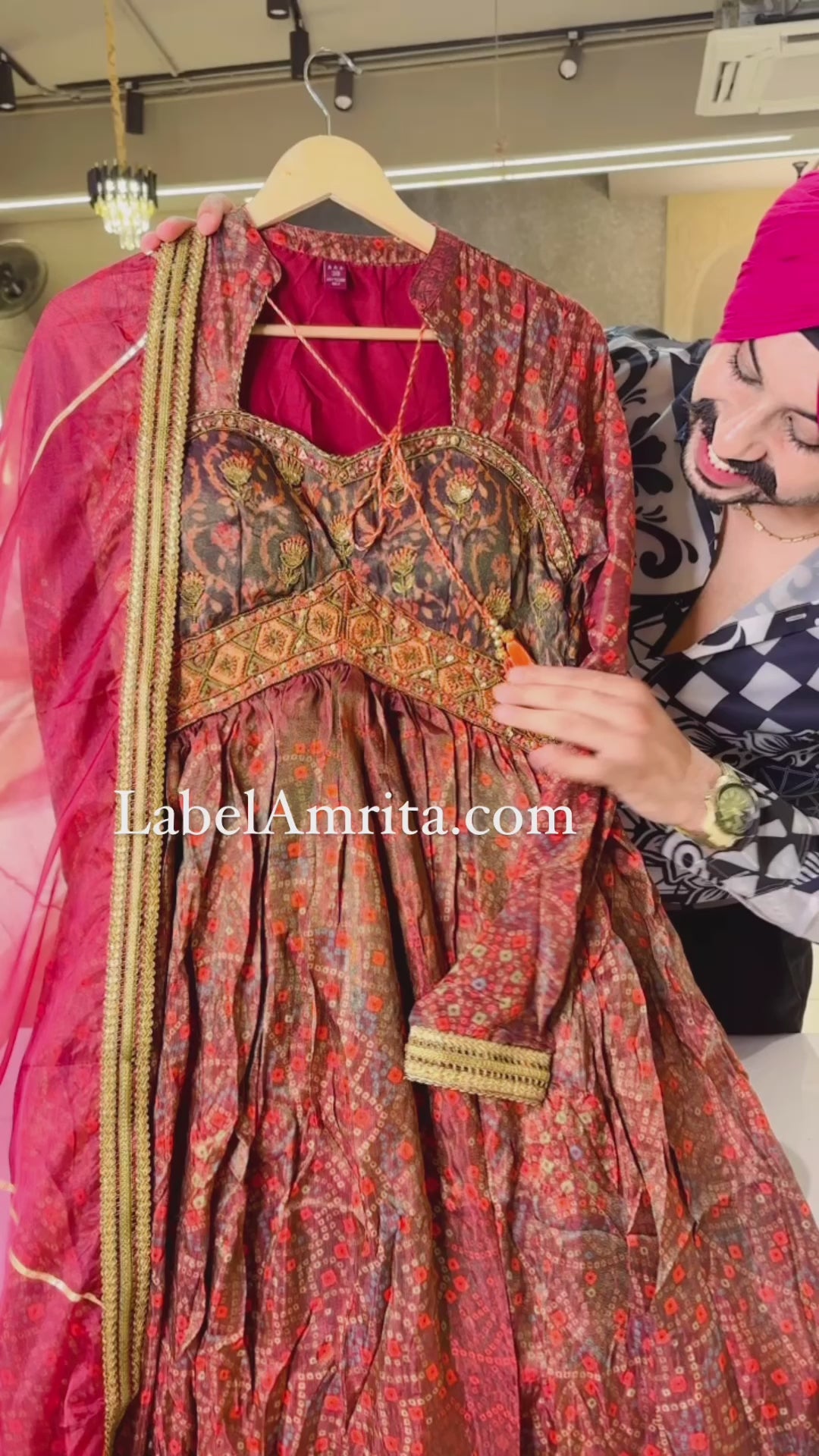 Maroon Dola Silk padded Hand embroidered Anarkali Gown with Organza Duppata