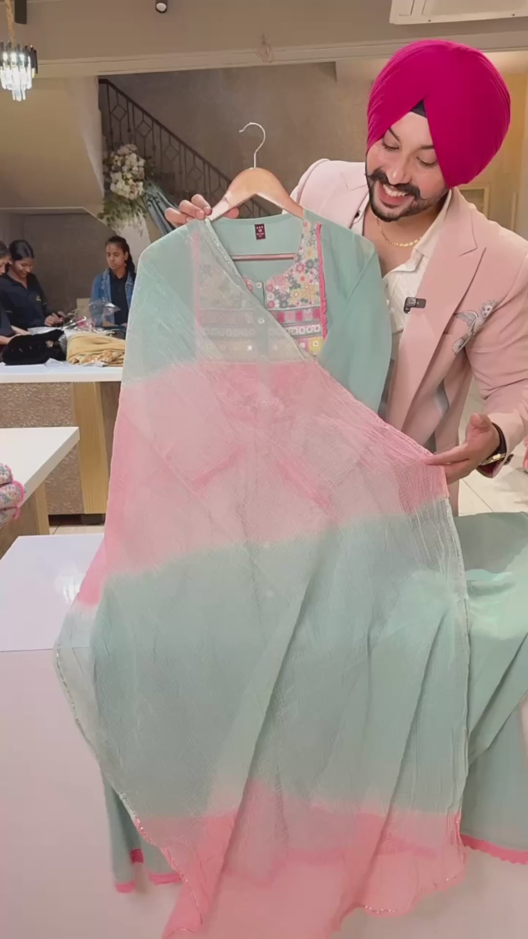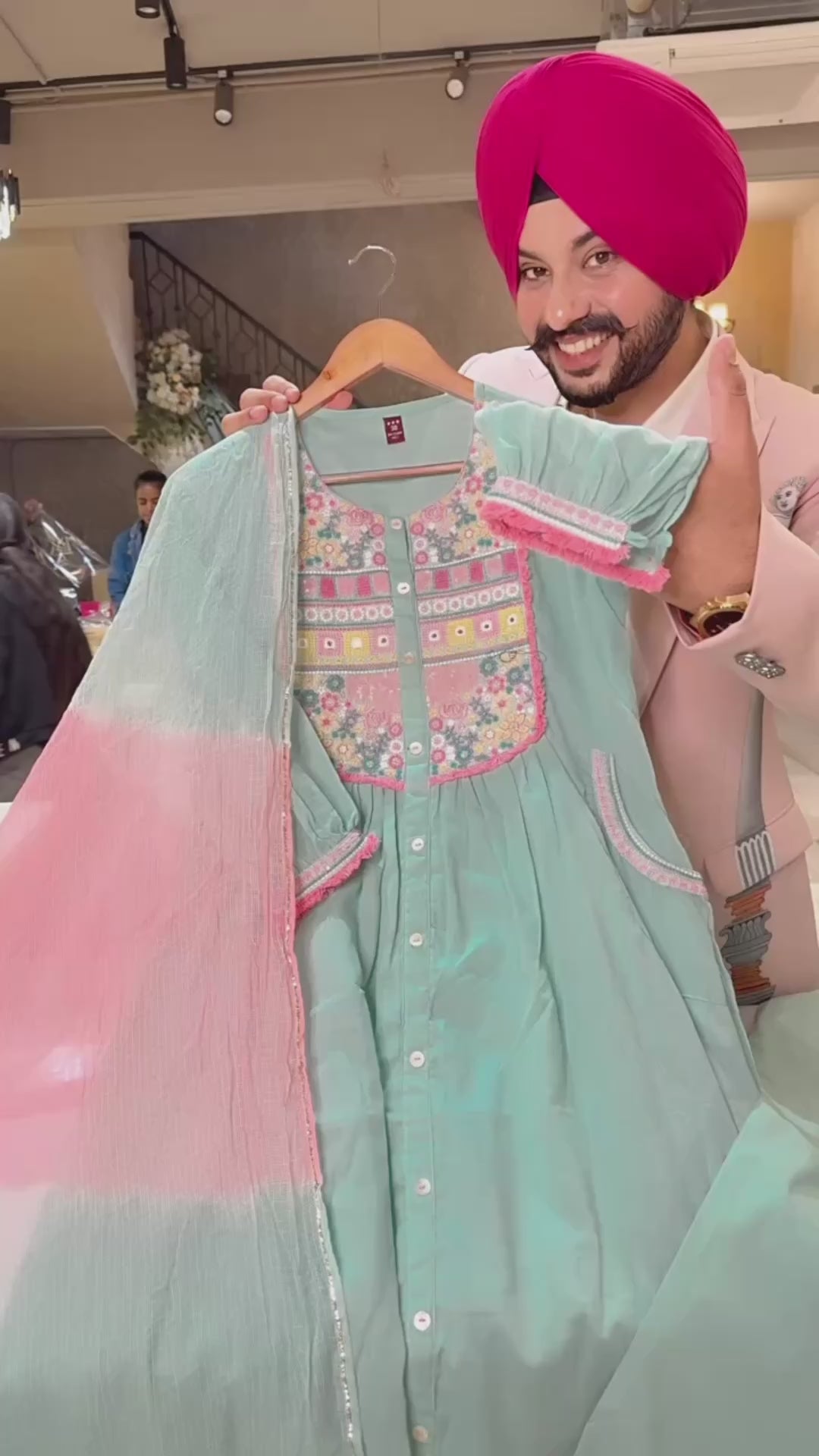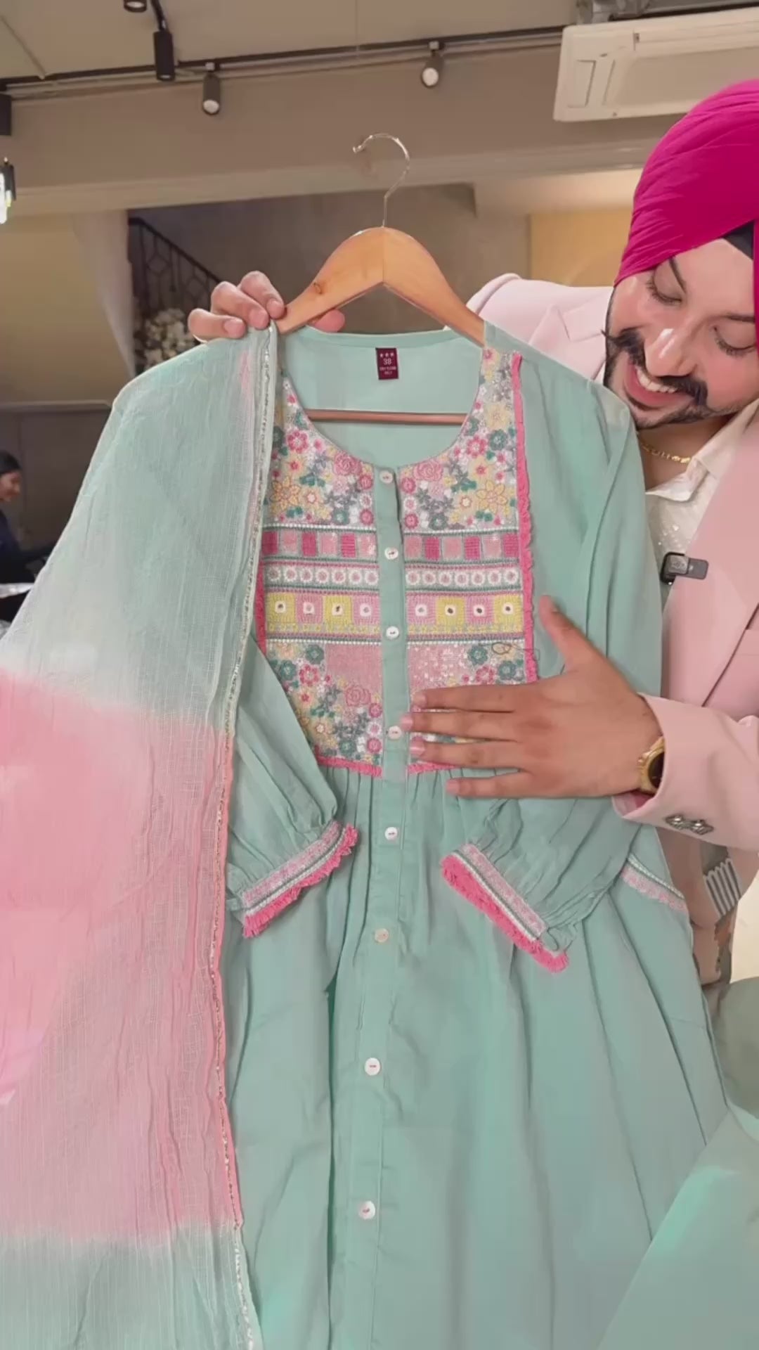 Sea Blue Mal Cotton A-line Indowestern Suit with Kota Doria Duppata