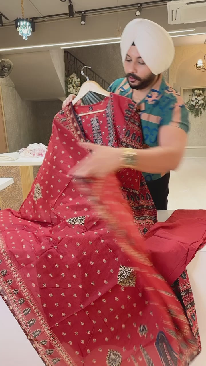 Rust Pure Cotton office wear A-line Suit with Beautiful Duppata