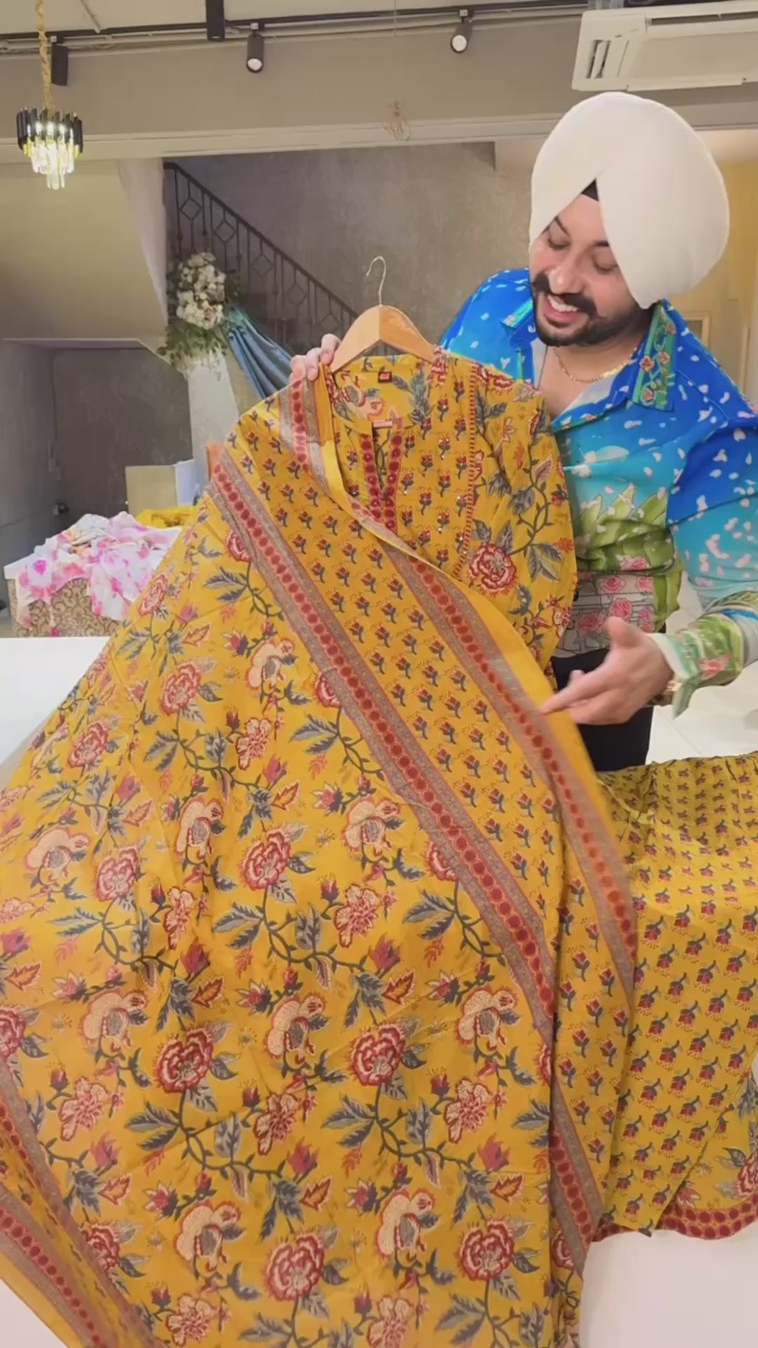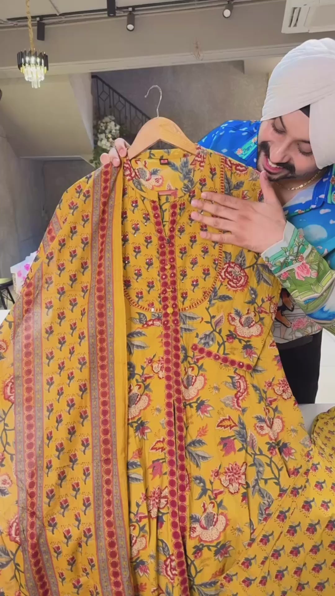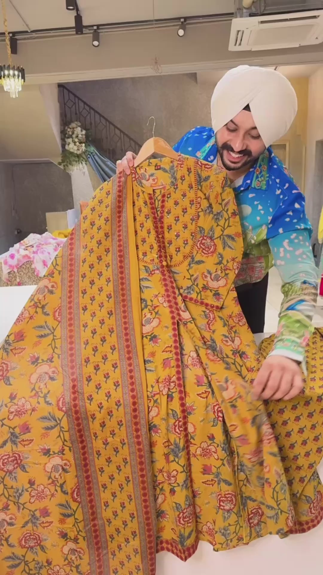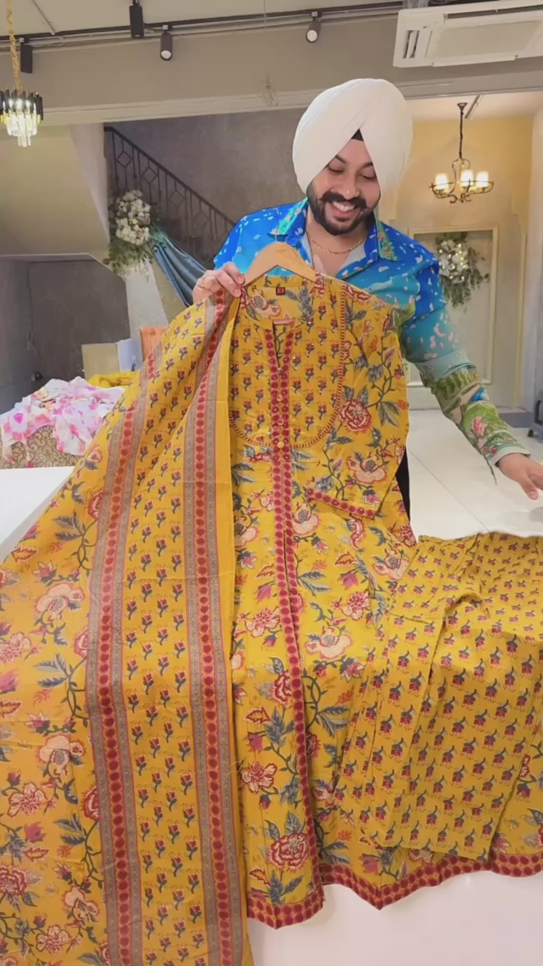 Mustard Yellow Pure Cotton Front Slit A-line Suit with Beautiful Duppata
