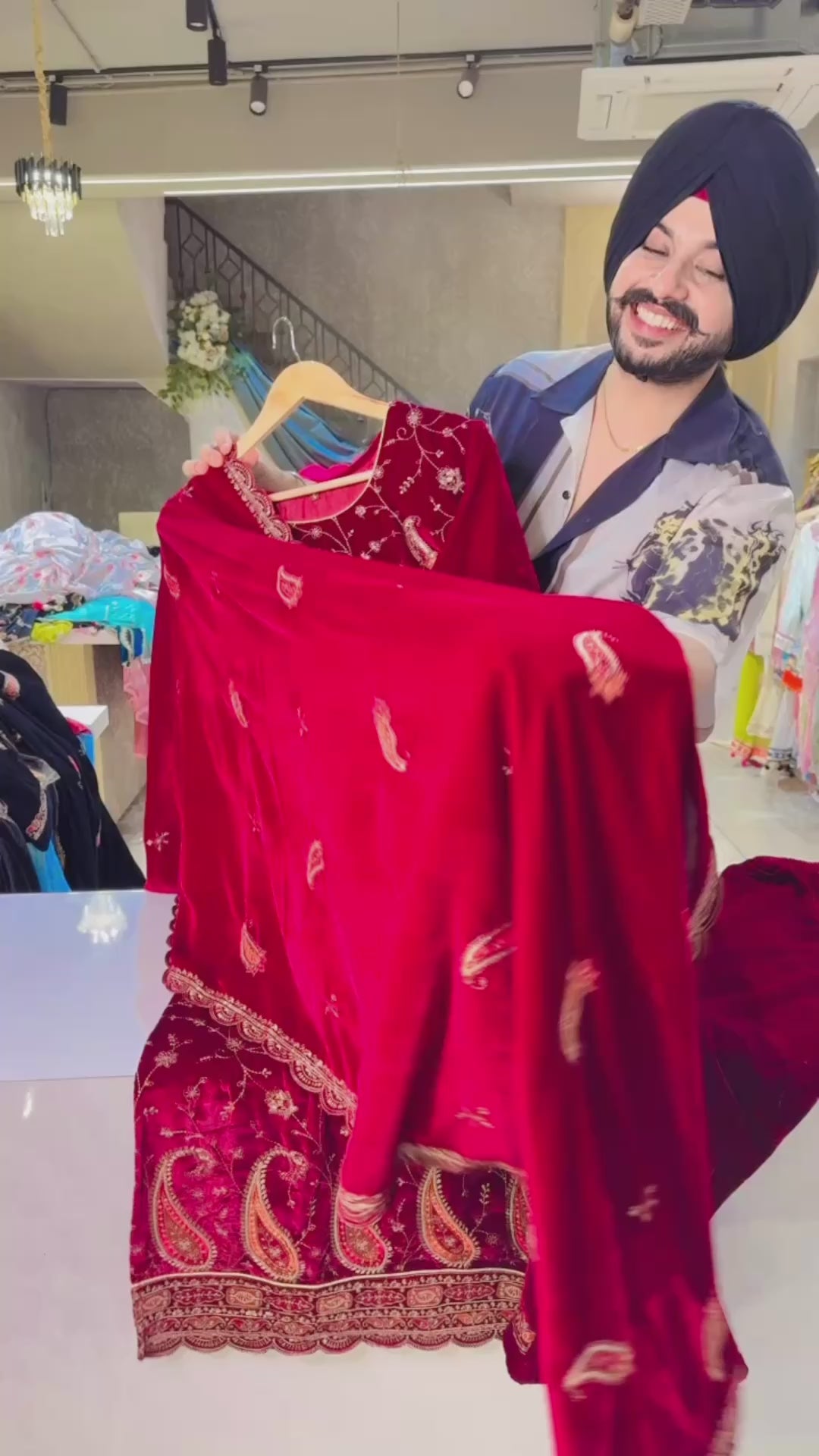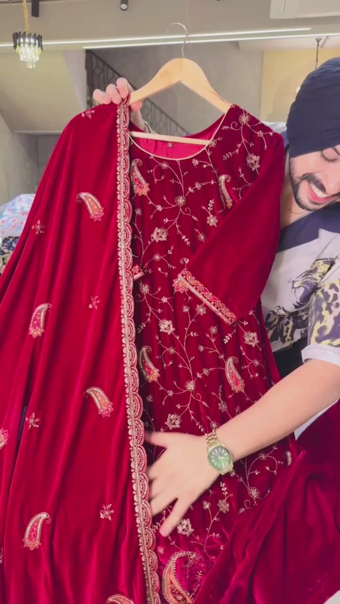 Reddish maroon Velvet Fully embroidered Straight Suit with Embroidered Duppata