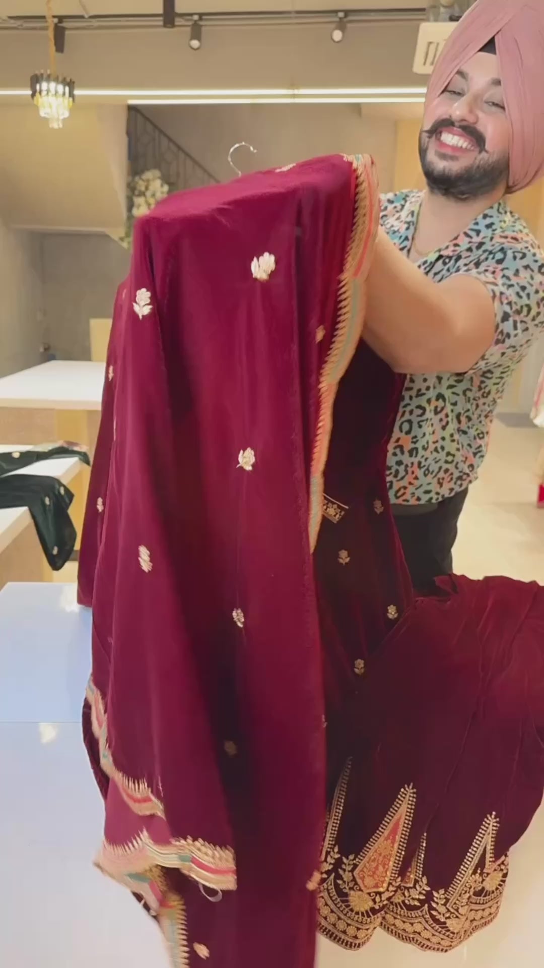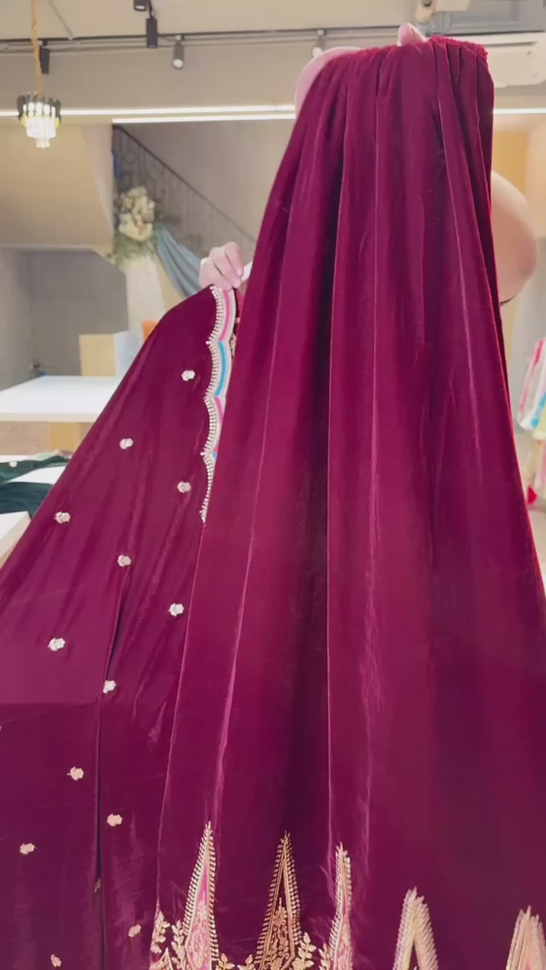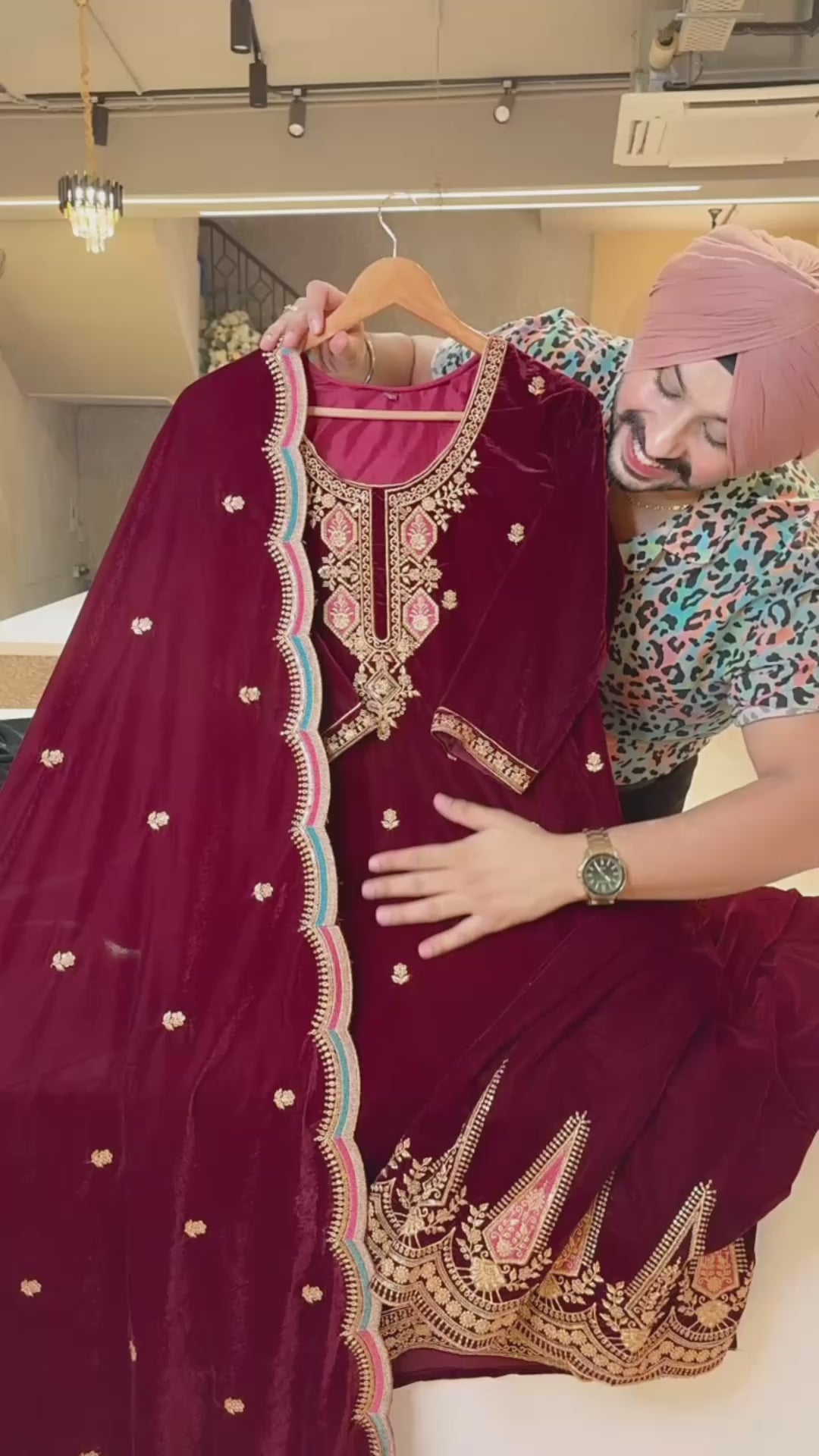 Maroon Heavy Velvet Fully EmbroideredFull Flair Azaaro suit