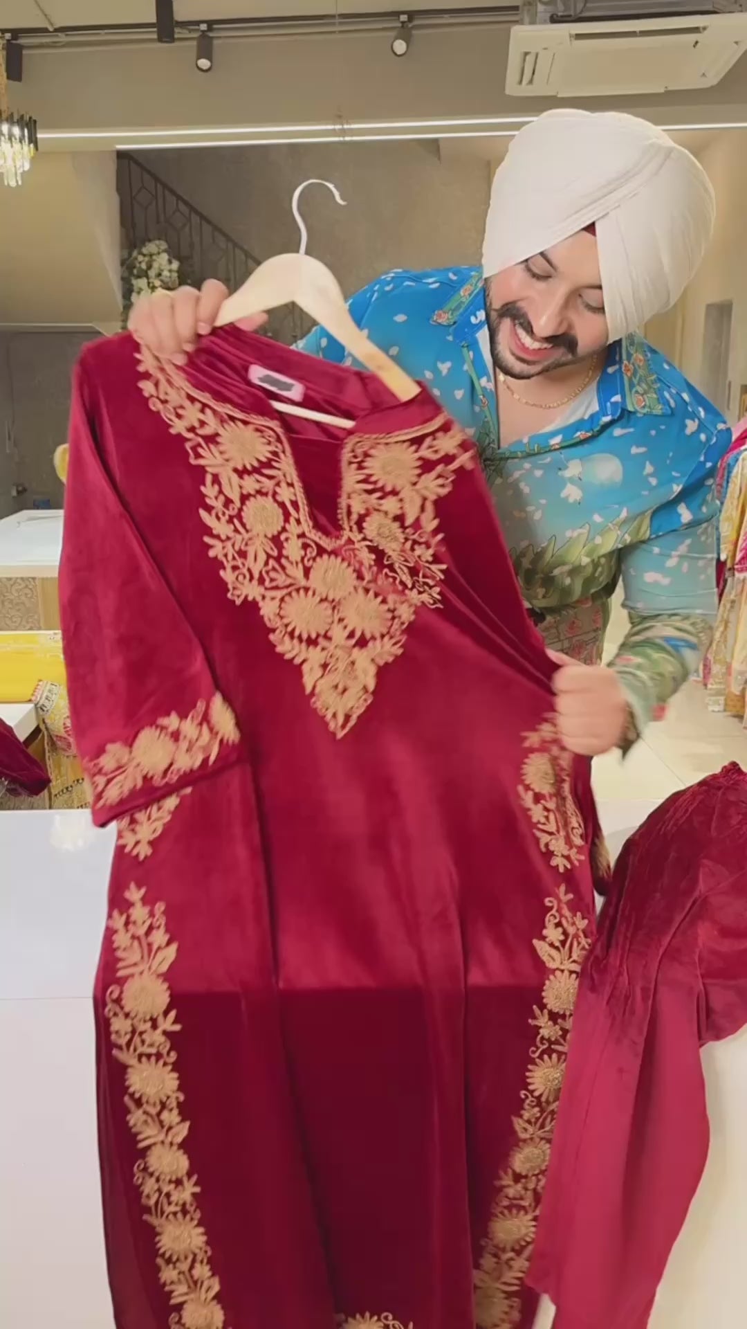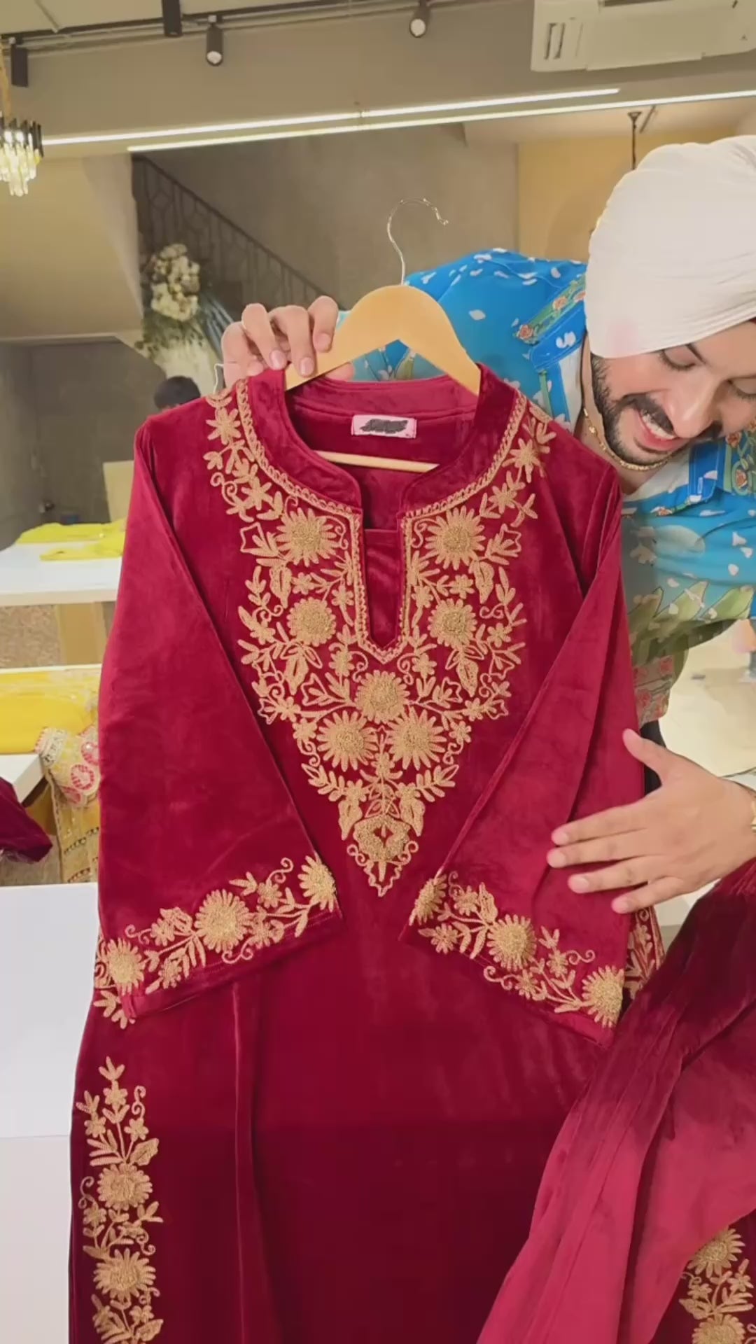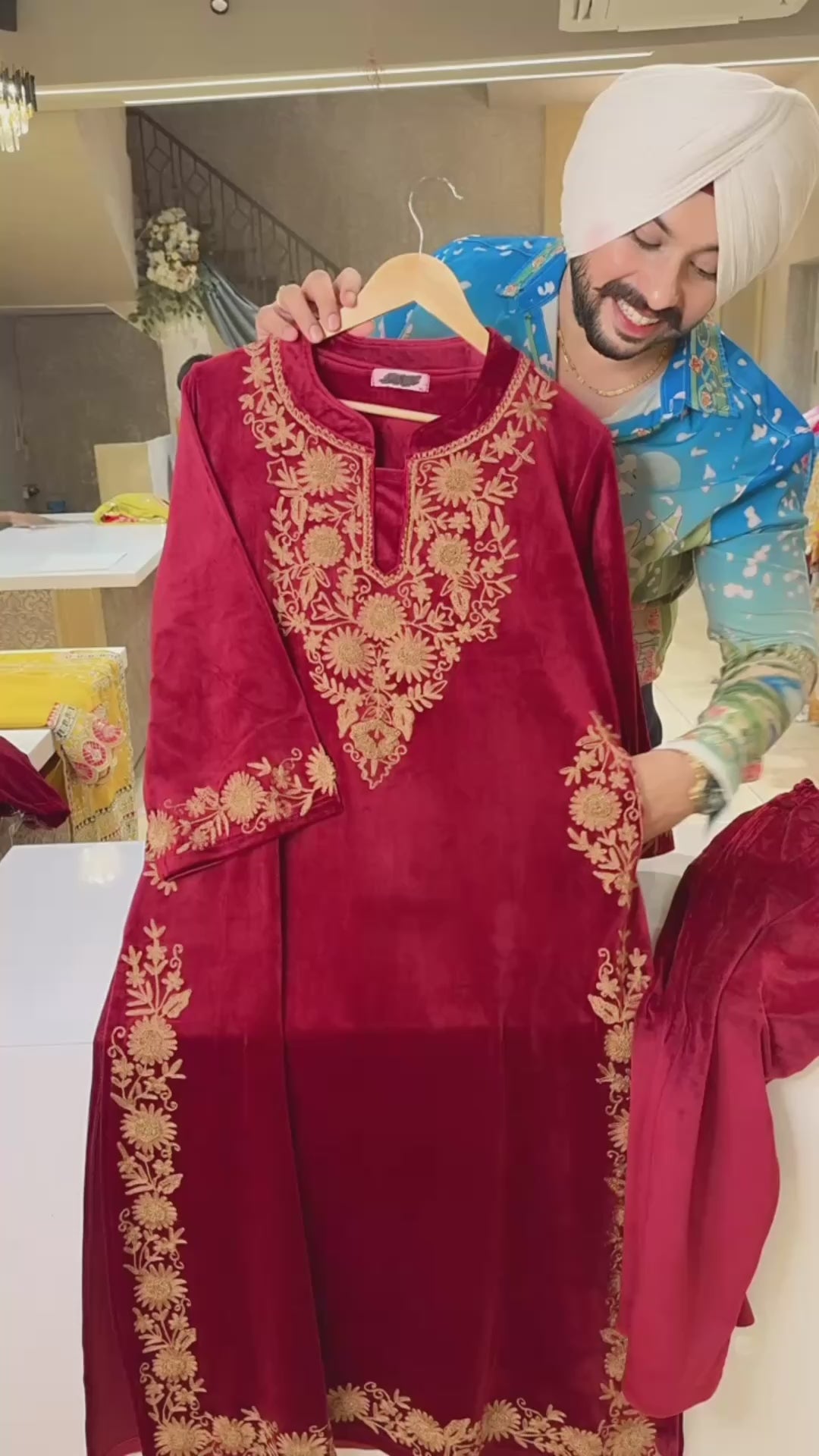 Reddish maroon Heavy Stretchable Stretchable Velvet Kashmiri Phiran Coord set