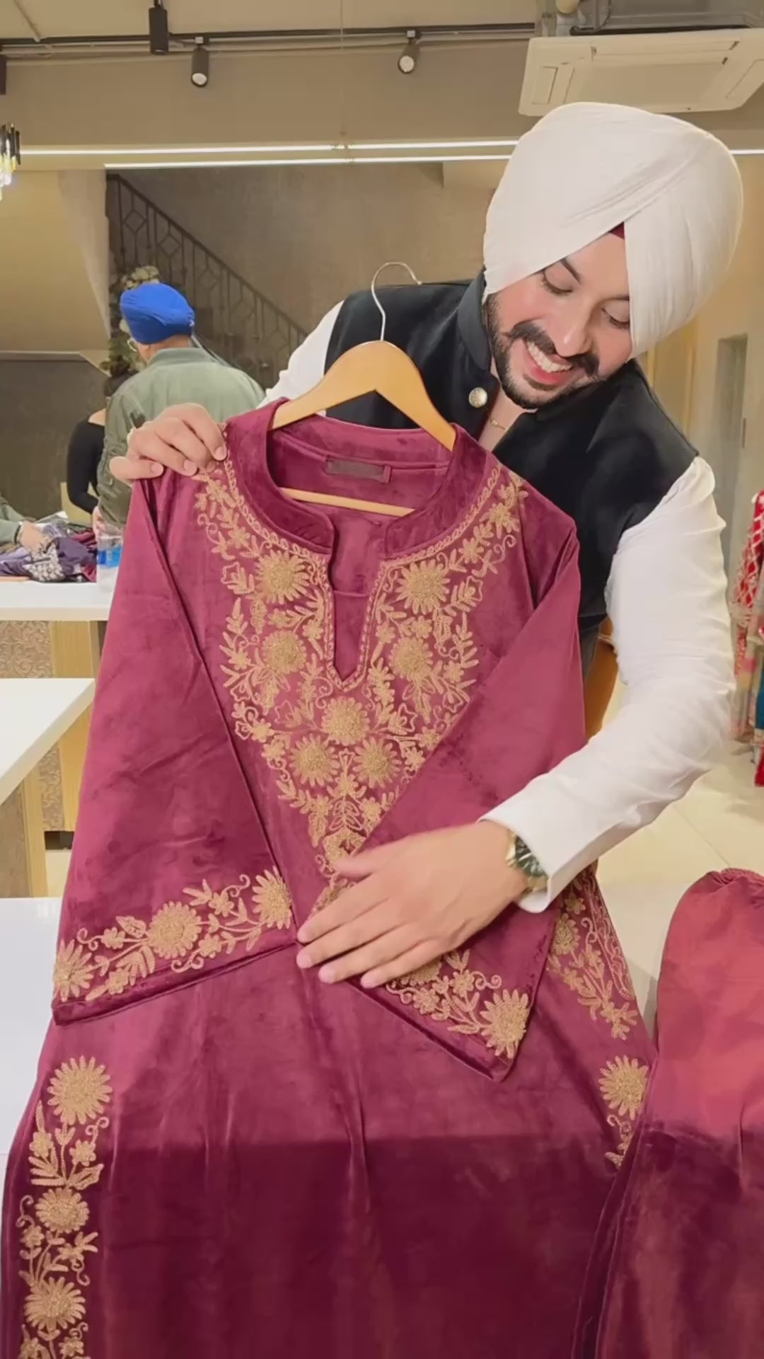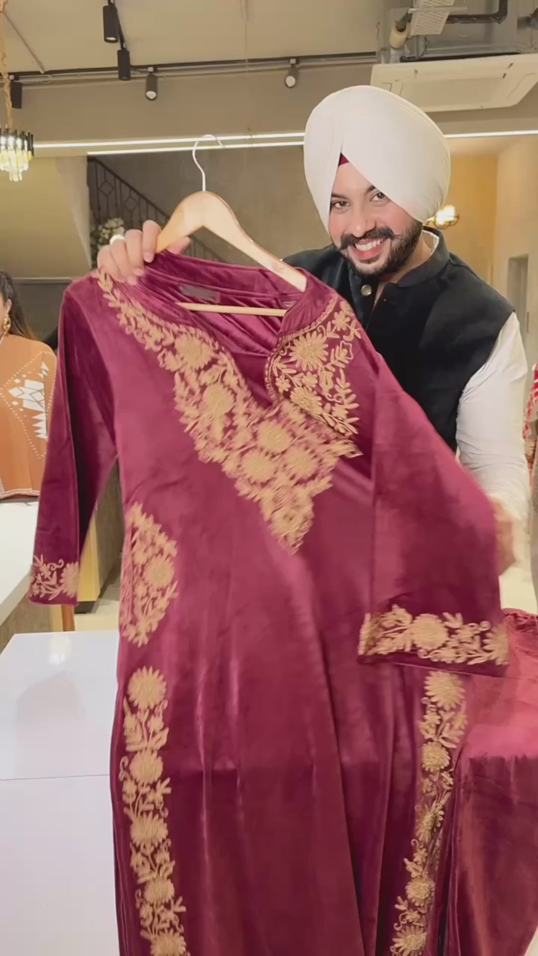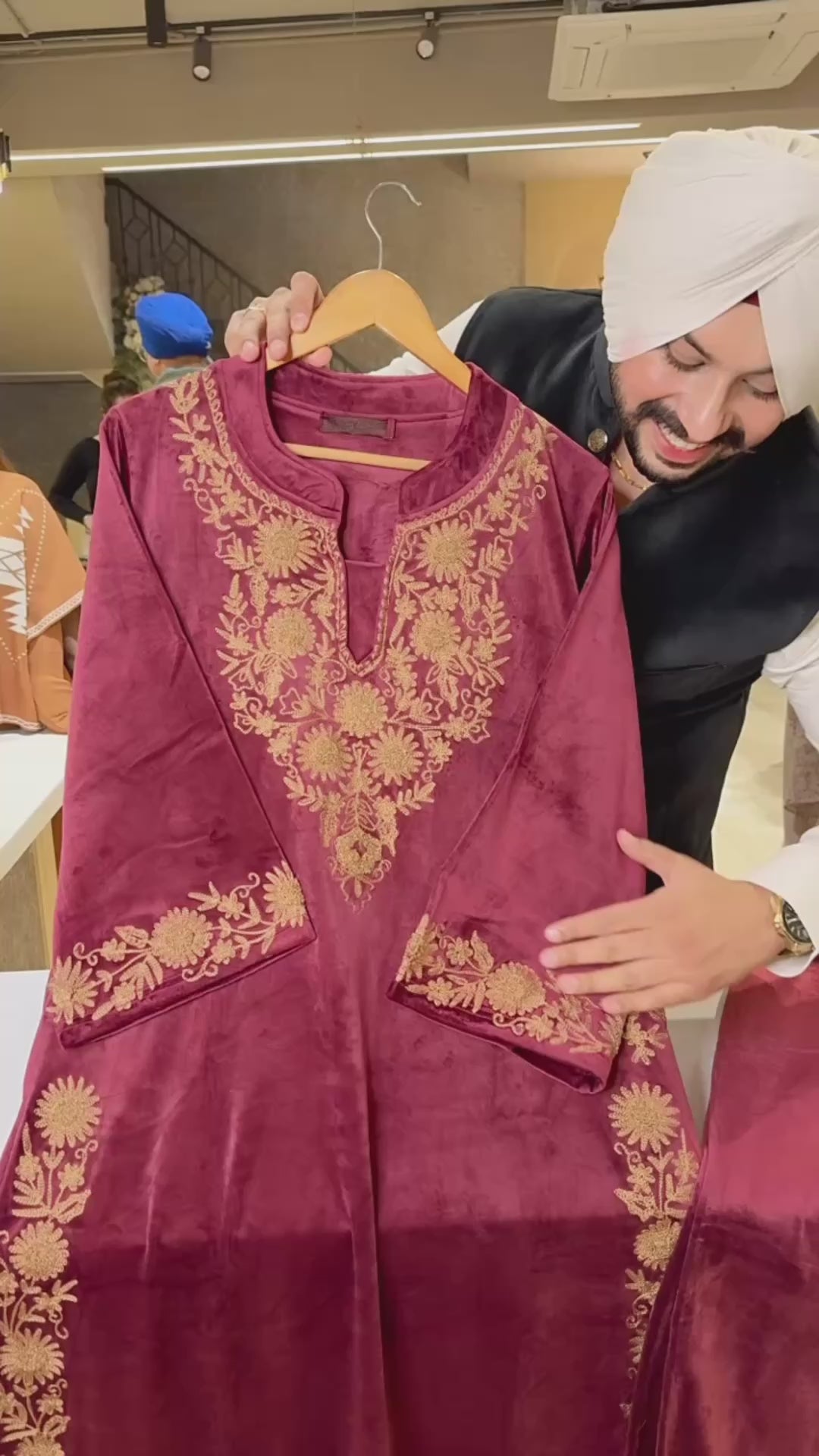 Maroon Heavy Strechable Velvet Embroidered Kashmiri Phiran Coord set