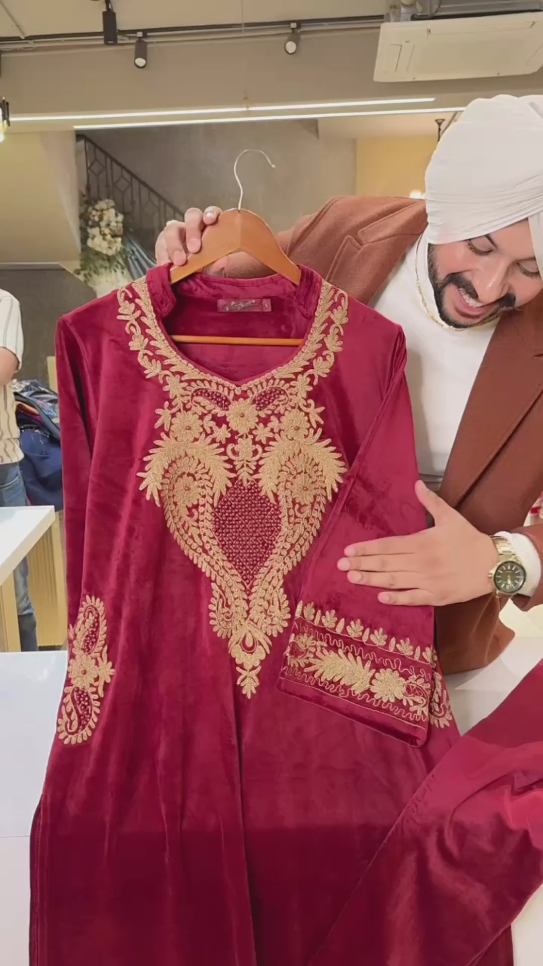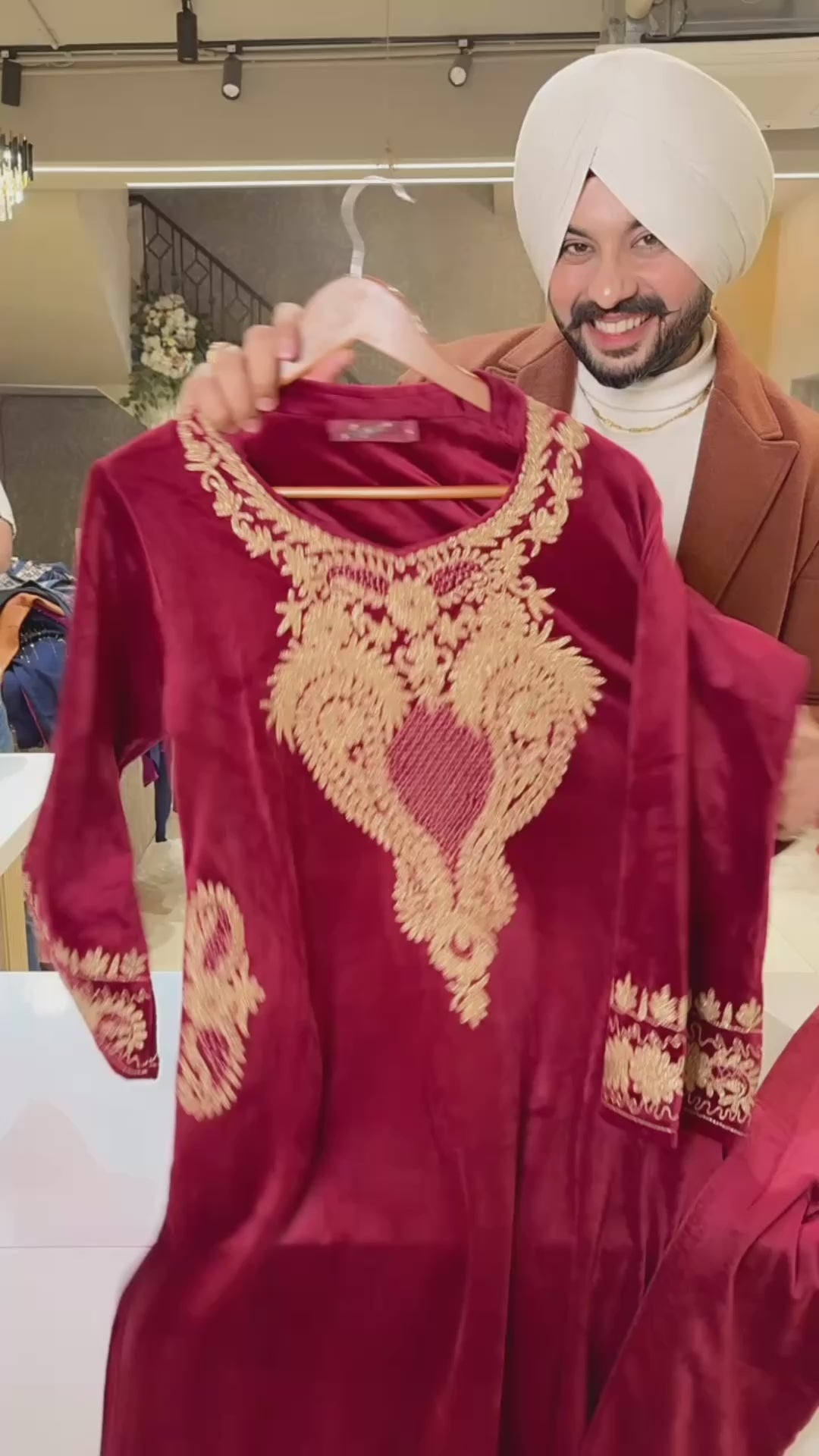 Maroon Kashmiri Phiran Fully Stretchable Heavy Embroidered Coord set