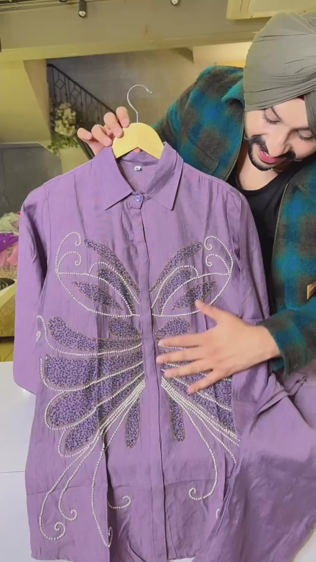 Mauve Butterfly Hand embroidered Coord set in Imported stuff