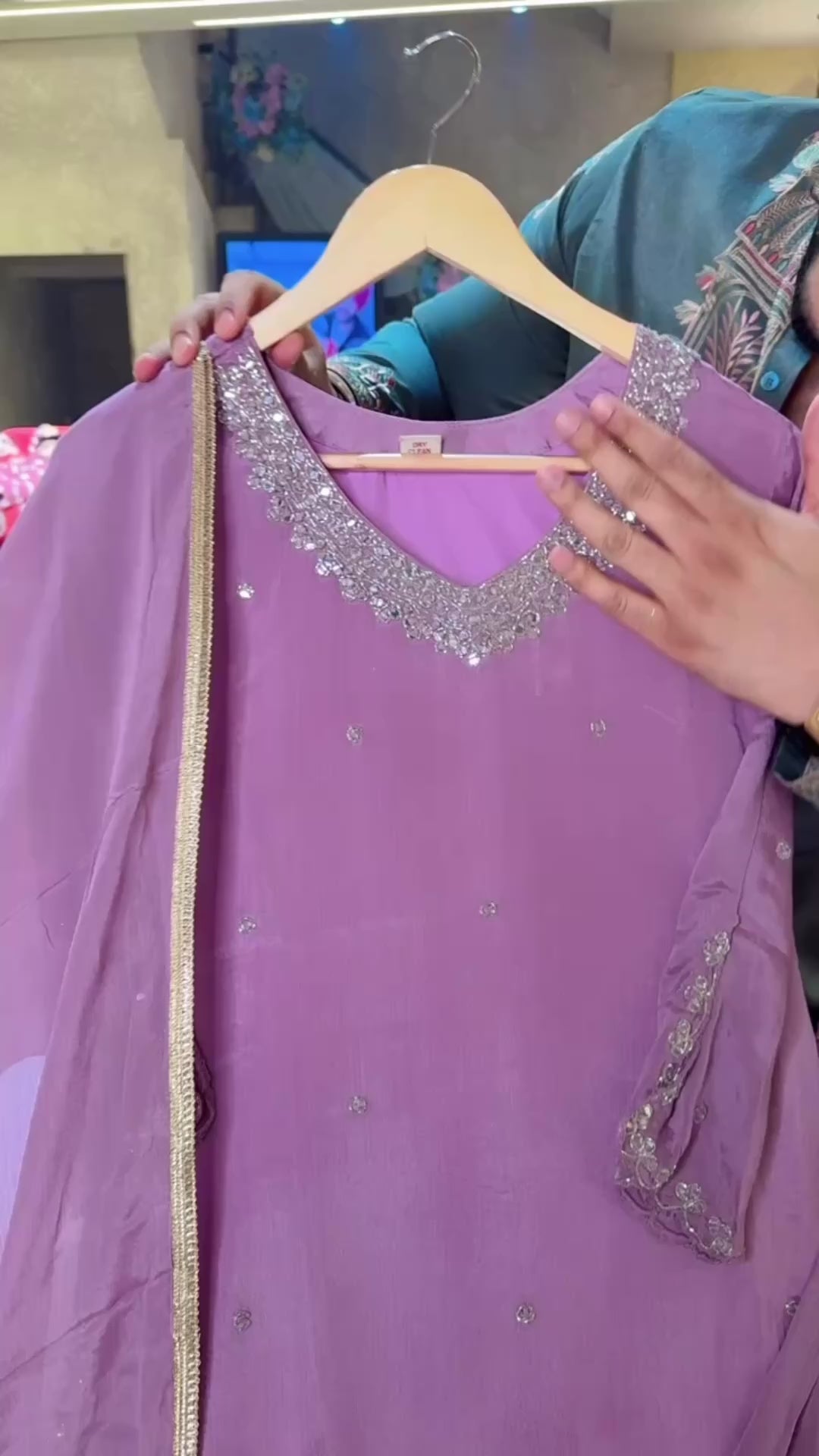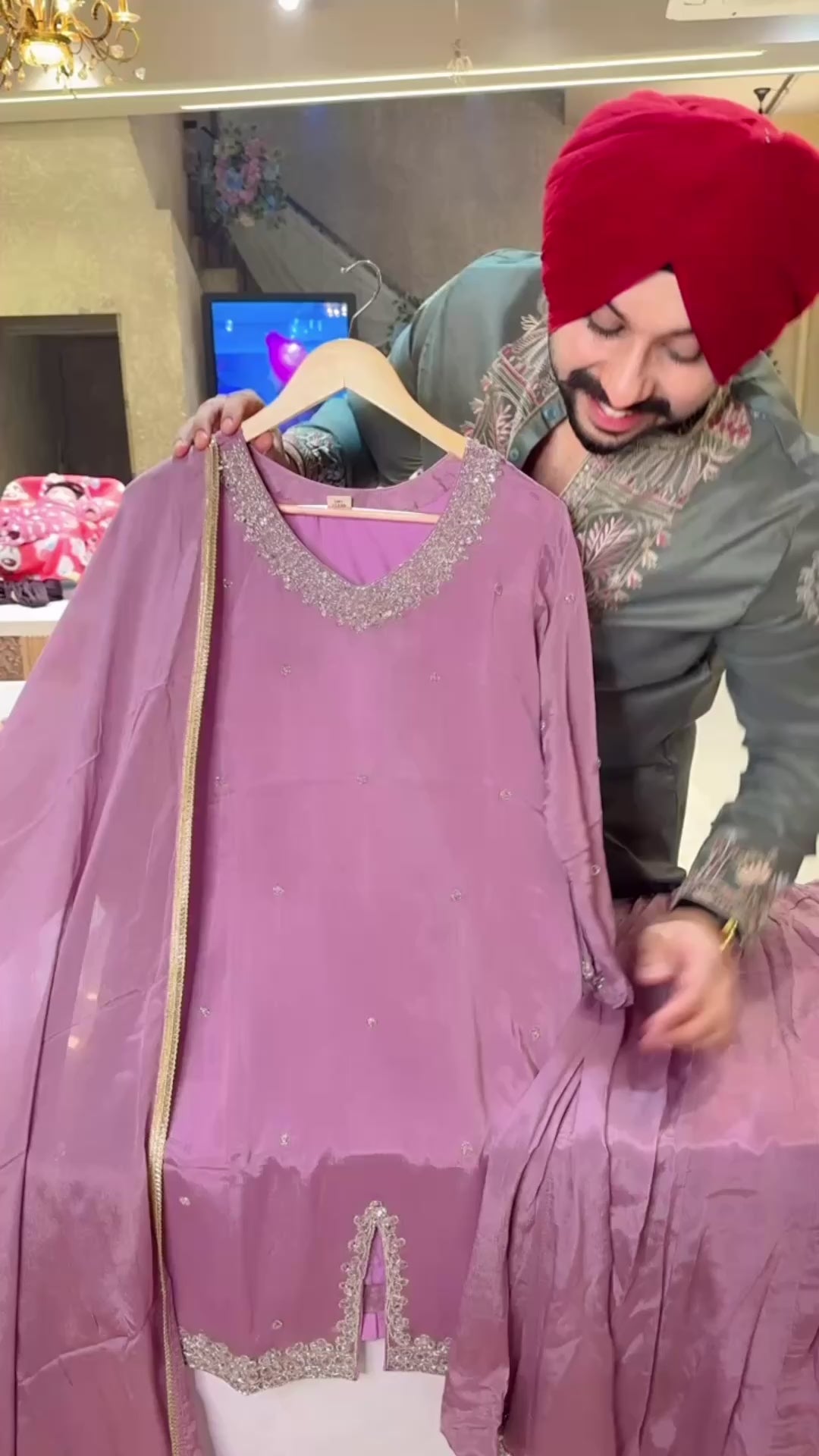 Mauve Chinon Front Slit Hand Embroidered Full Flair Sharara Set With Sleek Chiffon Duppata