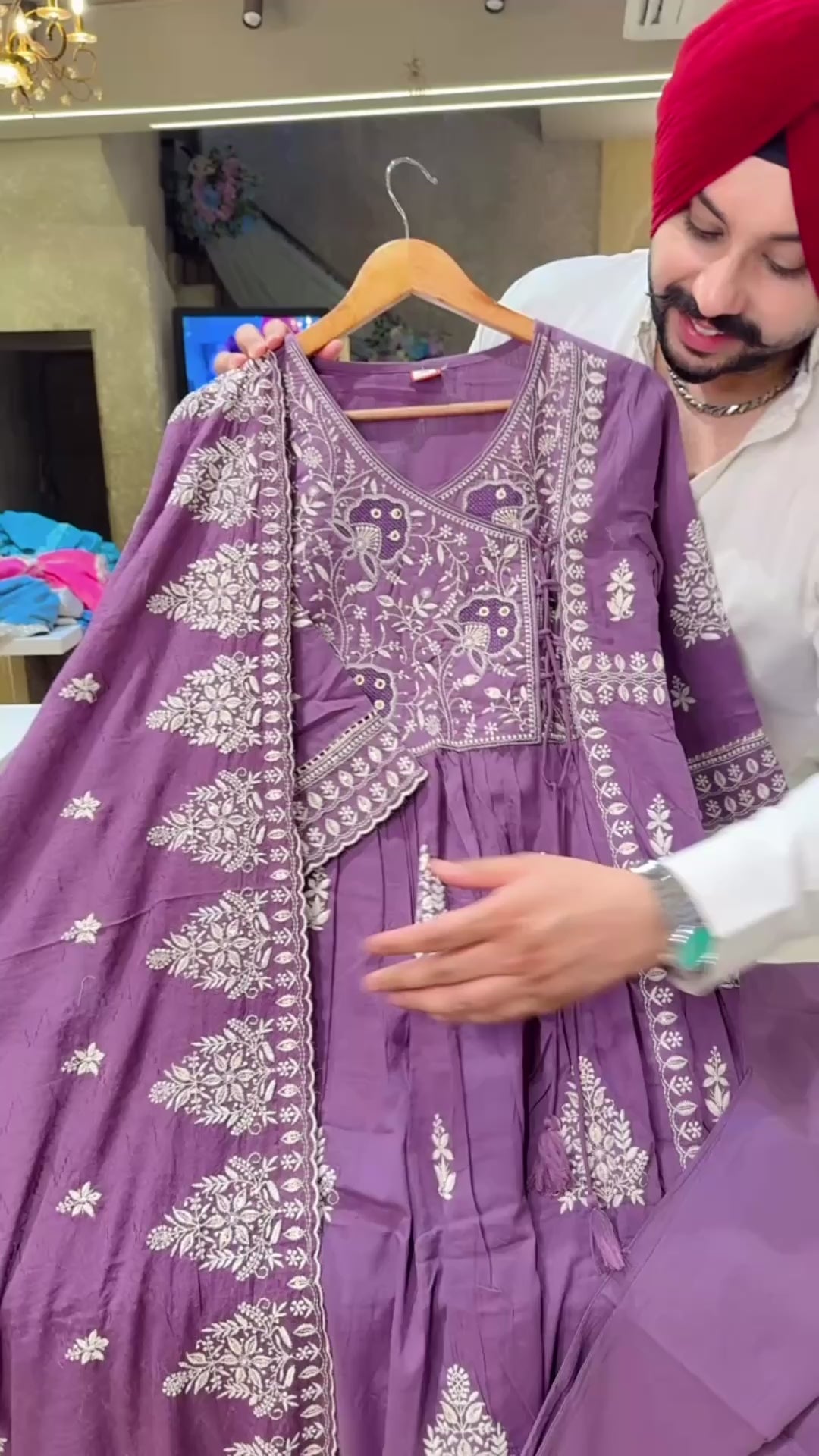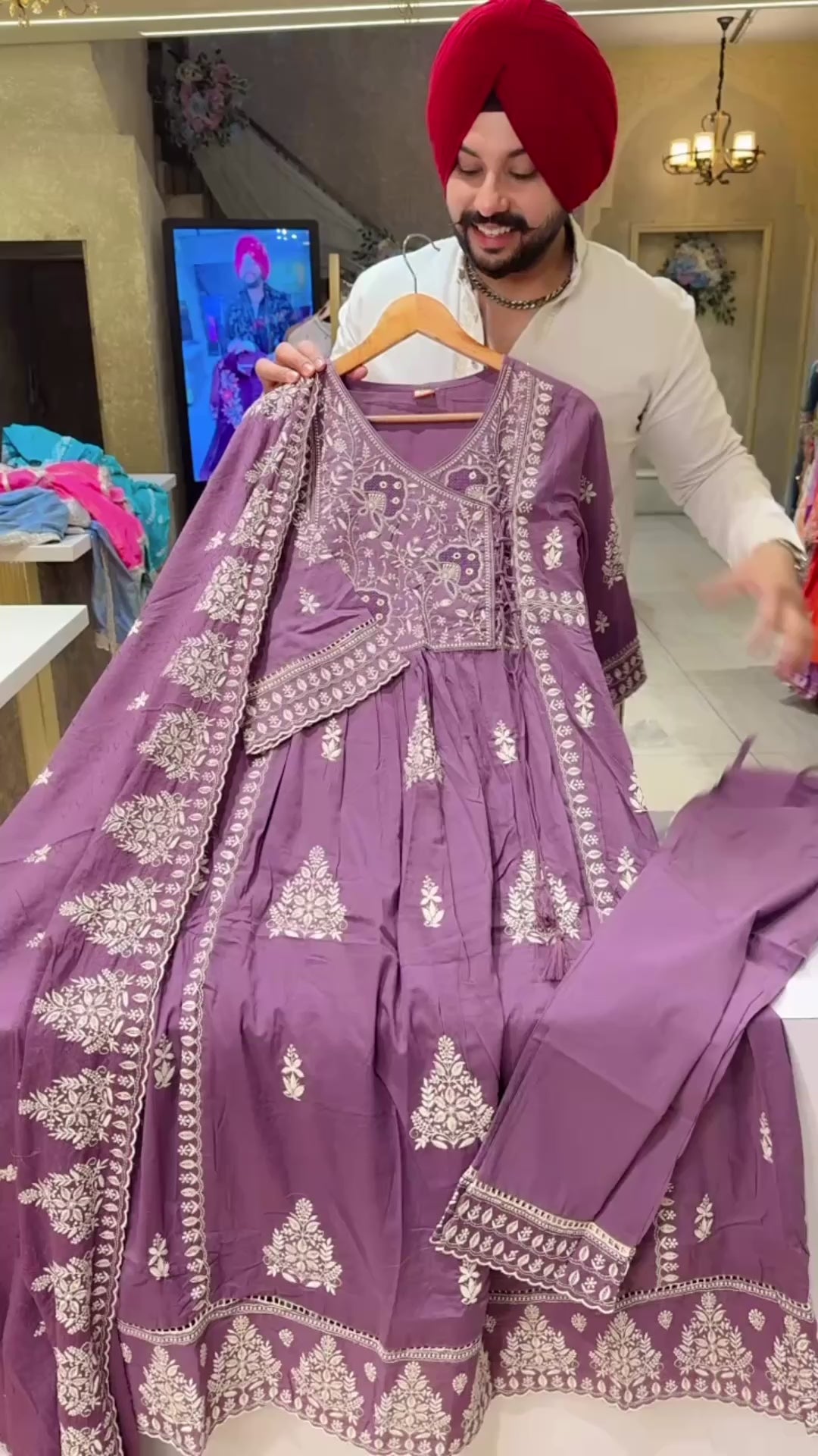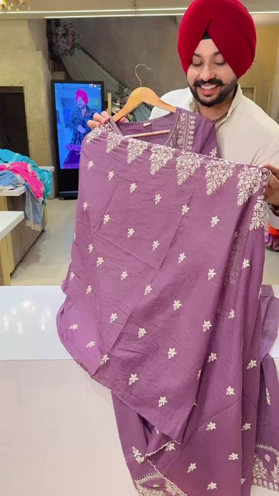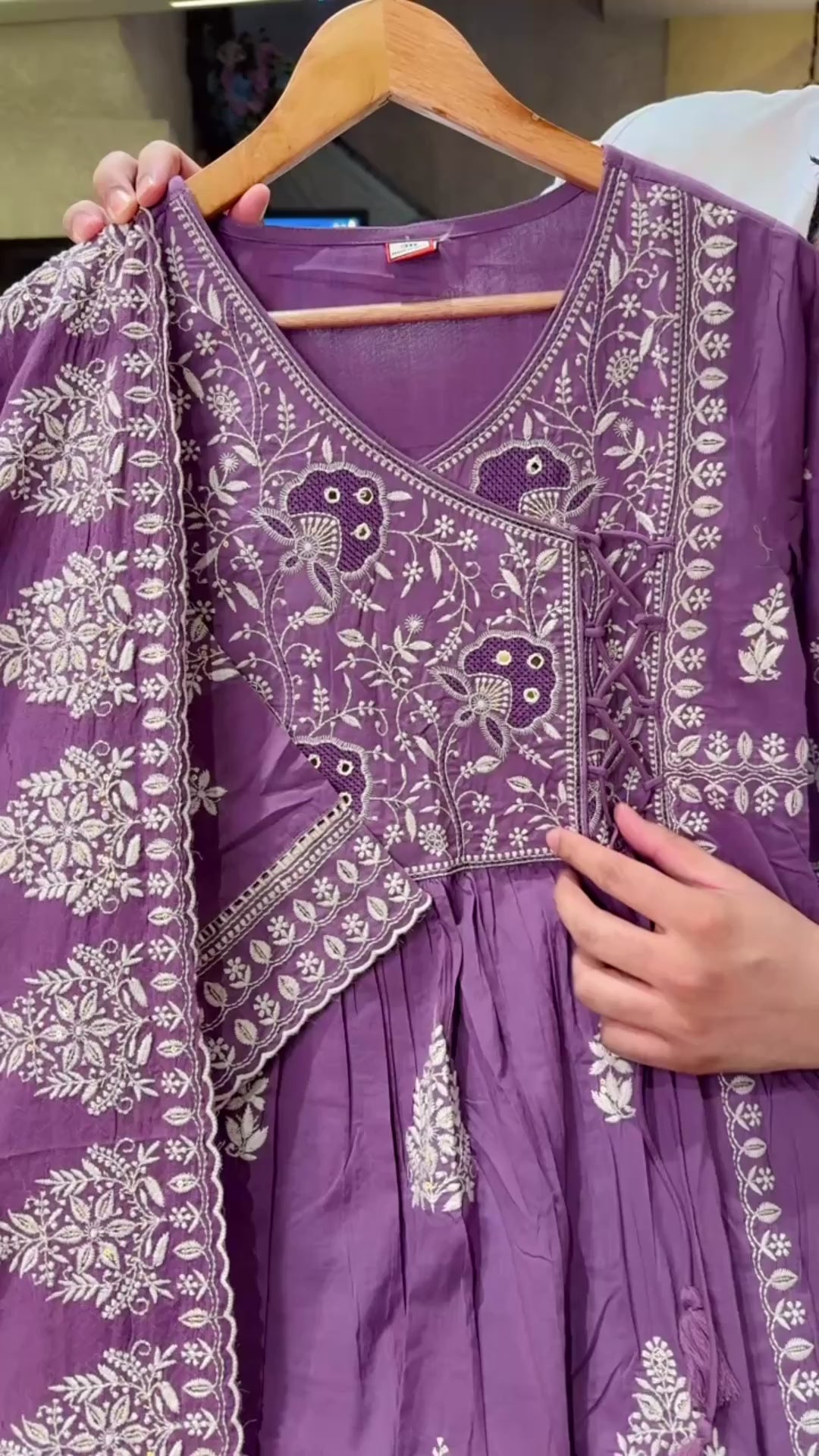 Mauve Mal Cotton Angrakha Front Gattering A-line Fully Embroidered Suit