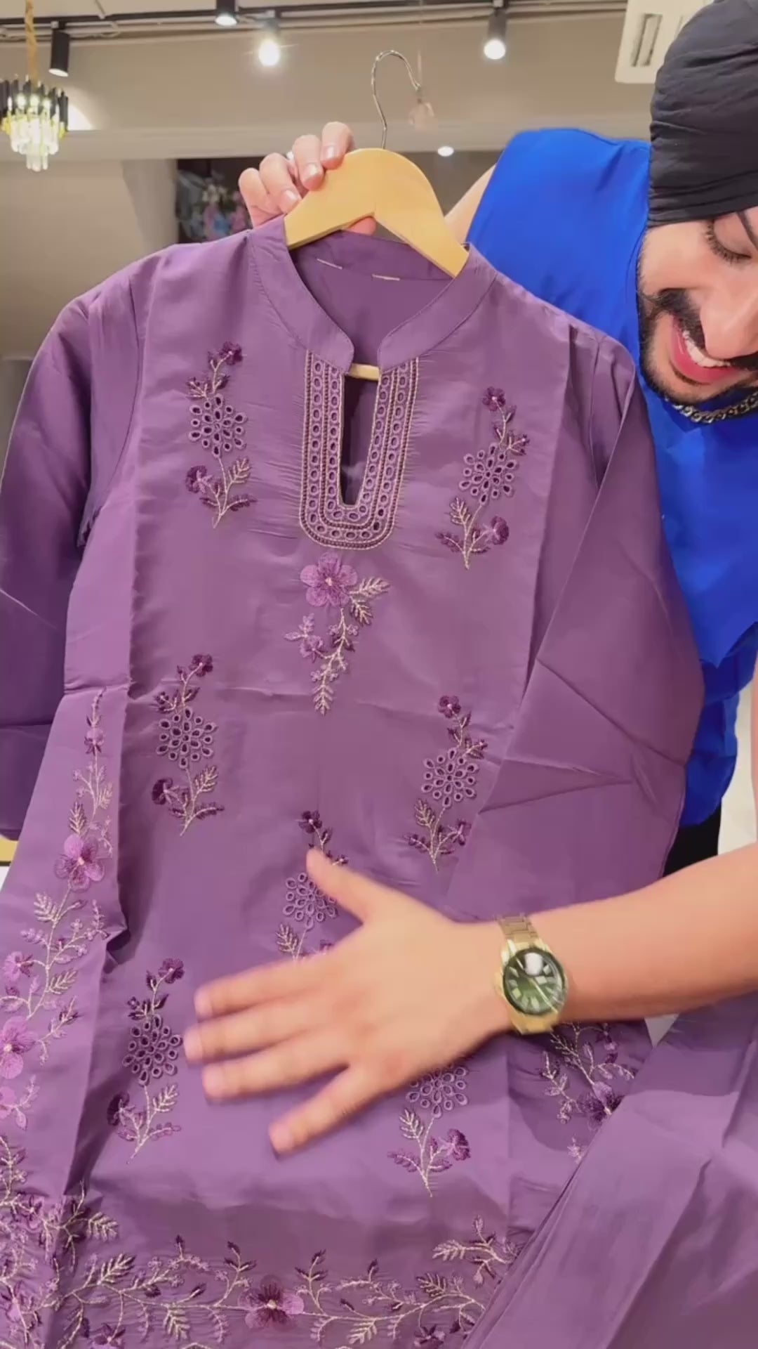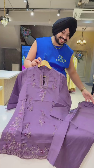 Mauve Roman Silk embroidered & Cut work Semi party wear Coordset