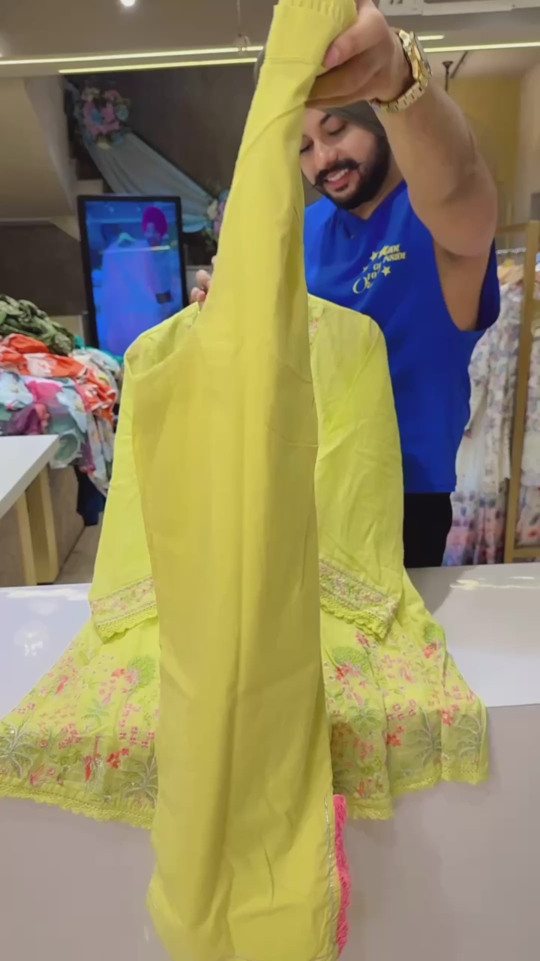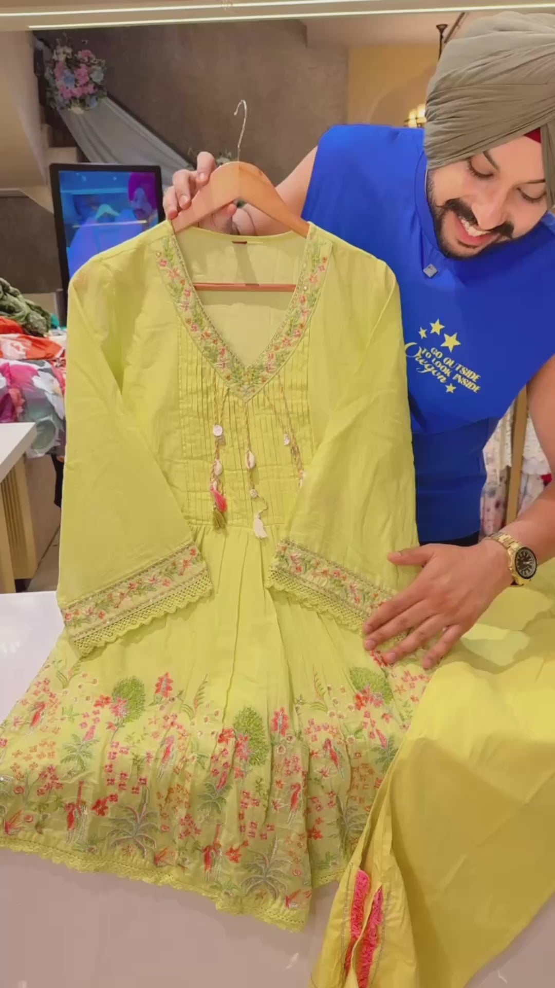 Mint Green Mal Cotton Embroidered Coord set with side Slit Pants