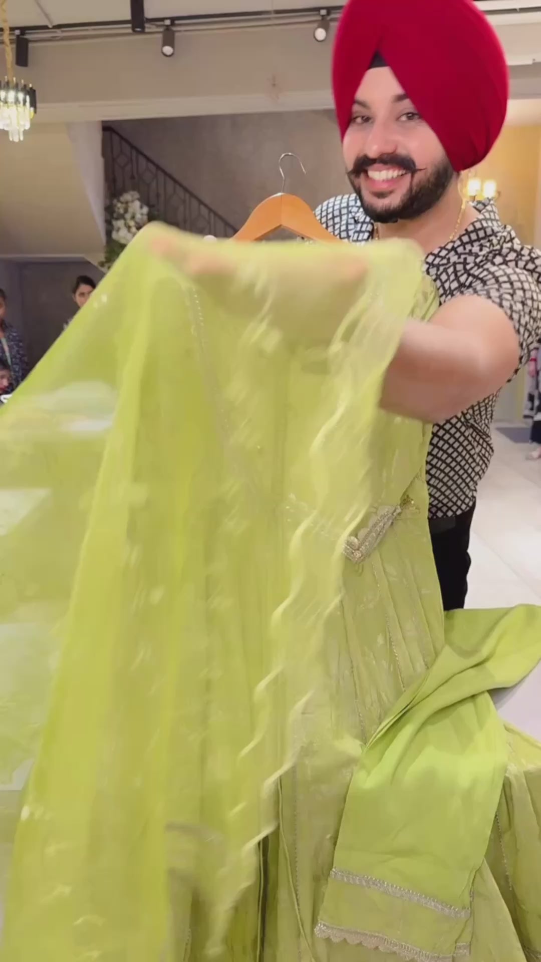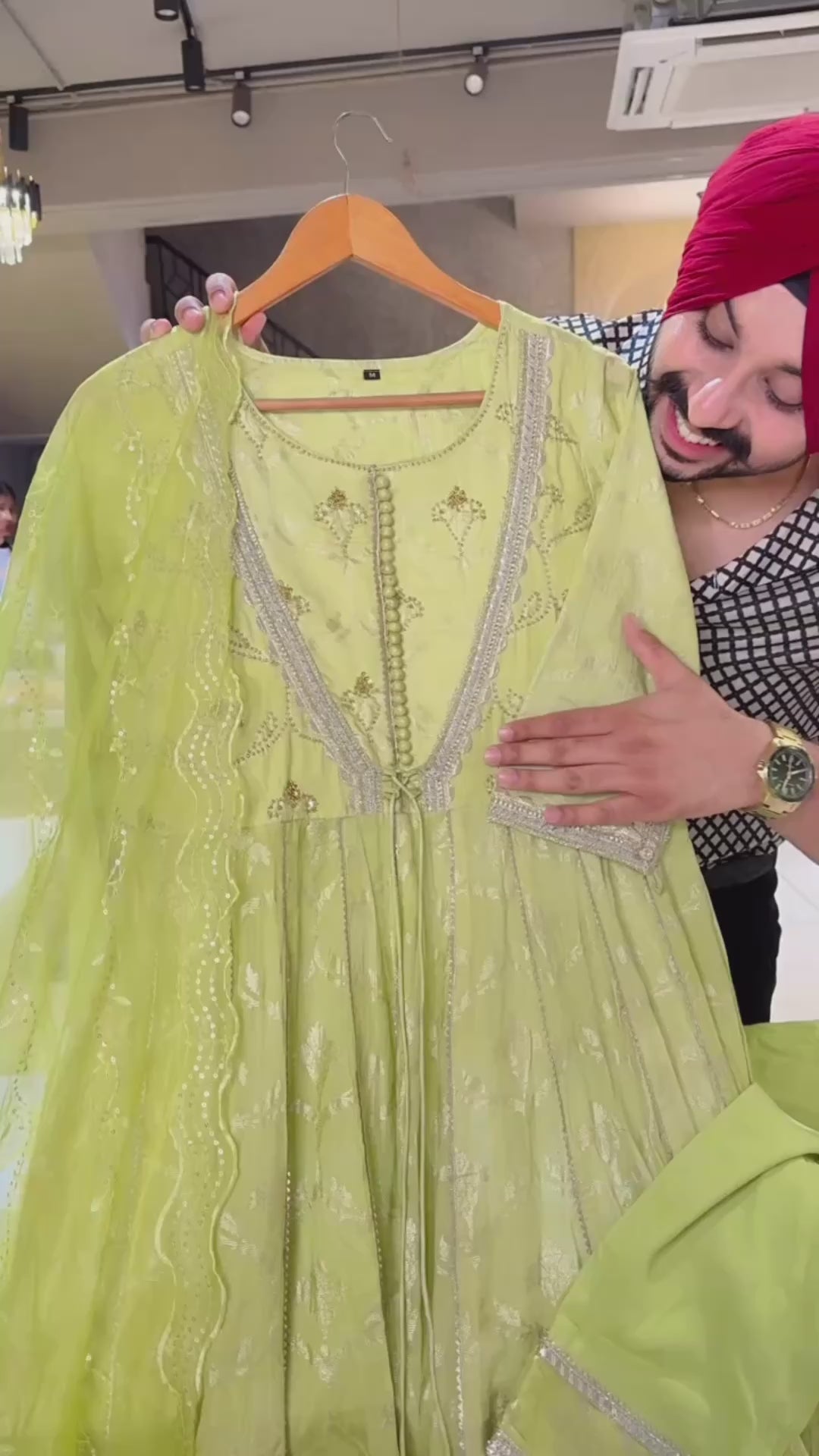 Mint Green Pure Cotton Full Flair Anarkali Suit with Hand Embroidery on neck & Sequins work organza Duppata