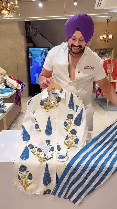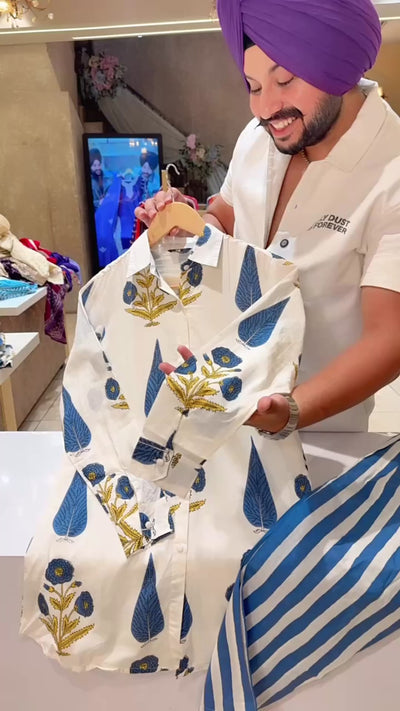Moon White & blue Pure Cotton Floral Print Office Wear Coord set